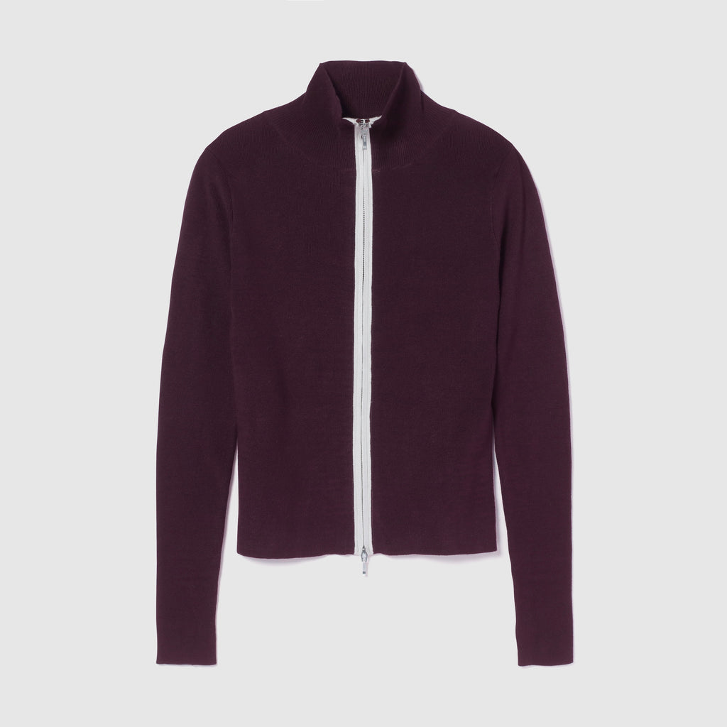 A high-neck zip top with a trendy color combination and a two-tone front.
