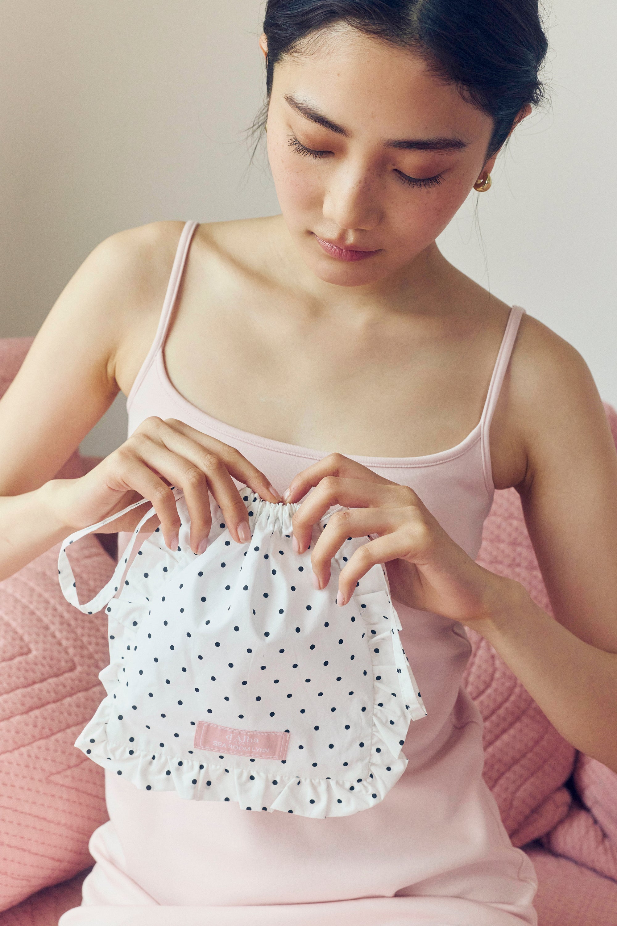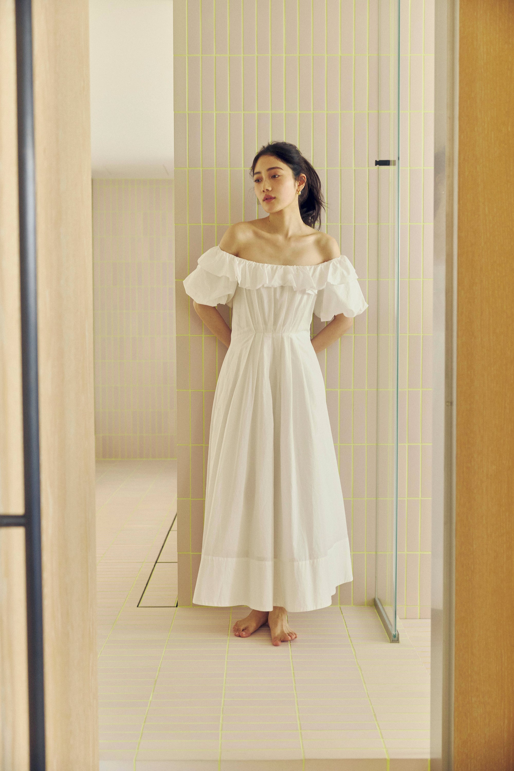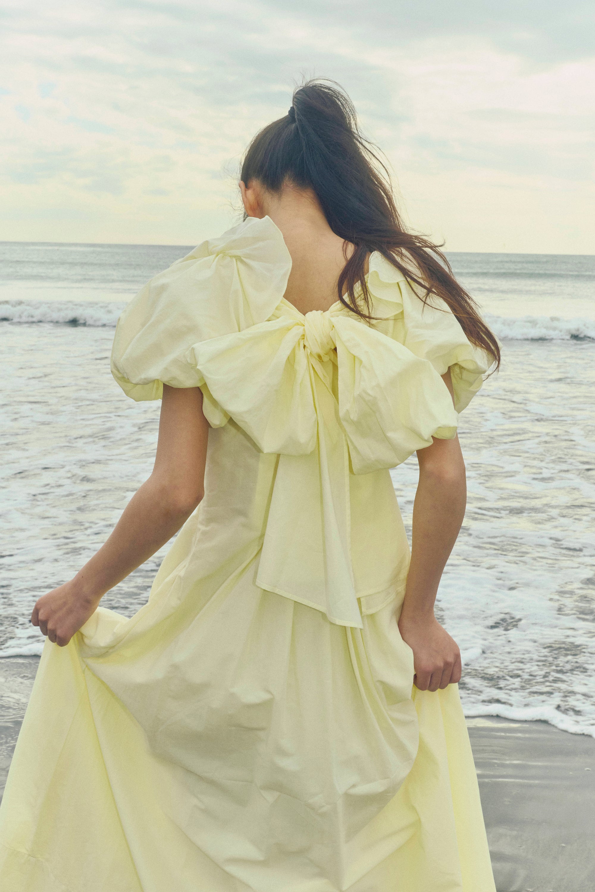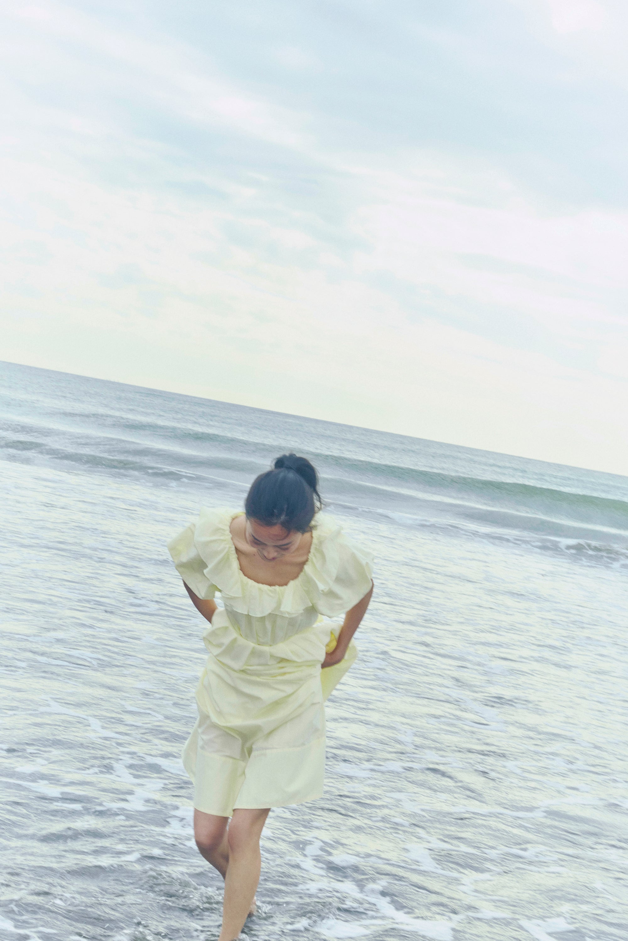 軽やかに揺れるフリルとリボンをやわらかなシルエットで表現し、