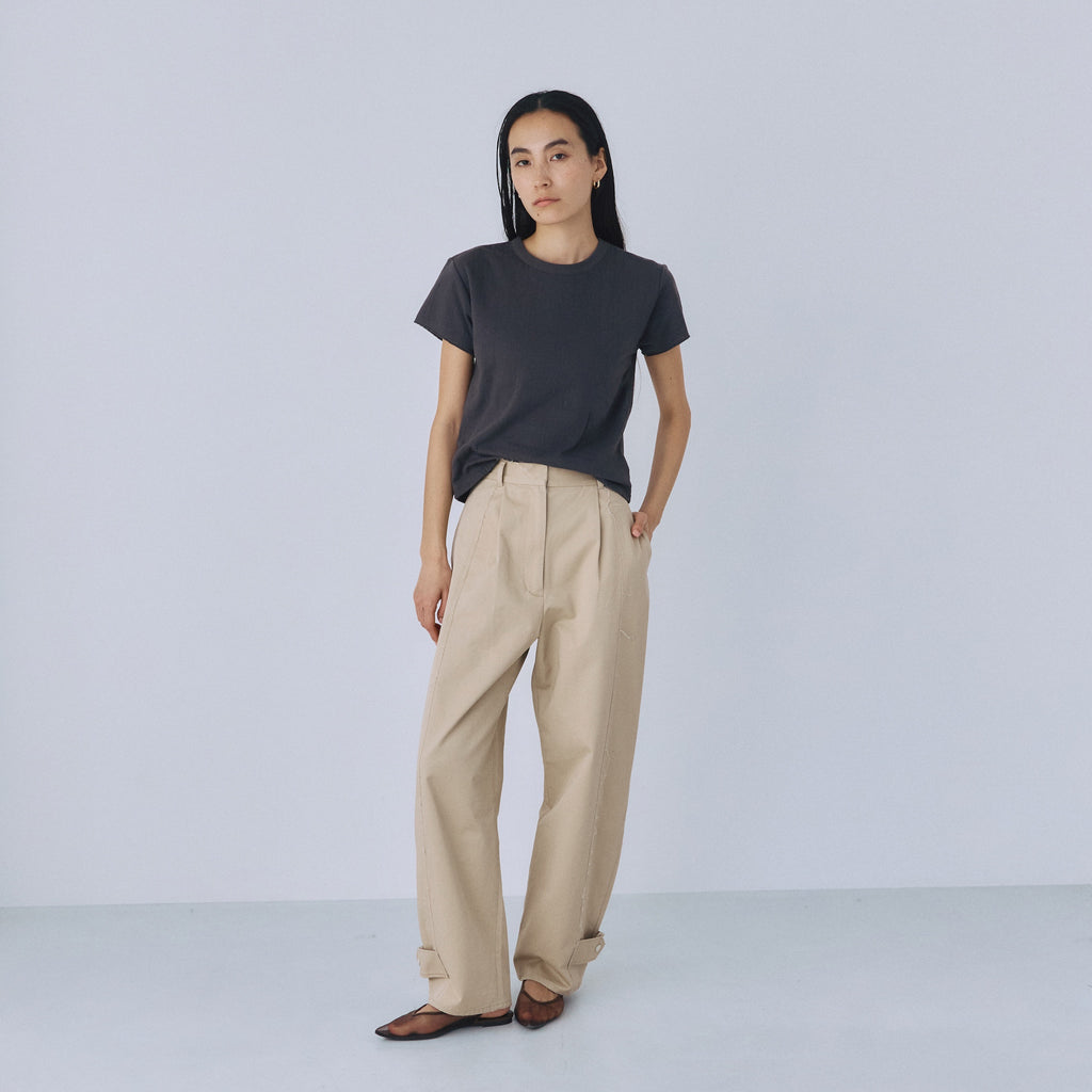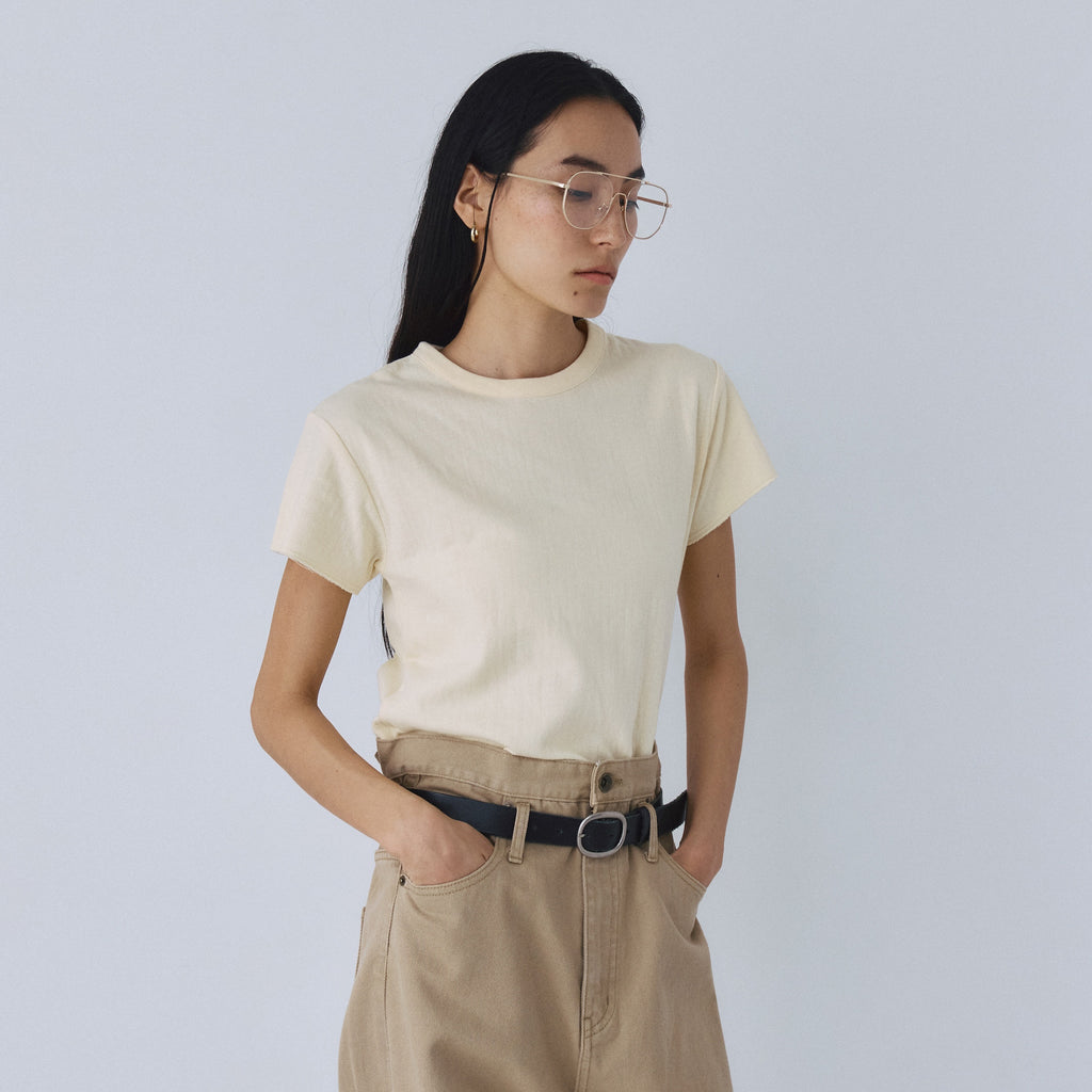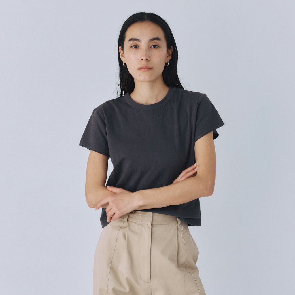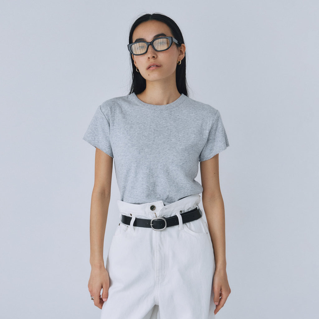 マルチに使える定番Tシャツ。デニムからスラックス、オールインワンのインナーや夏のショートパンツまで。様々な着回しにお使いいただけます。