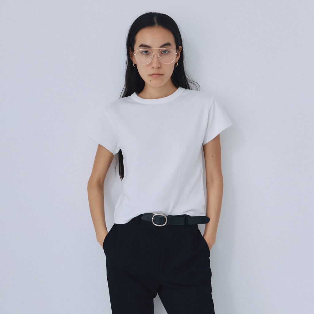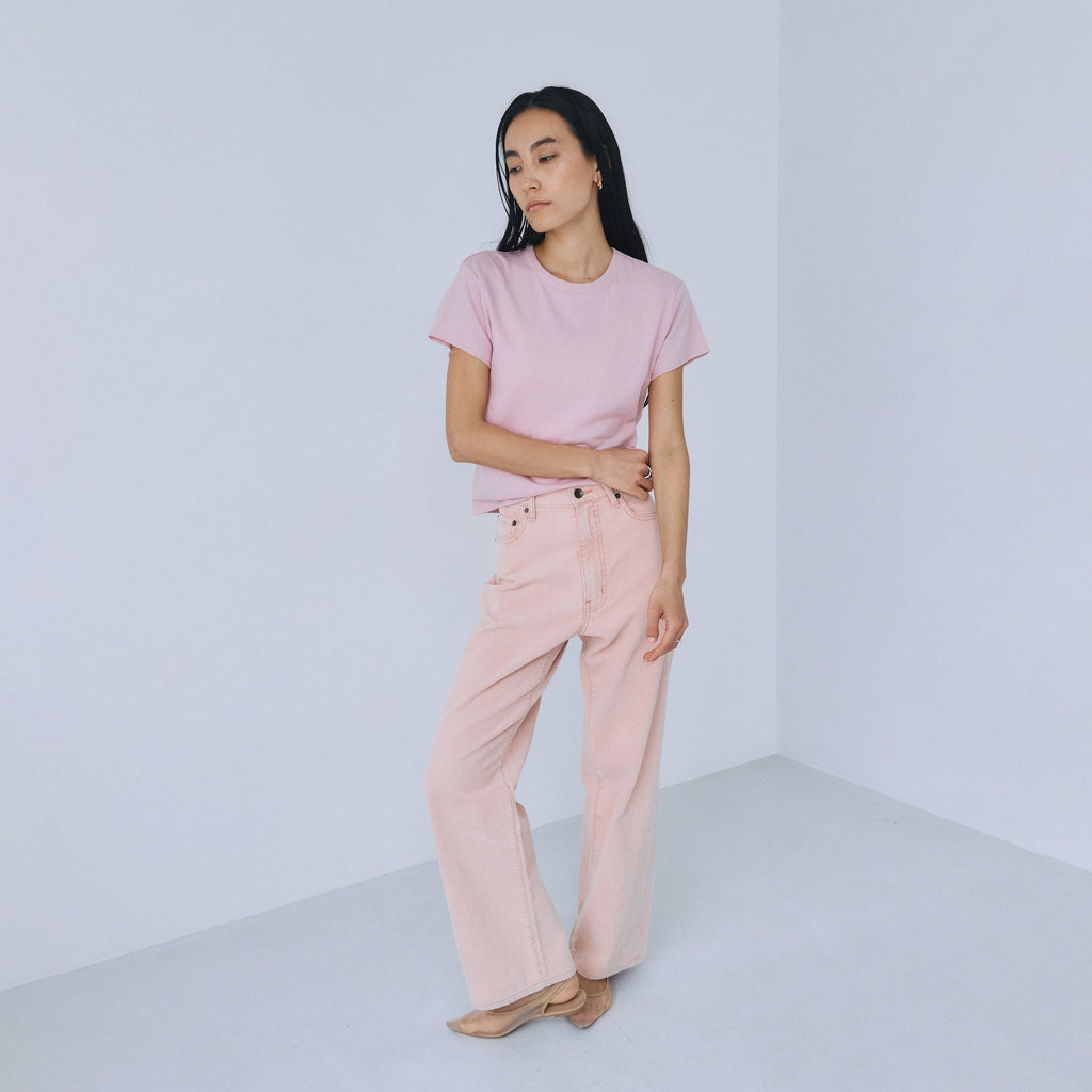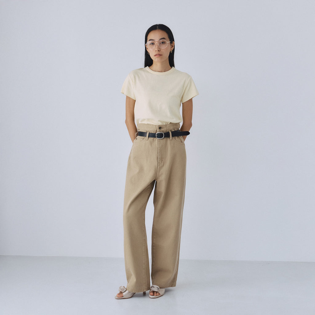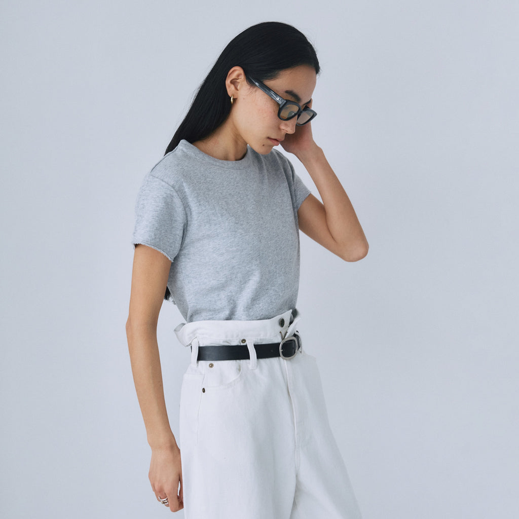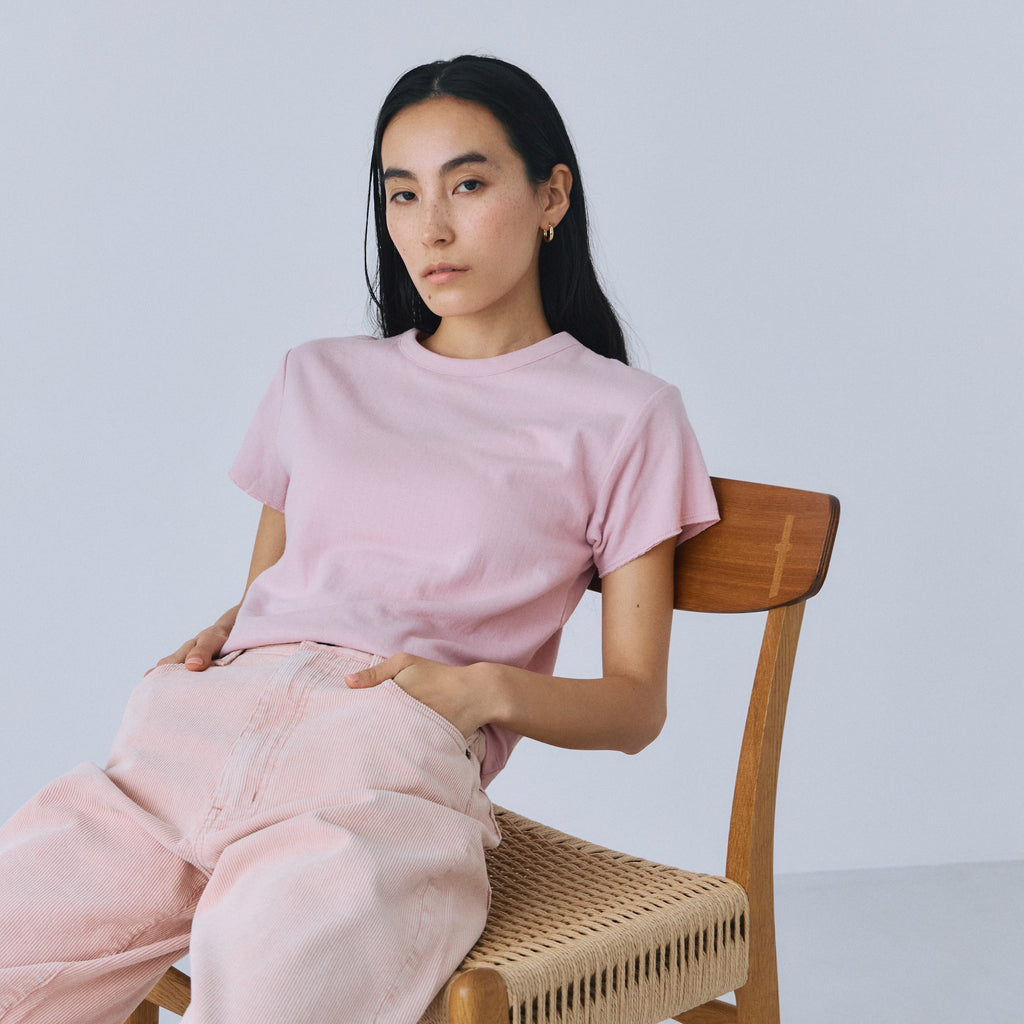 マルチに使える定番Tシャツ。デニムからスラックス、オールインワンのインナーや夏のショートパンツまで。様々な着回しにお使いいただけます。