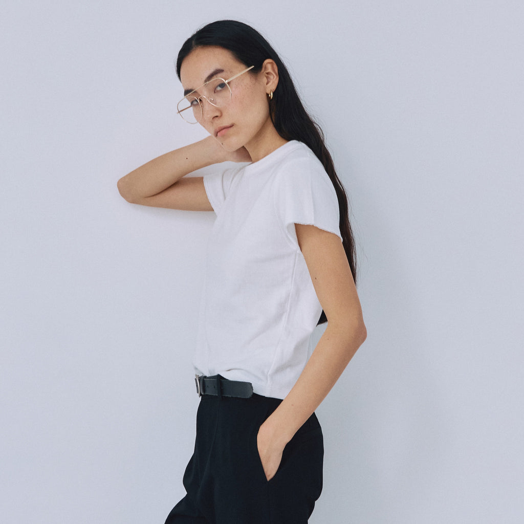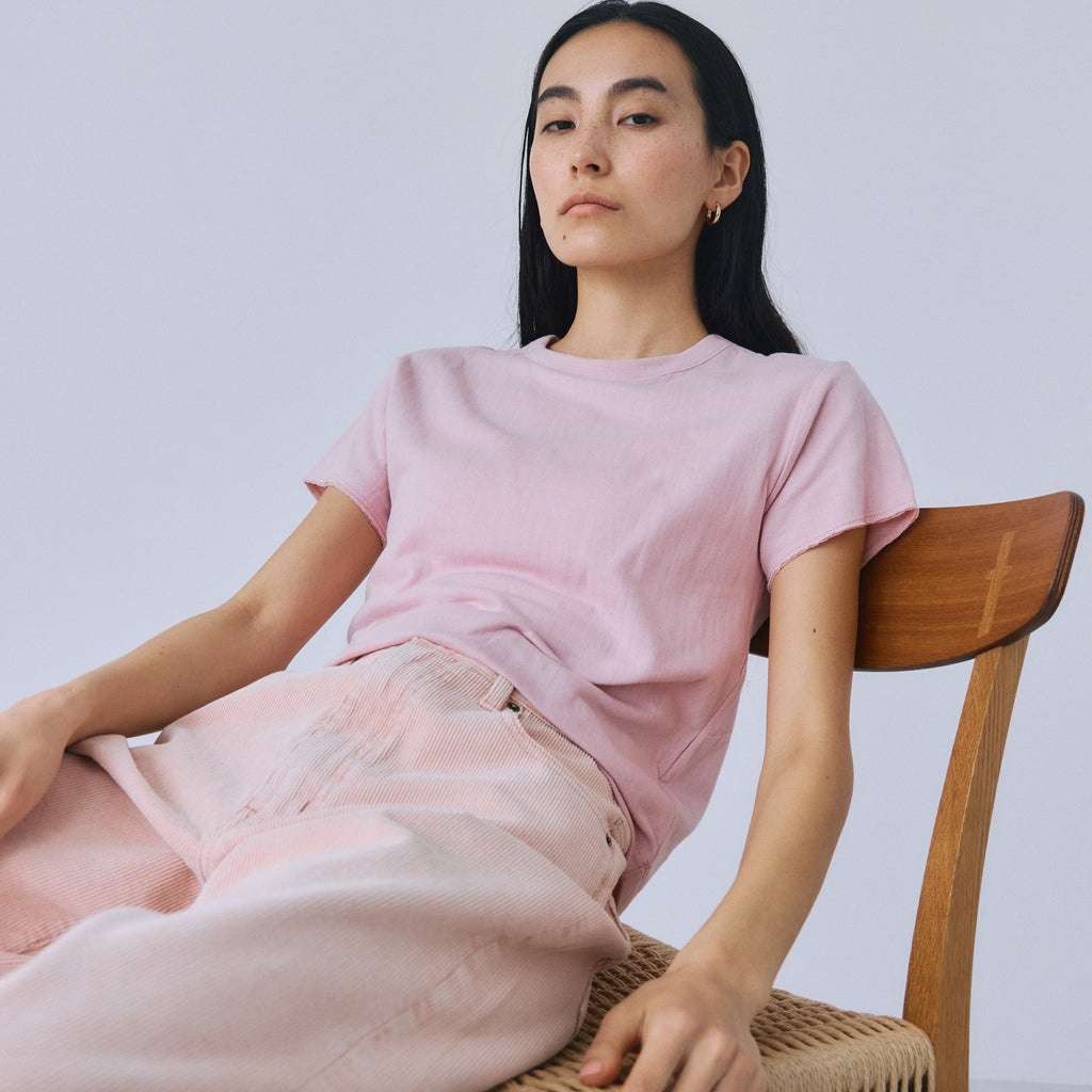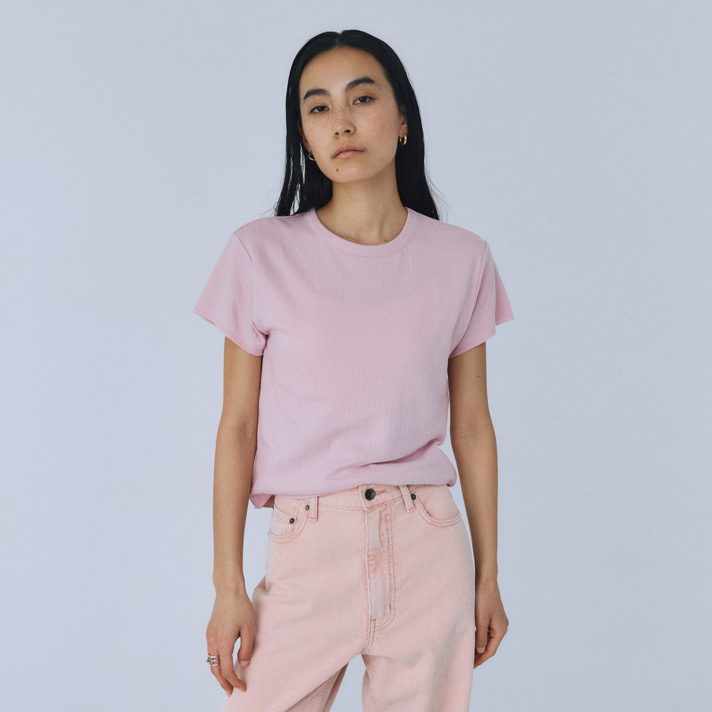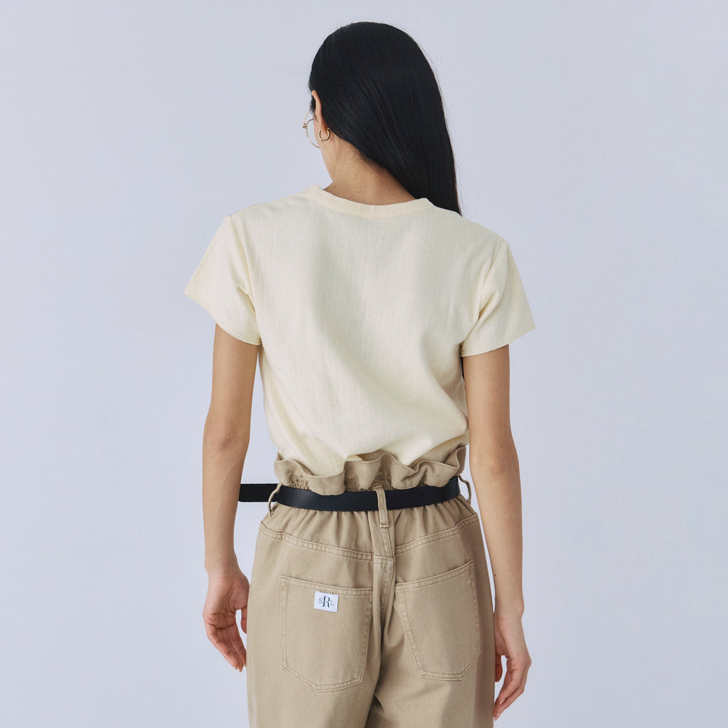 マルチに使える定番Tシャツ。デニムからスラックス、オールインワンのインナーや夏のショートパンツまで。様々な着回しにお使いいただけます。