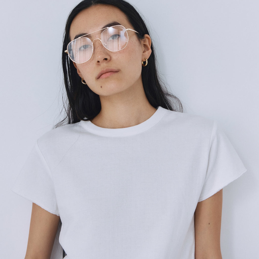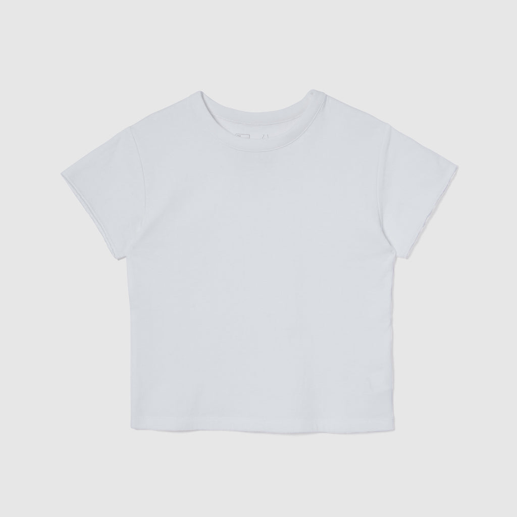 とてもベーシックな丸襟デザインで着回し力抜群。袖は切りっぱなしにステッチをたたき、カジュアルな印象に。洗濯を重ねるとくるんと丸まるデザインの変化をお楽しみください。