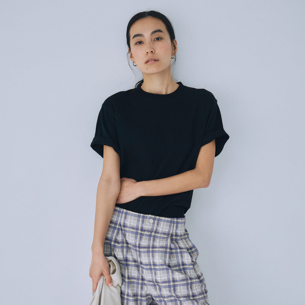 袖をまくってアクセントを付けるのもおすすめ。デニム、スラックス、レディなスカートなどコーデ問わず万能。