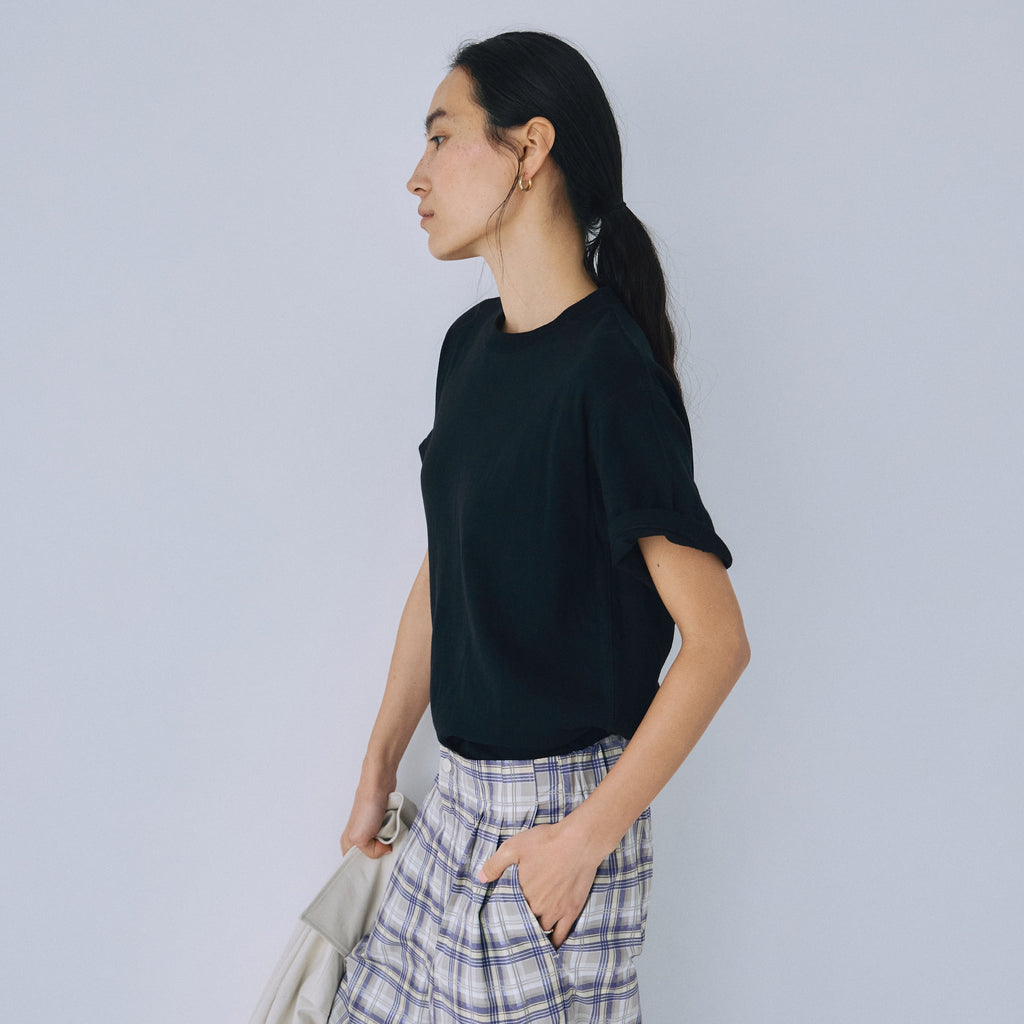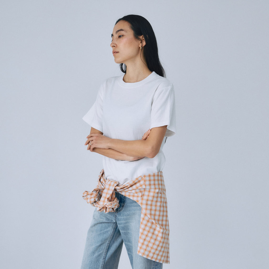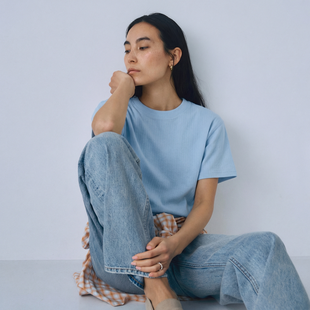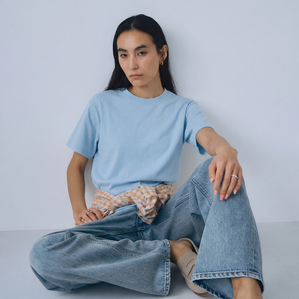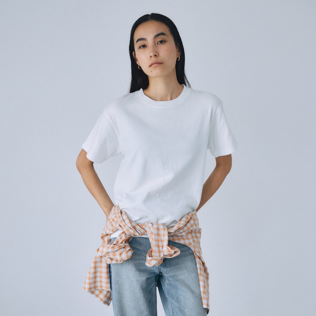 〈コットン2FACE〉のミディアムサイズTシャツが再入荷。今季は「ライトブルー」が新色として登場しました。2枚の生地を張り合わせた着心地抜群のアイテムです。