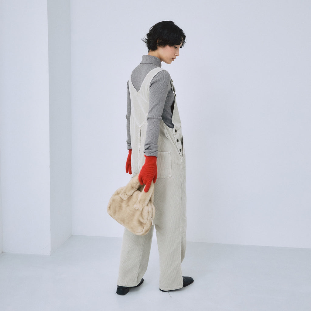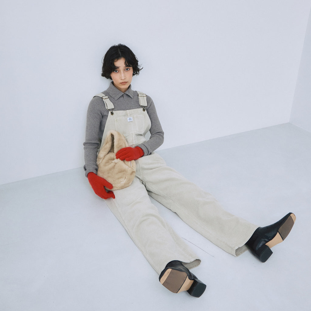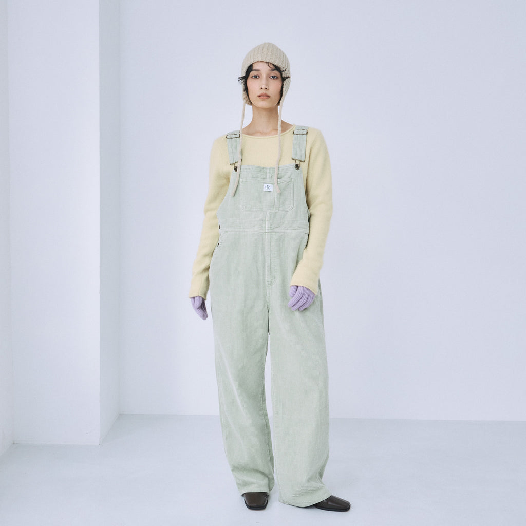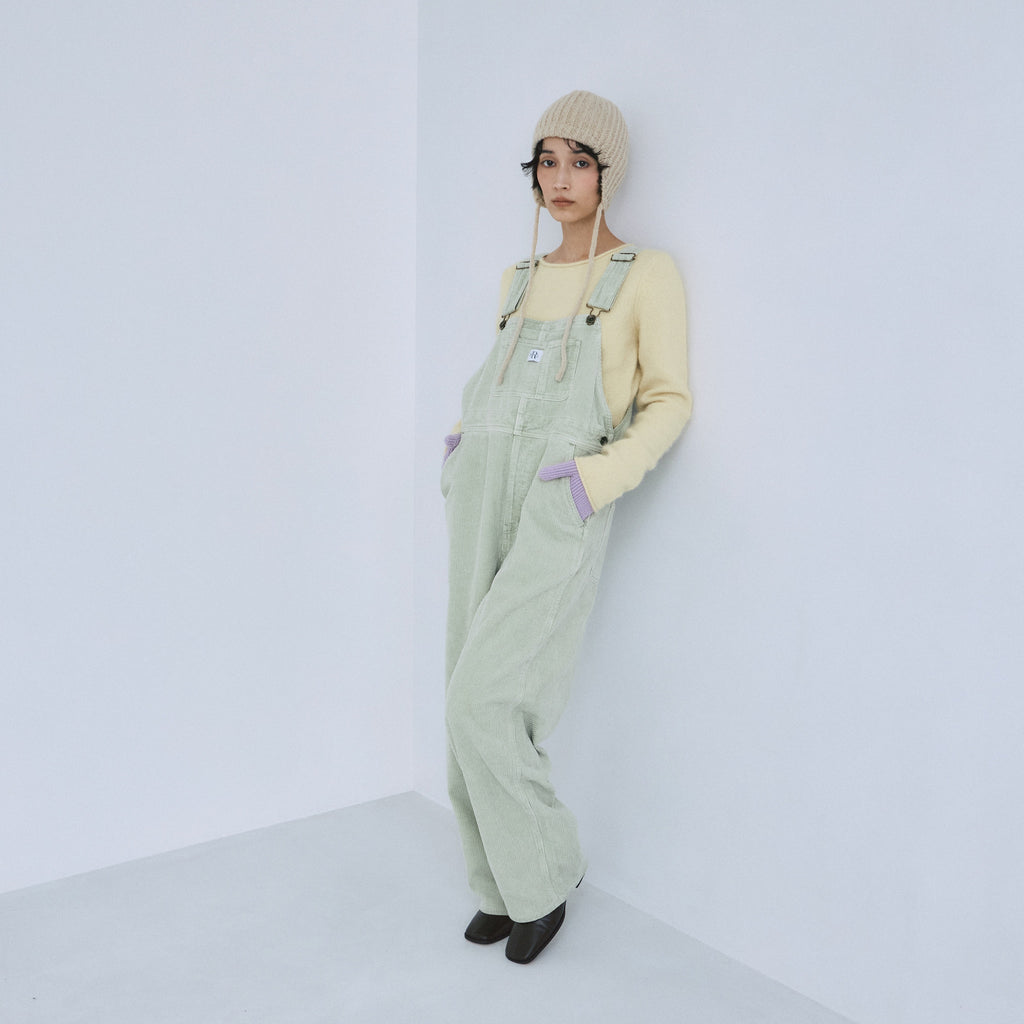 コーデュロイ生地のサロペットが再入荷。ヴィンテージ風加工を丁寧に施しており、メンズライクになりすぎない絶妙なデザインです。