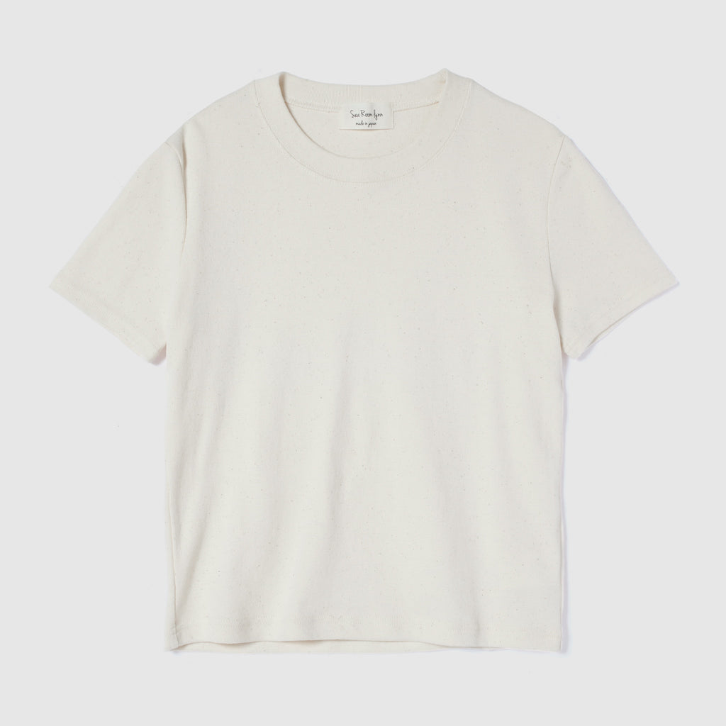 ふわっと軽やかなタッチで伸縮性もある、程良い肉感のコットン地。表面に凹凸があり、シンプルでも表情豊かな印象に。