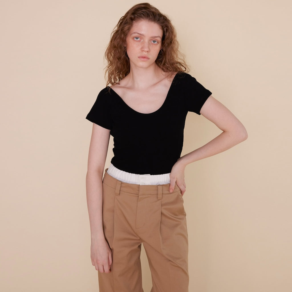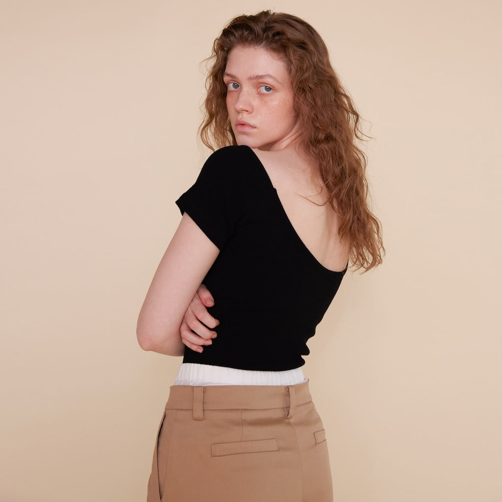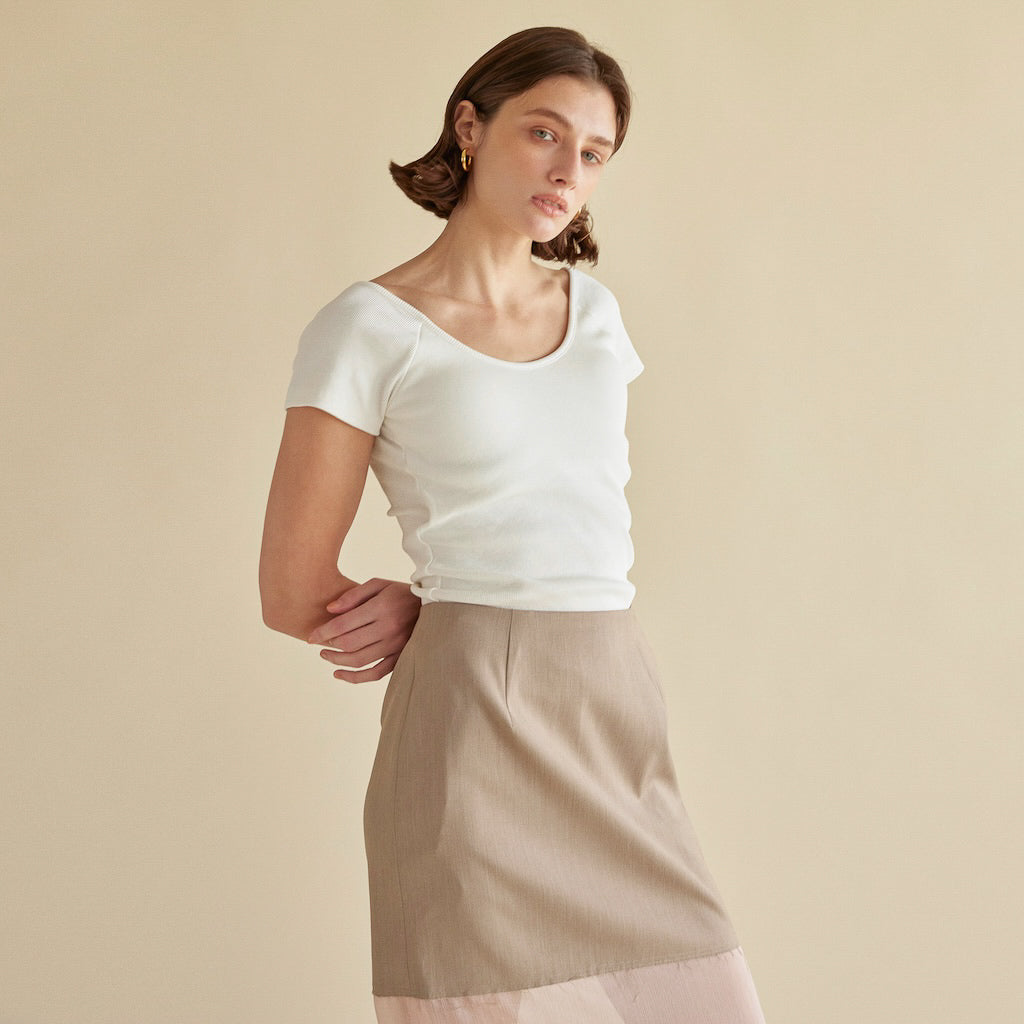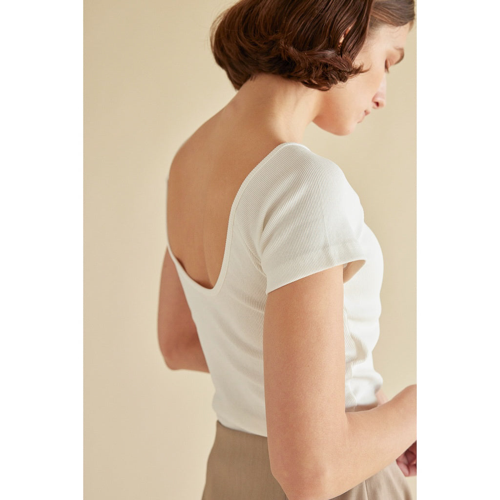 上品に肌見せを楽しみたい人におすすめの、ベーシックトップス。