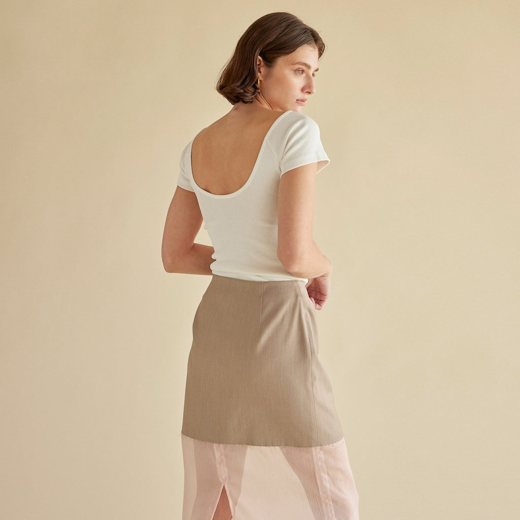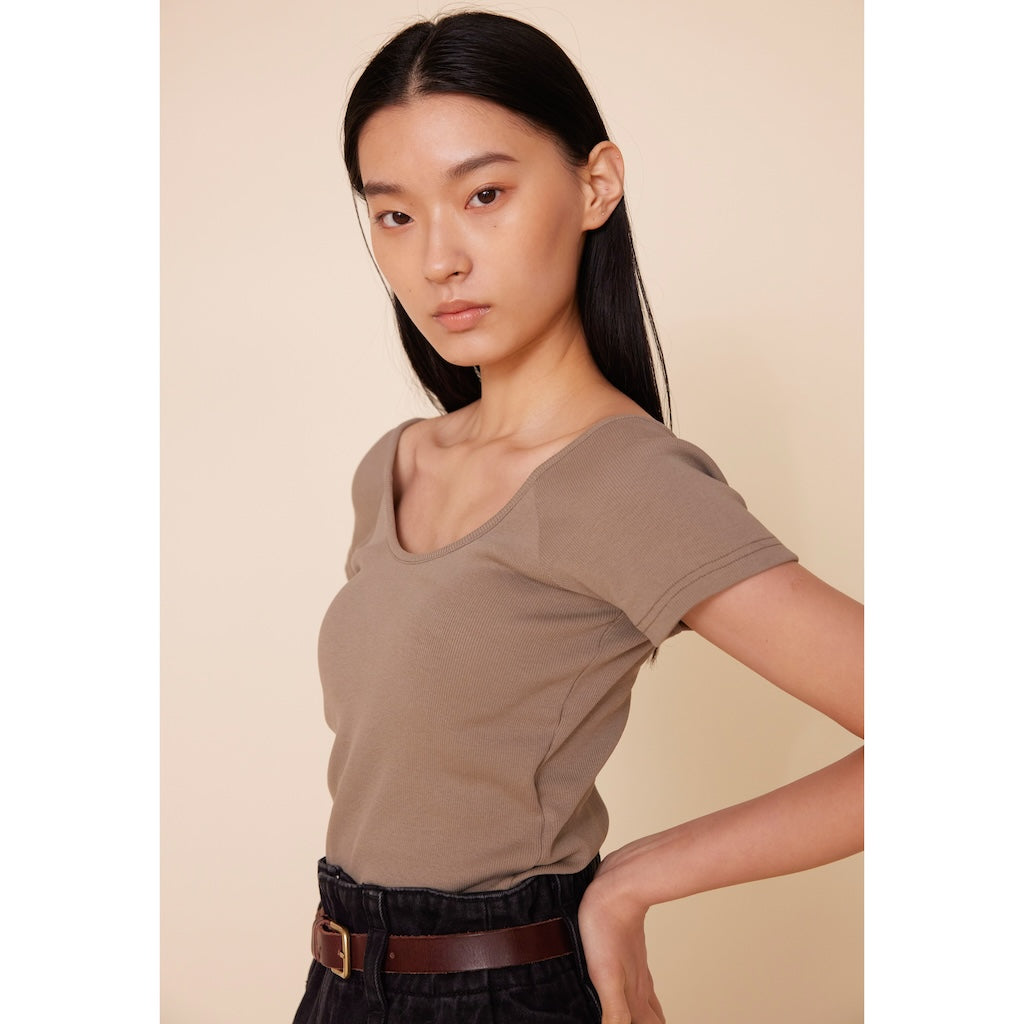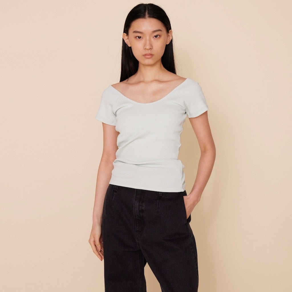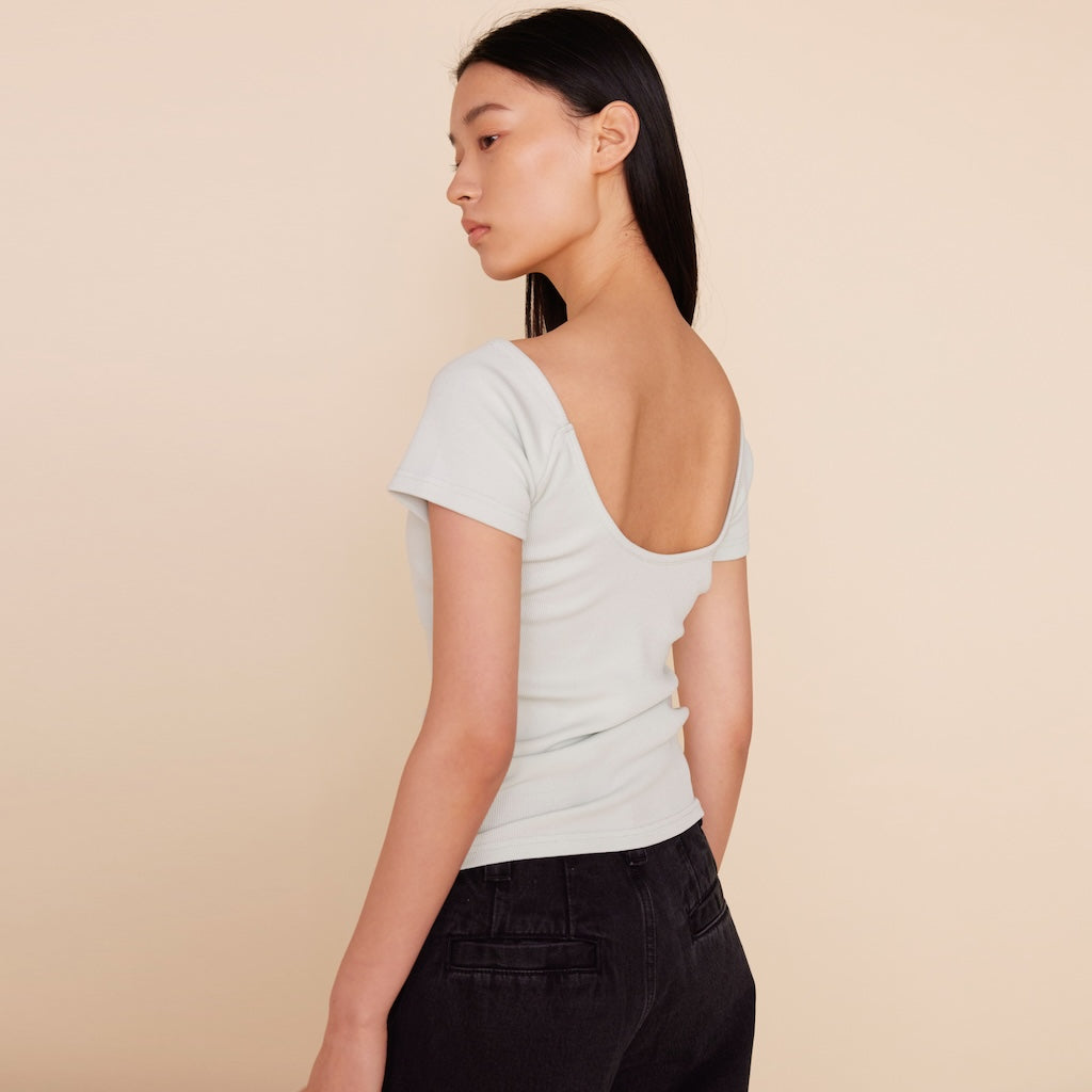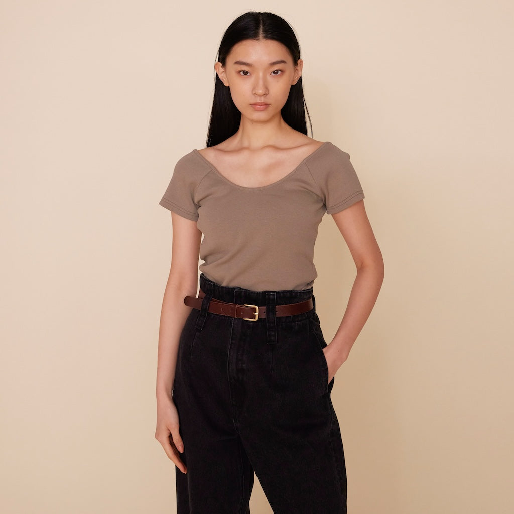 上品に肌見せを楽しみたい人におすすめの、ベーシックトップス。