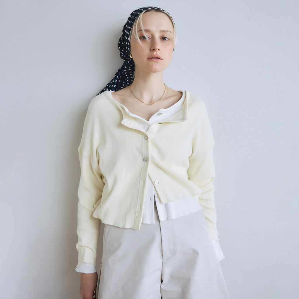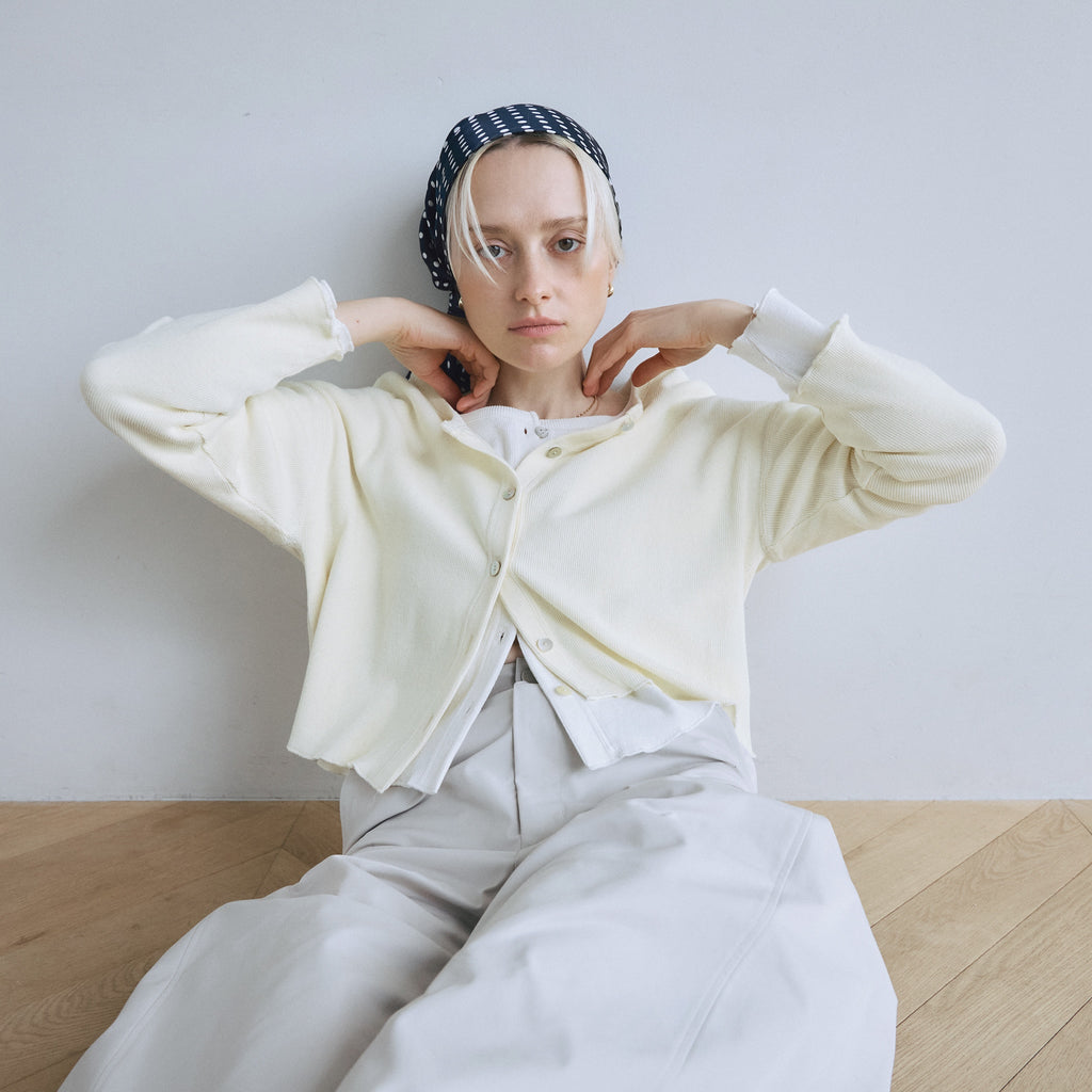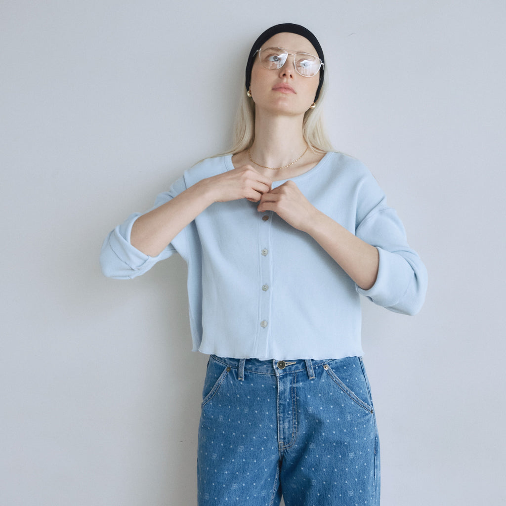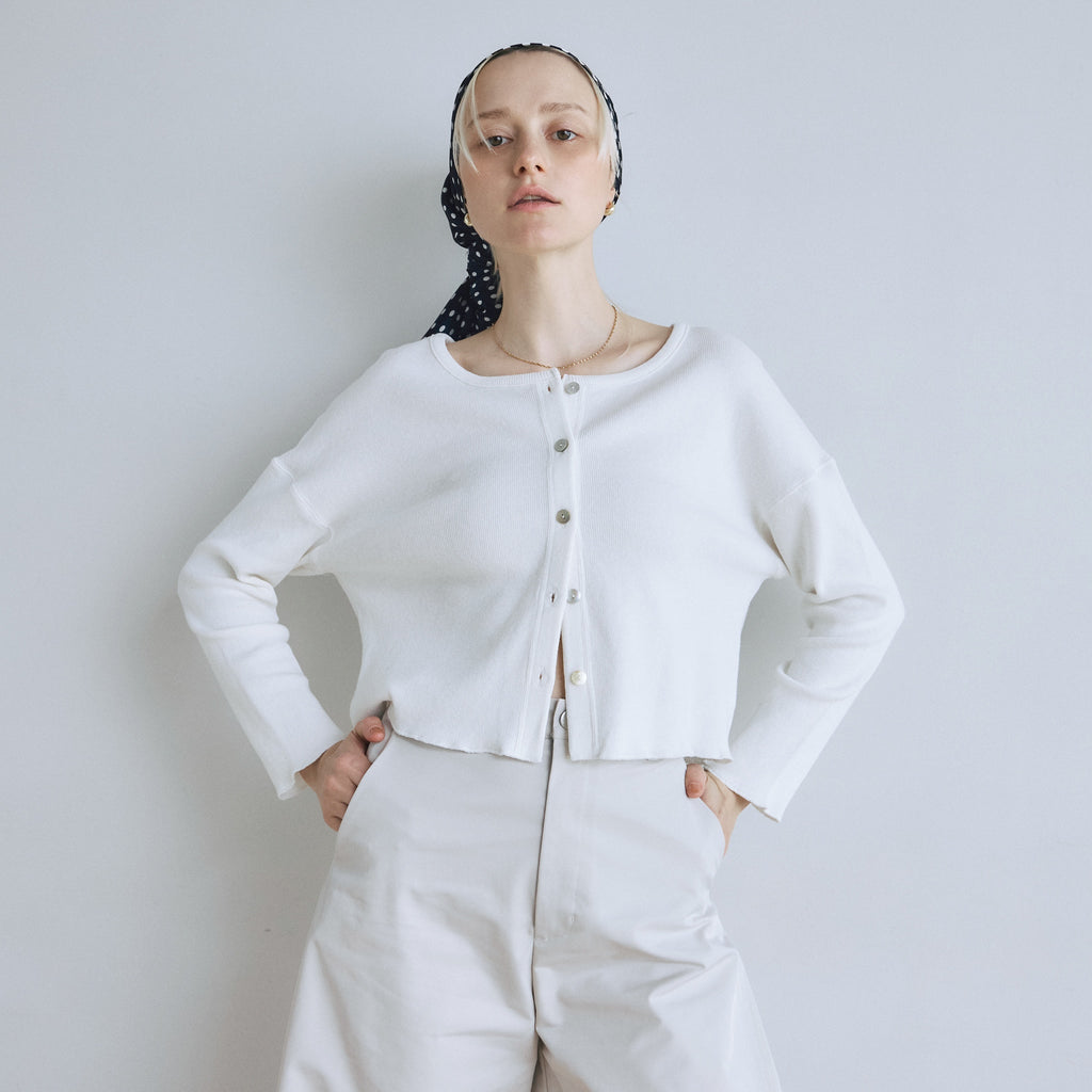 〈再入荷〉ふわっと気持ち良い素材の〈コットンリネン Fluffy〉シリーズから、カーディガンまたはトップスとしてマルチに使えるベーシックなアイテムが再入荷。どんなシーンでも活躍するので1枚持っていると便利。「パウダーブルー」「シアークリーム」が新色で登場です。