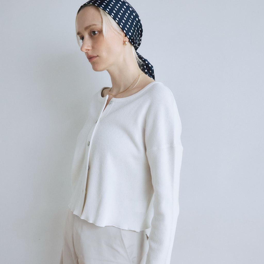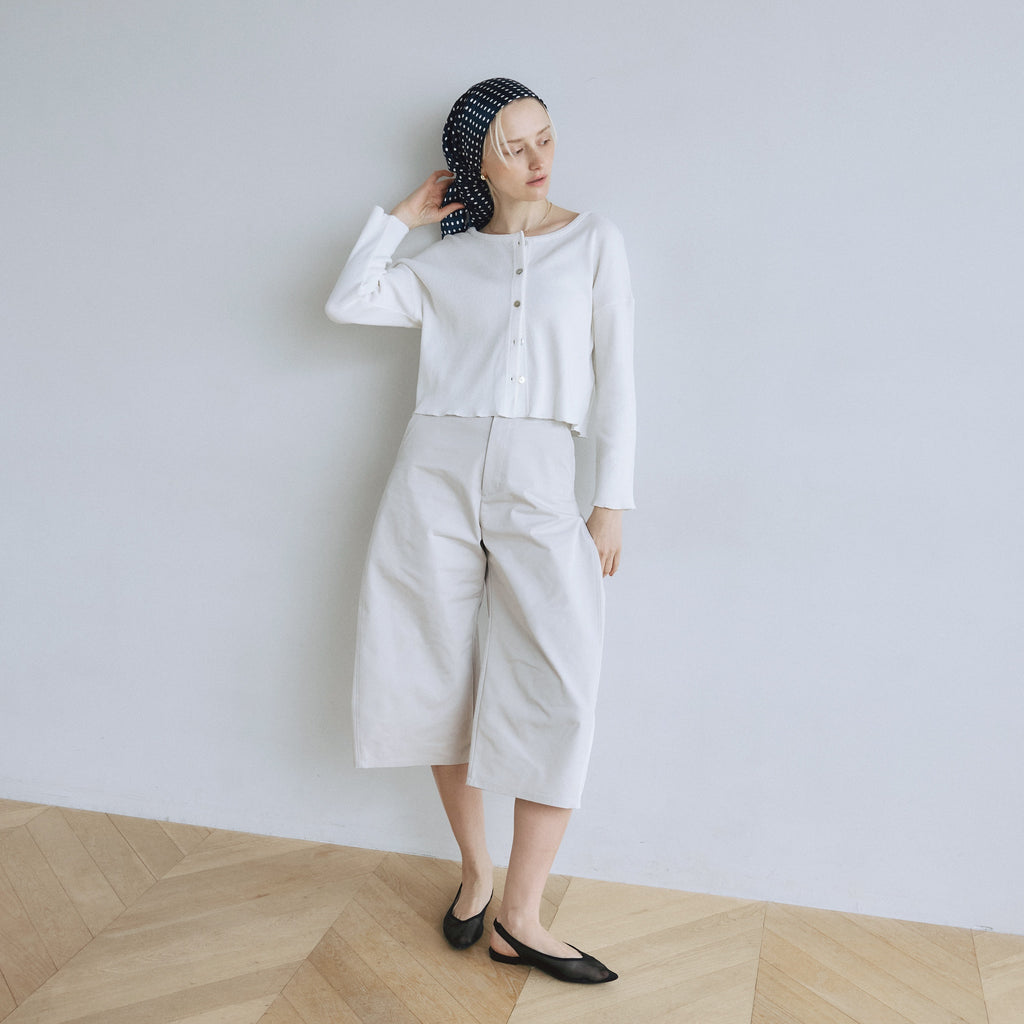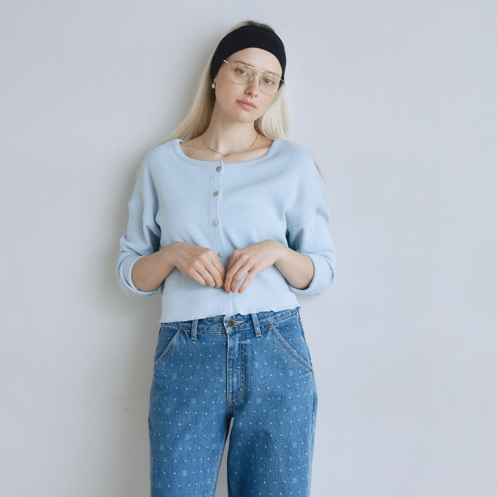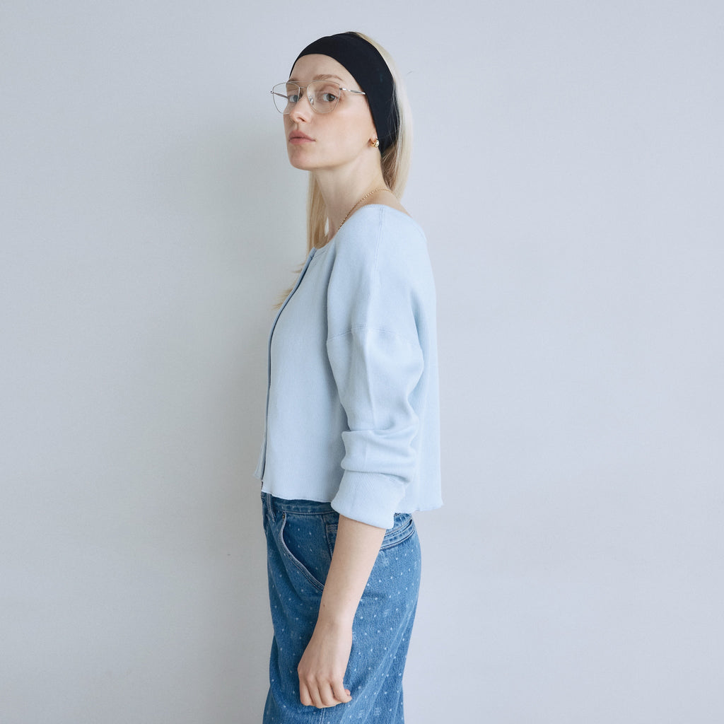 〈再入荷〉ふわっと気持ち良い素材の〈コットンリネン Fluffy〉シリーズから、カーディガンまたはトップスとしてマルチに使えるベーシックなアイテムが再入荷。どんなシーンでも活躍するので1枚持っていると便利。「パウダーブルー」「シアークリーム」が新色で登場です。