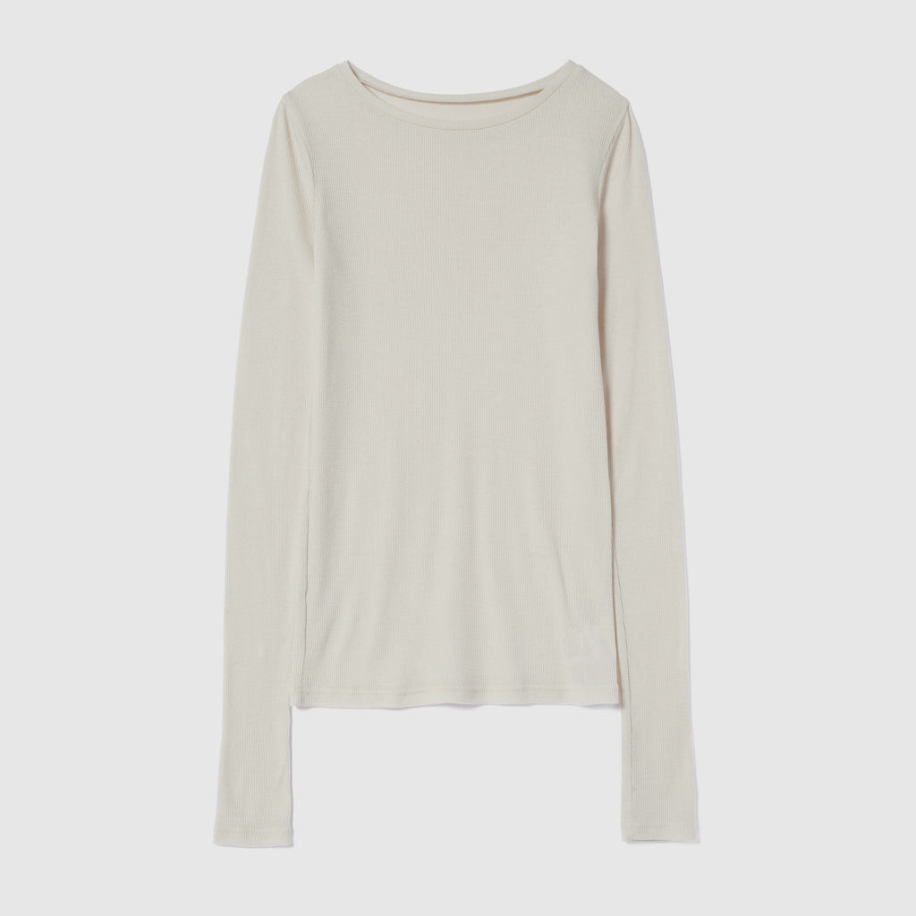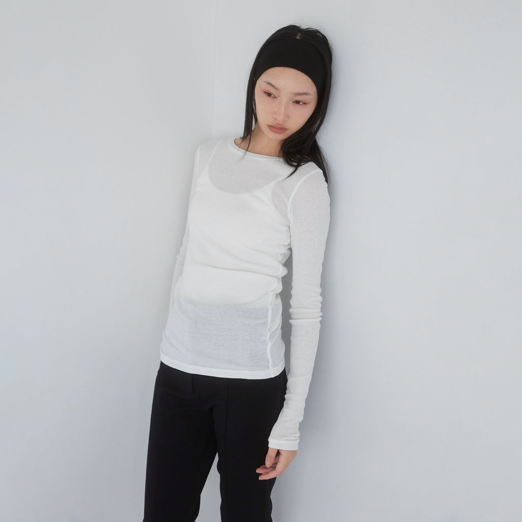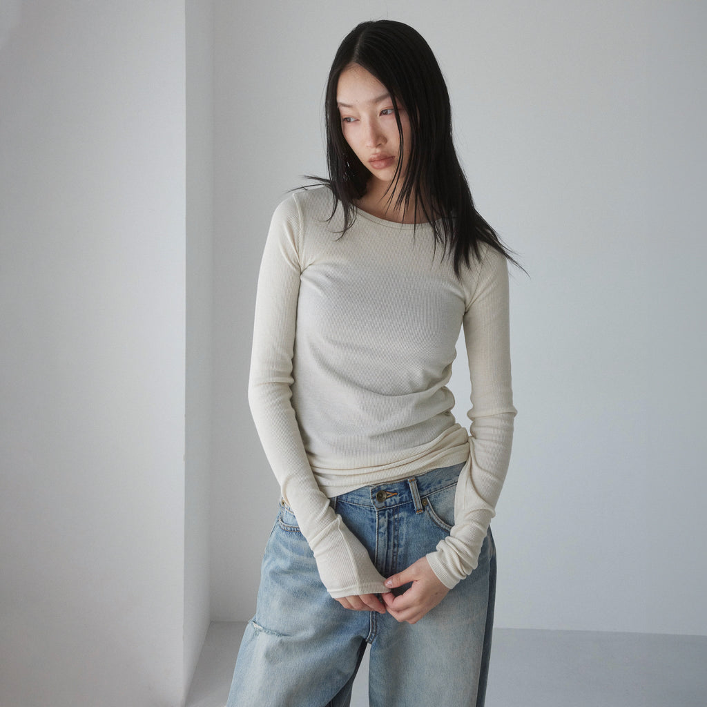 絶妙な透け感で使いやすい、細ピッチのリブ生地。着心地を重視したソフトな肌触りがポイントです。柔らかさの中にもコットンの爽やかなドライタッチが感じられます。