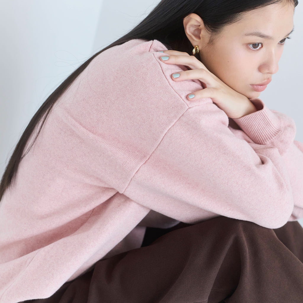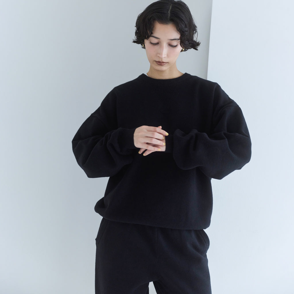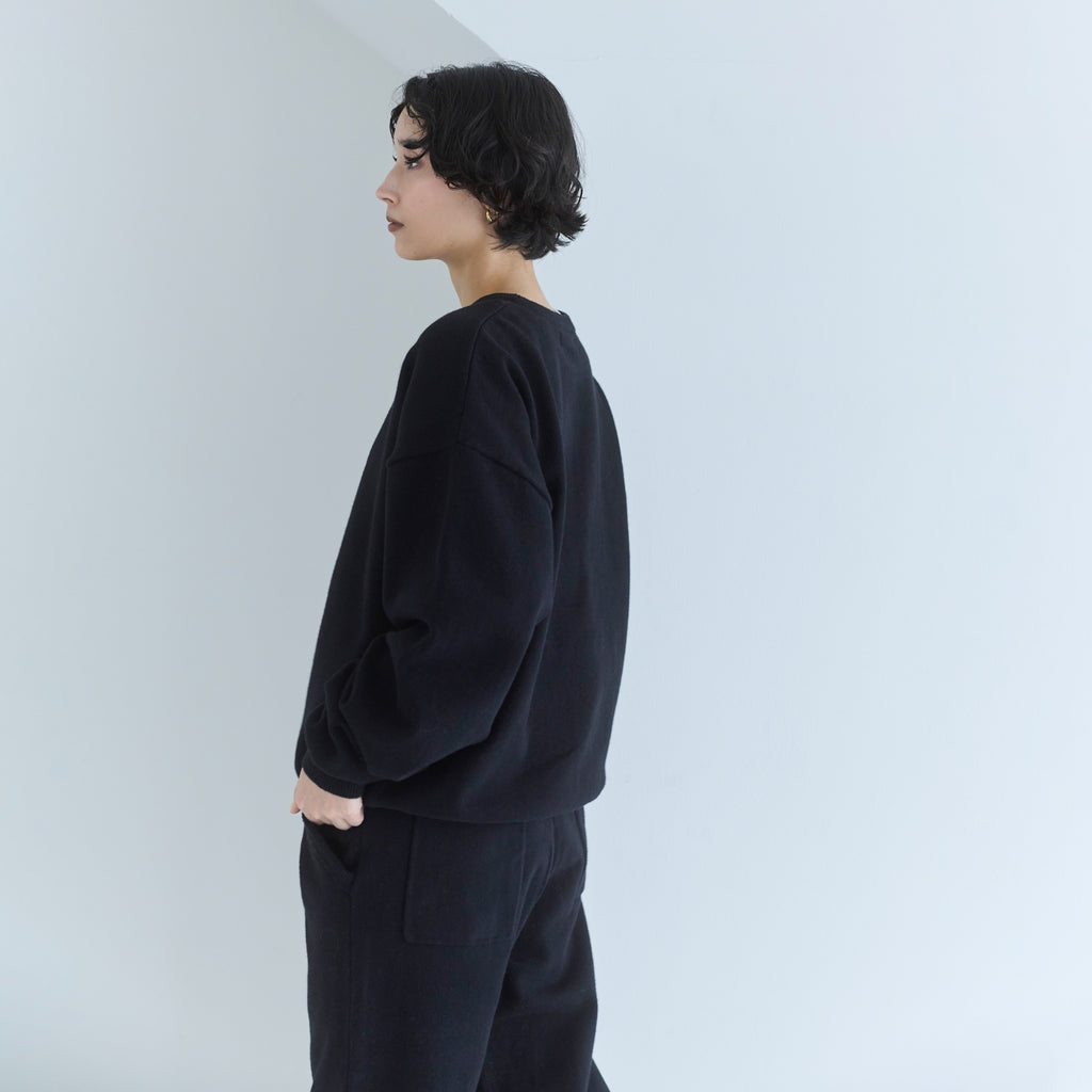 スウェットらしさを随所に散りばめたニットのプルオーバー。