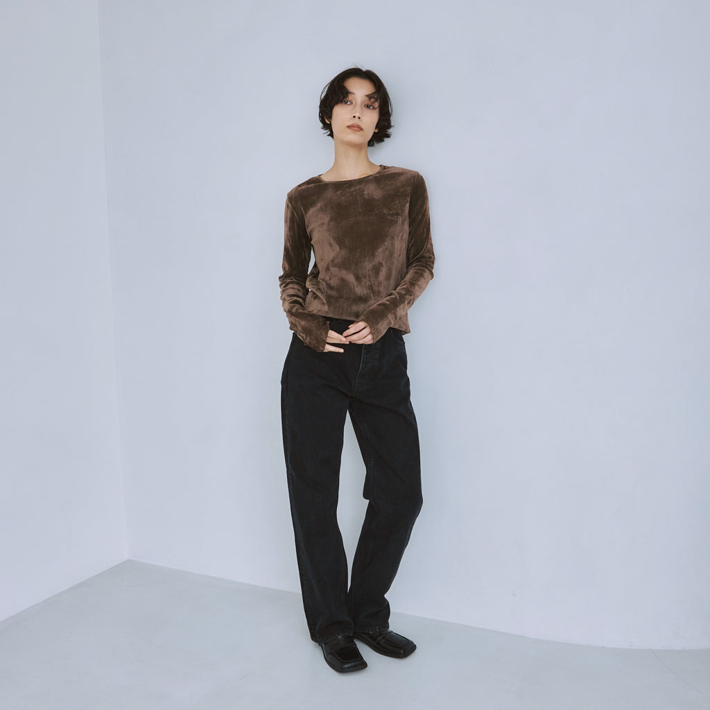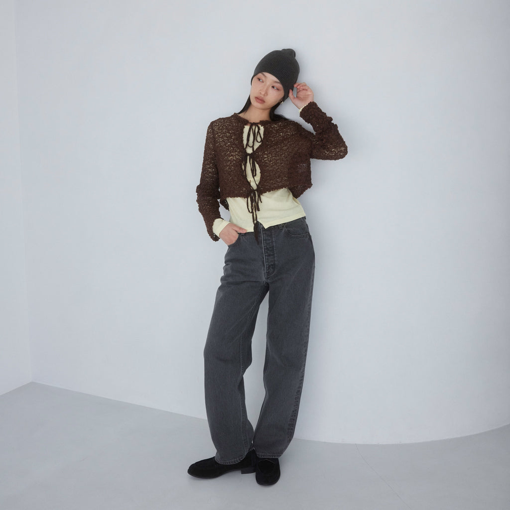 定番的に使える「ウォッシュブラック」、しらっちゃけた雰囲気が可愛い「ウォッシュグレー」、スッキリ潔い「ホワイト」、大人なデニムカラー「ダークインディゴ」に加え、新色として登場した「インディゴ」はデニムの中で一番濃色。インディゴの色は残しつつ、加工により洗いざらしのようなユーズド感を演出しています。