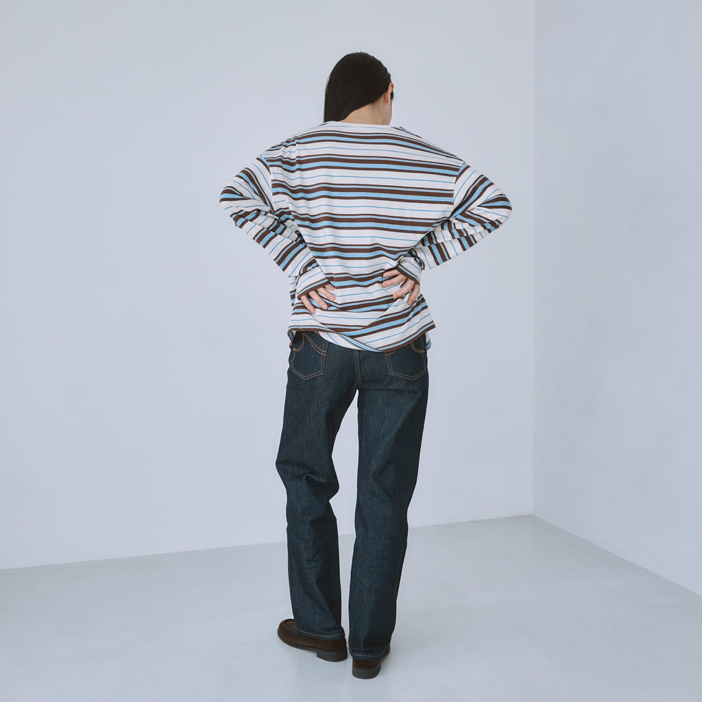 厚みのある素材×美脚のストレートラインのデニムが再入荷。新色「インディゴ」も登場しました。80年代の古着デニムの表情を持ちながら、SRLらしいキレイめな印象も感じられる1本です。