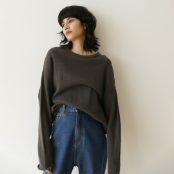 首元は詰まったクルーネックで大人っぽい印象に仕上げました。