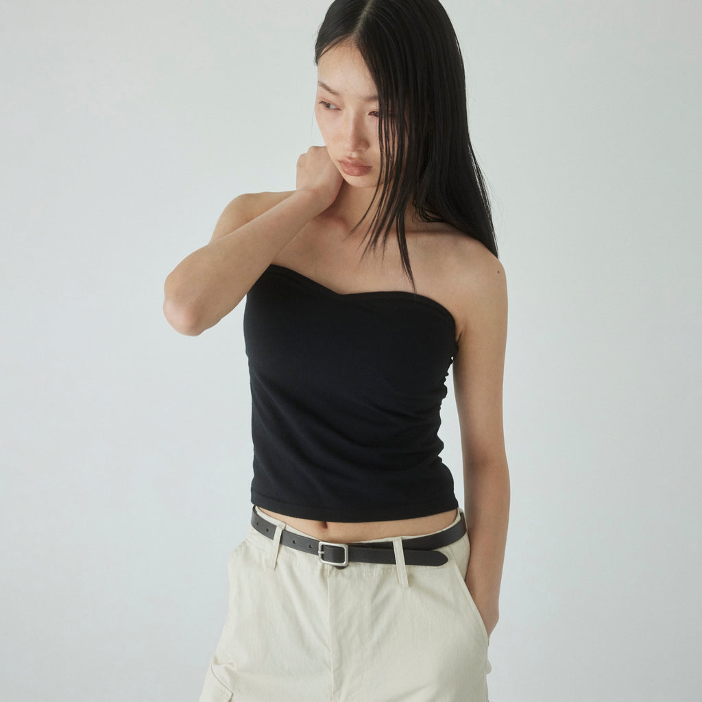 シンプルなデザインで多彩なコーディネートが可能。インナーというよりも、表に着ていただきたい1枚です。取り外し可能なパッド付きなのでそのままお使いいただけます。