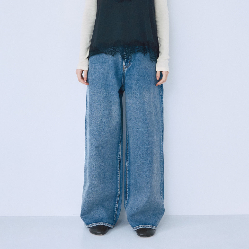 深めの股上×たっぷりルーズなシルエットが特徴の新しいワイドデニム。あえてずるっと下に貯まるように設計された、ストリートライクな旬デザインをお楽しみください。