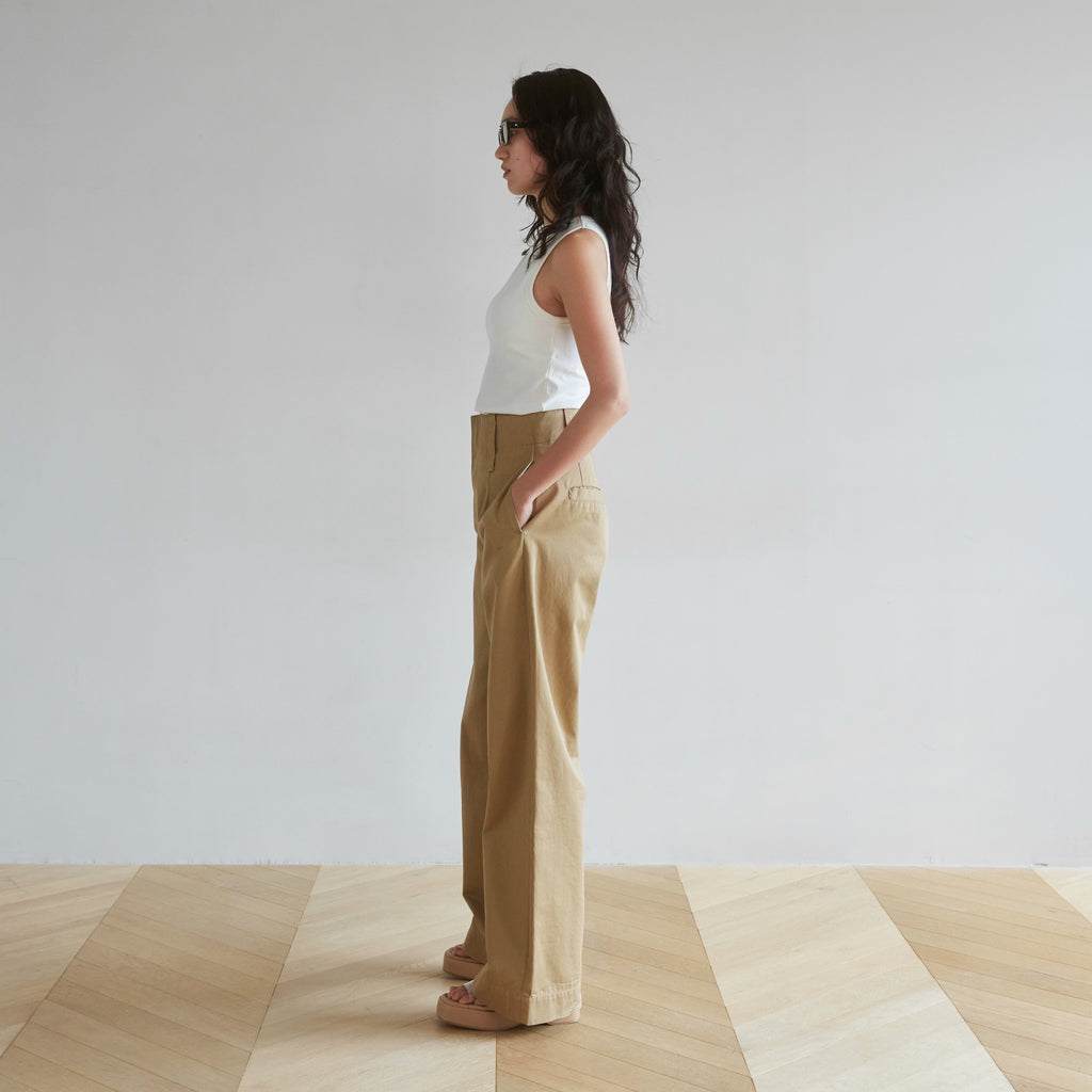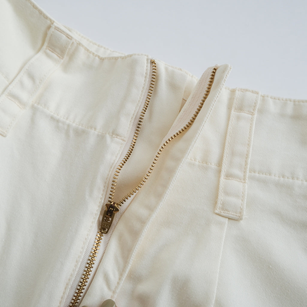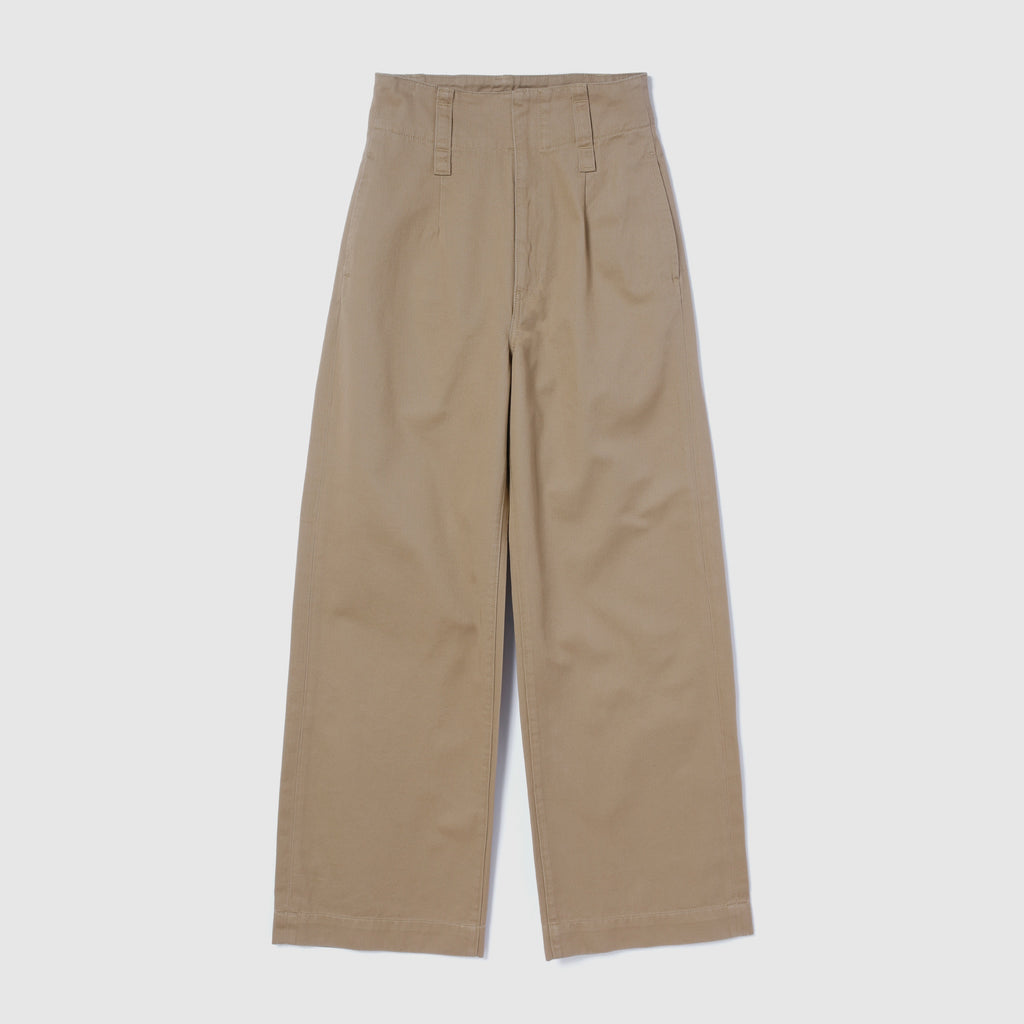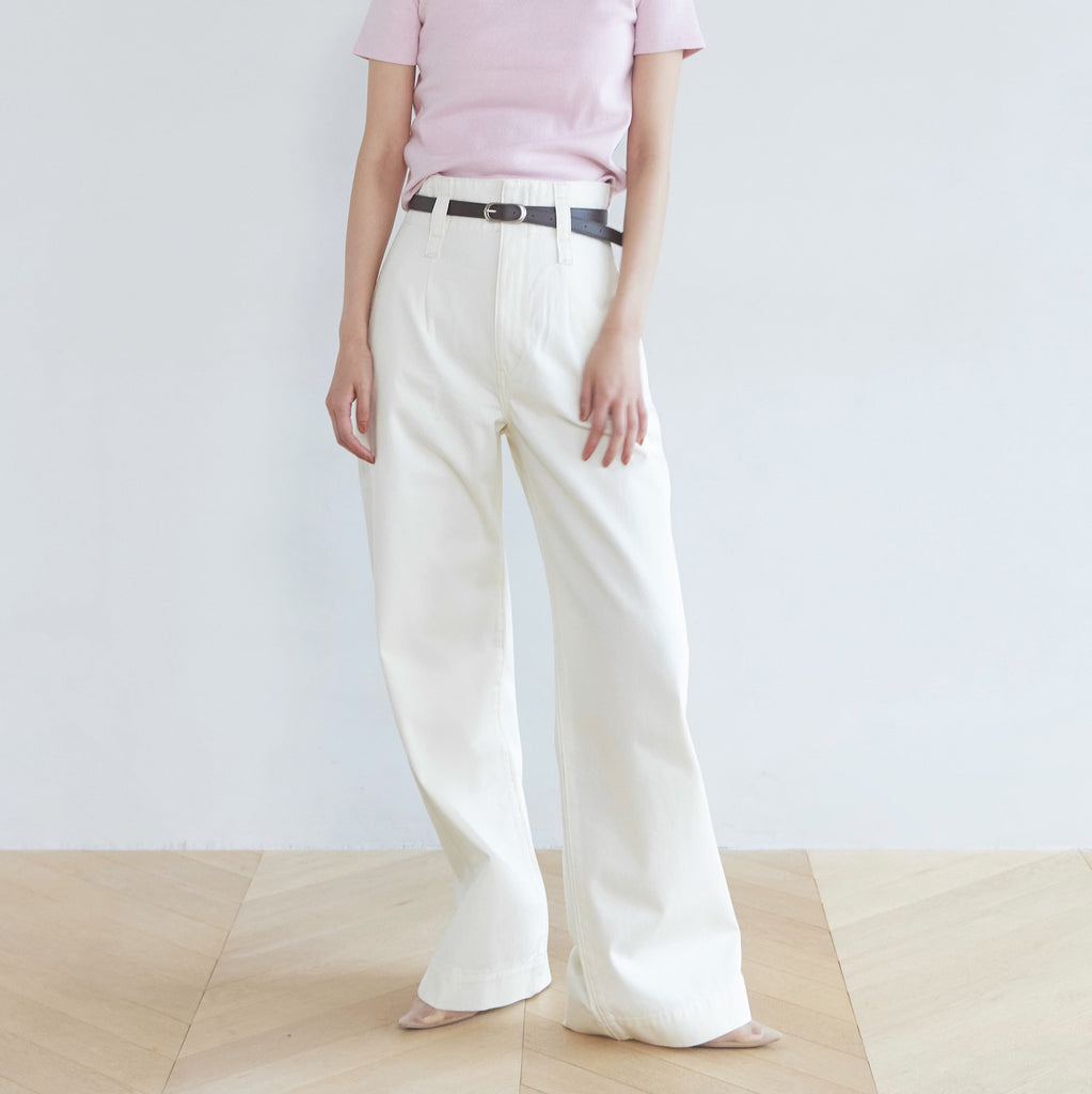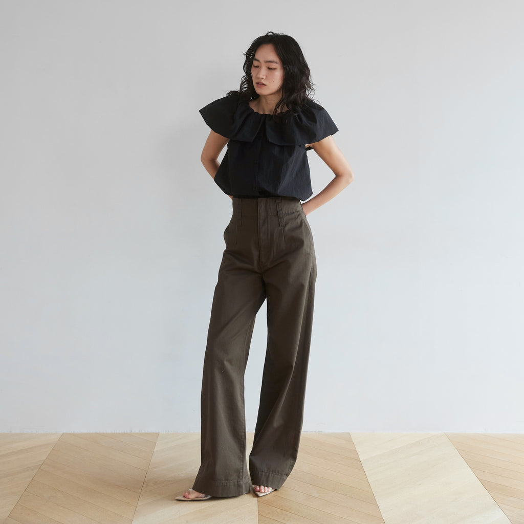 ハイウエストに設定した、立ち姿が美しいチノパンツ。スラックスのデザインを踏襲し、カジュアルすぎないのがポイントです。新色「ダークブラウン」「ホワイト」も追加となりました。