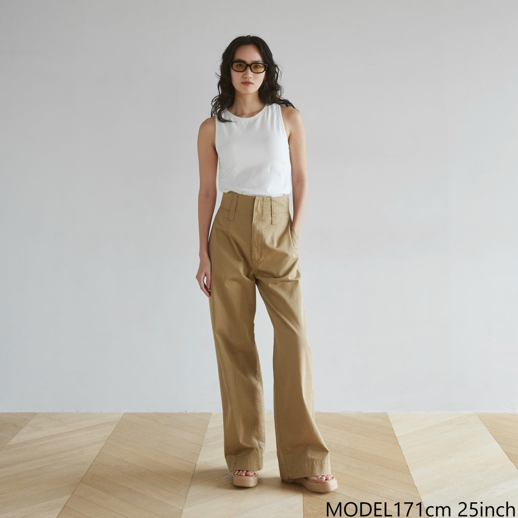 ※通常のハイウエストよりもさらにハイウエストの設定なので、いつものサイズだとやや窮屈に感じる場合があります。ワンサイズ上げてベルトで締めたり、ジャストサイズでもお履きいただけます。