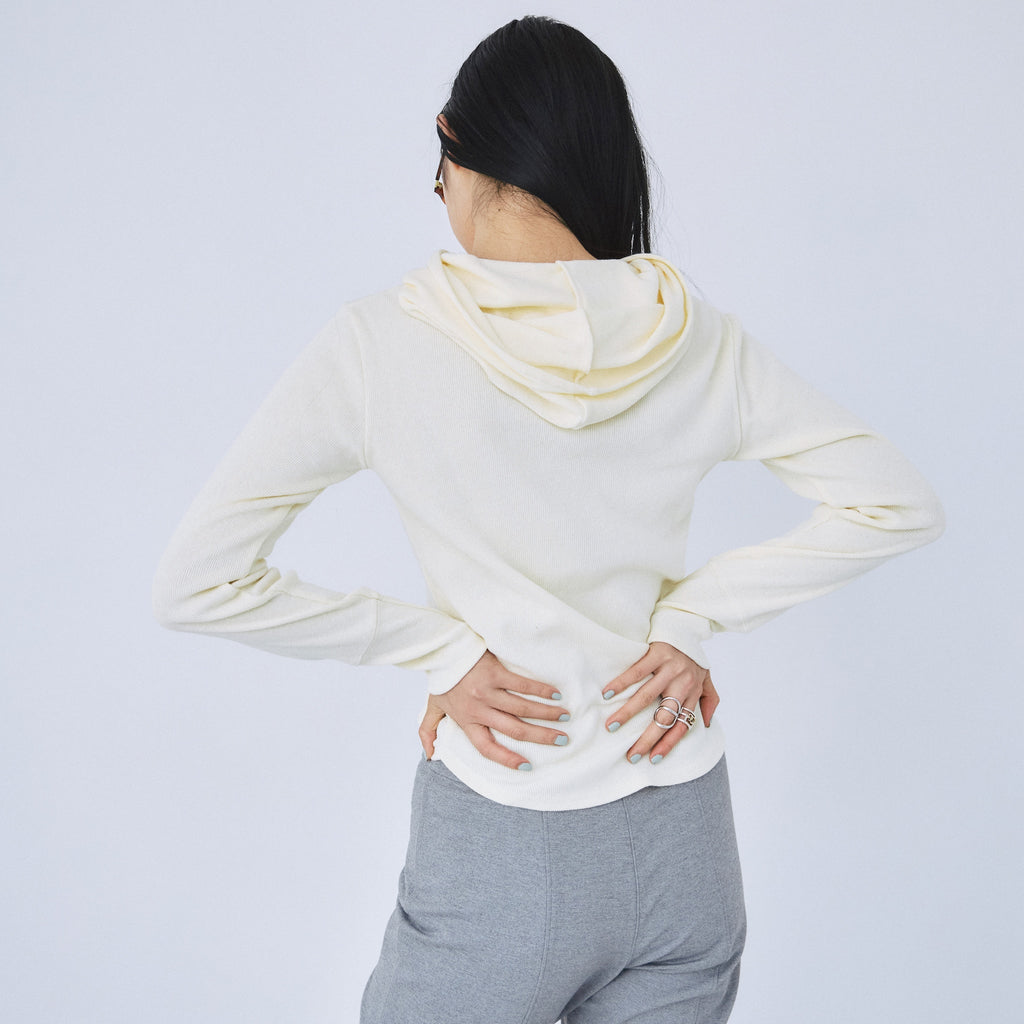 程良くフィットするサイズ感に設計されたフーディトップス。