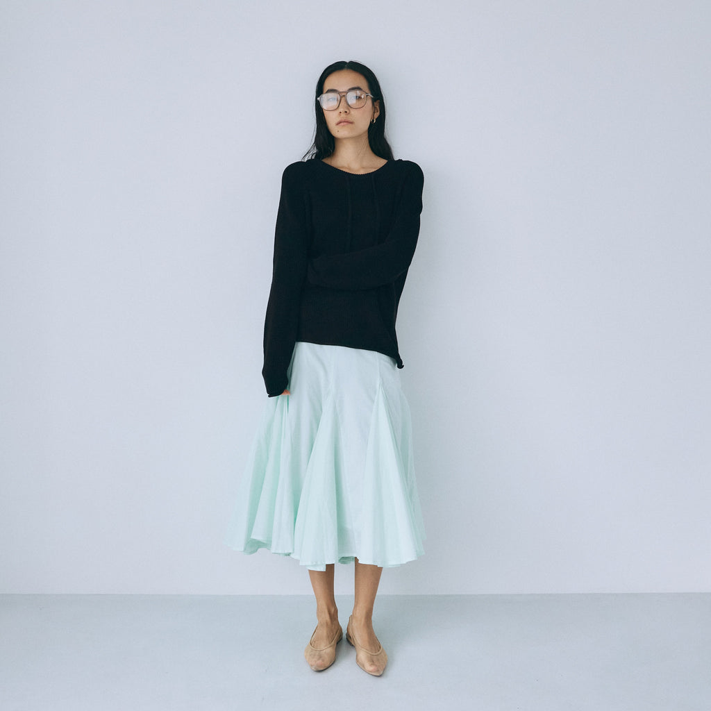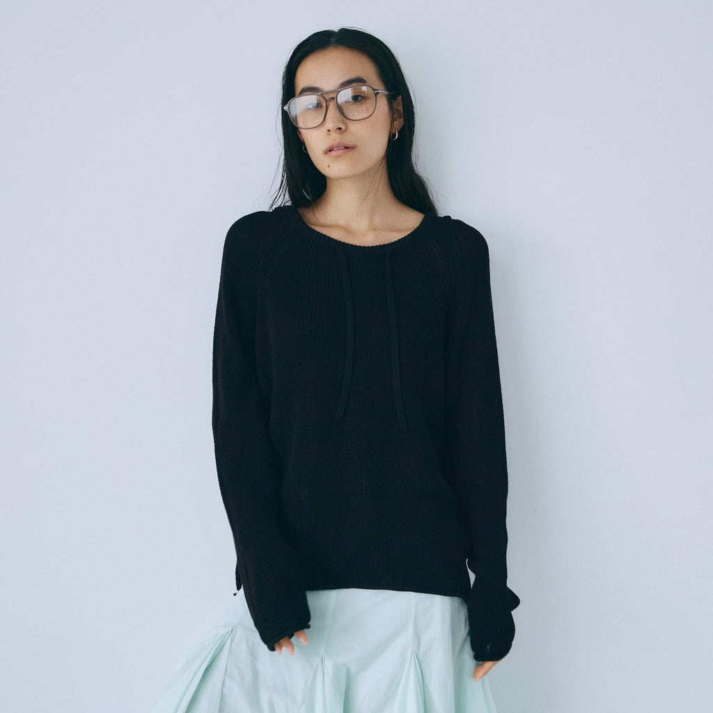 袖口や裾はロール始末で仕上げ、ニットらしいラフで軽快な表情を大切にしました。
