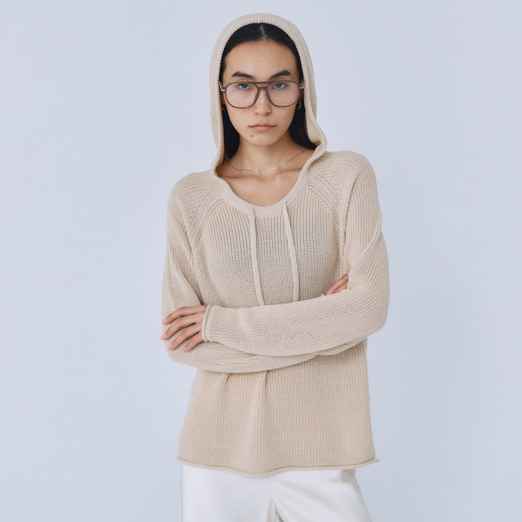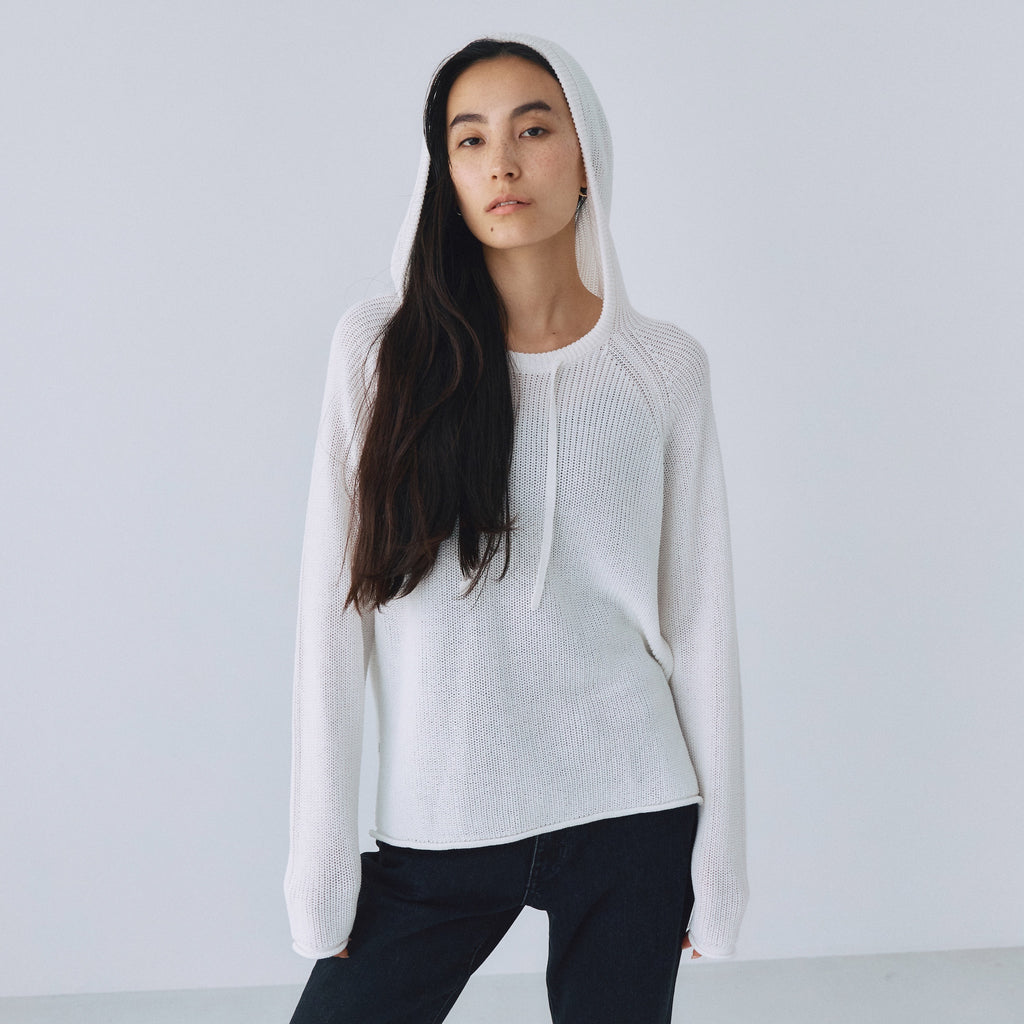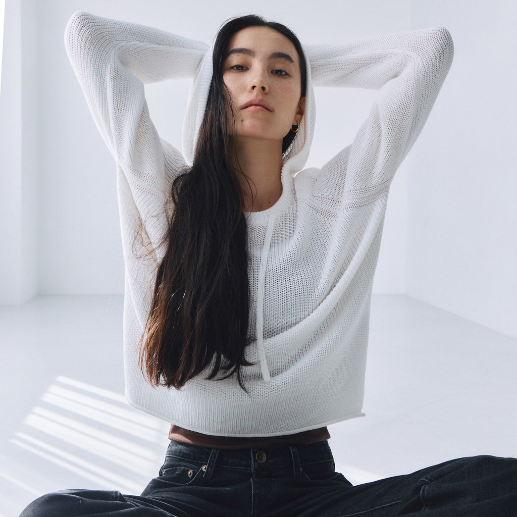 春の心地良い風を纏う、ドライタッチなニットフーディーが登場。