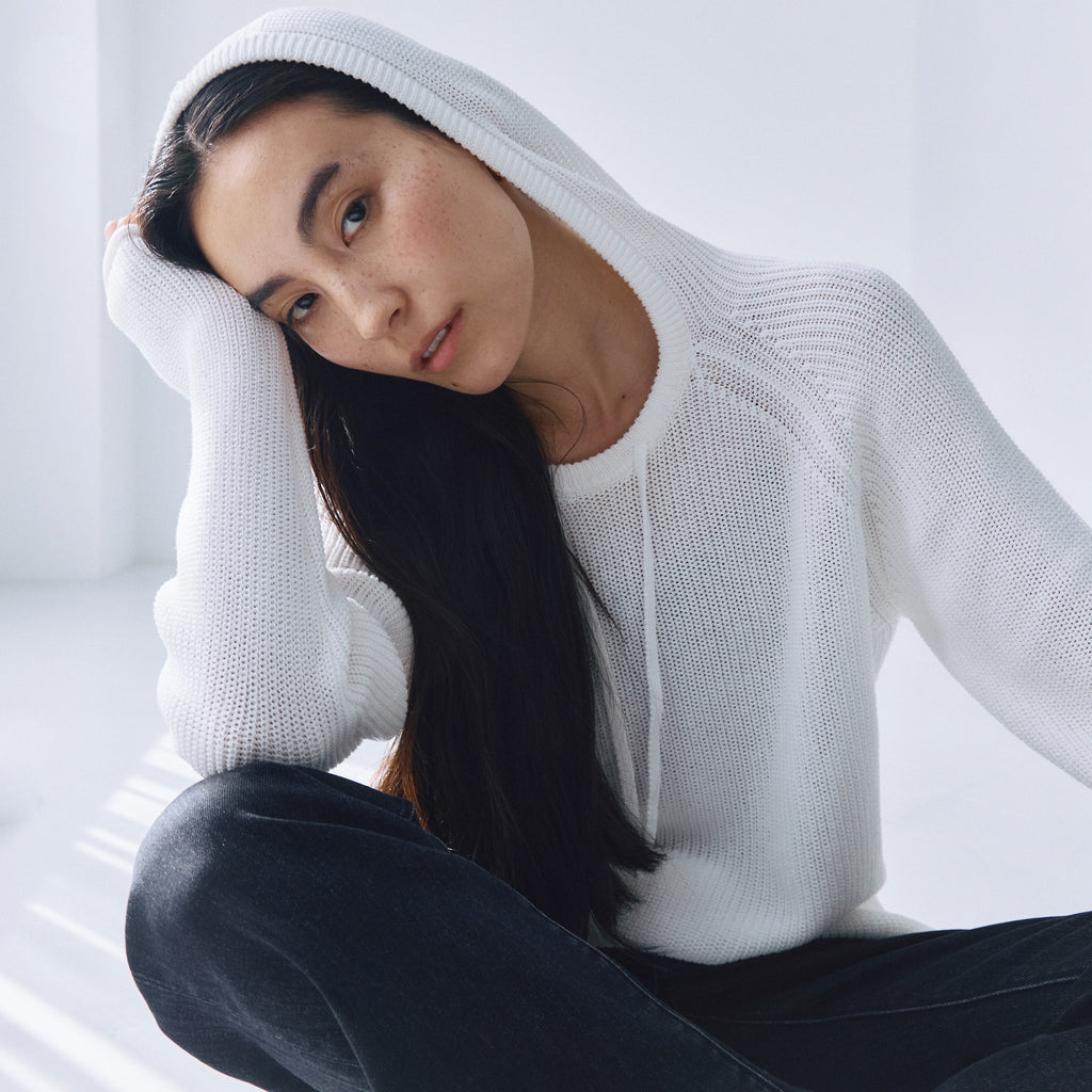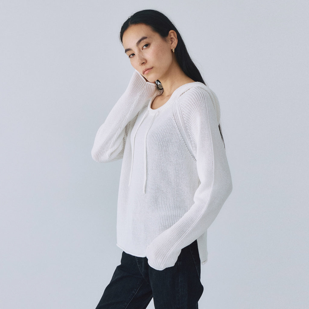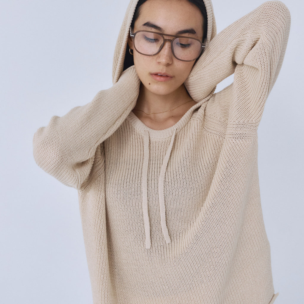 春の心地良い風を纏う、ドライタッチなニットフーディーが登場。