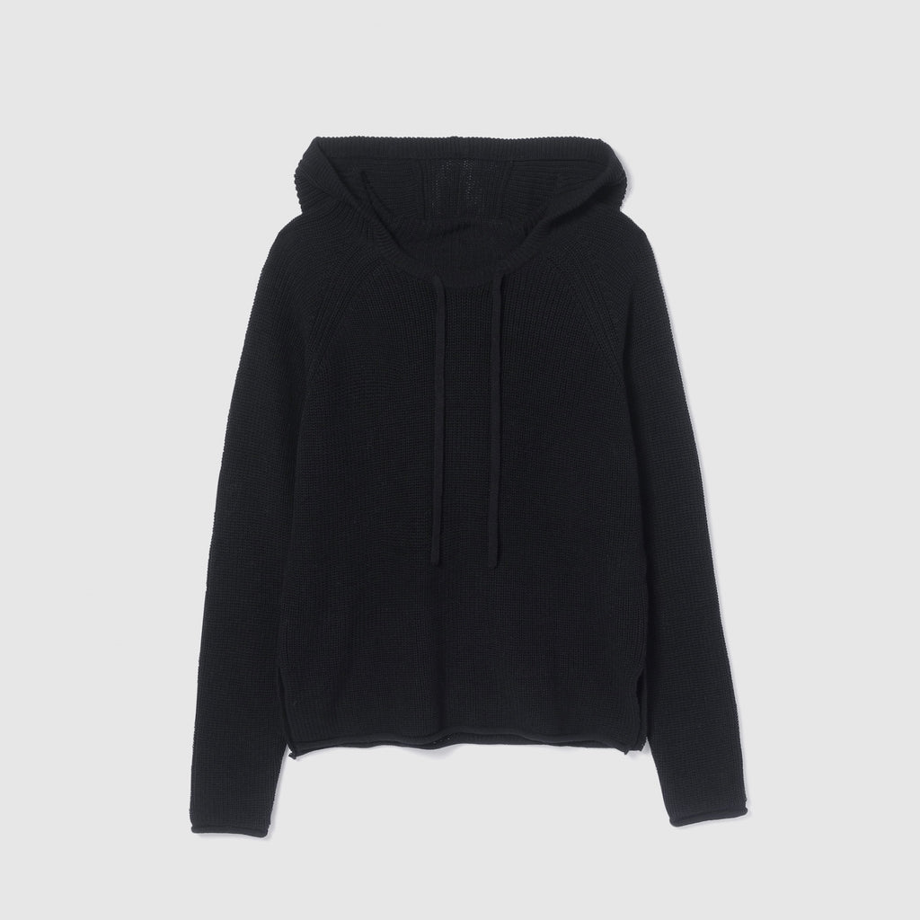 クルーネックから自然に繋がるフードデザインが首元に絶妙な抜け感をプラス。