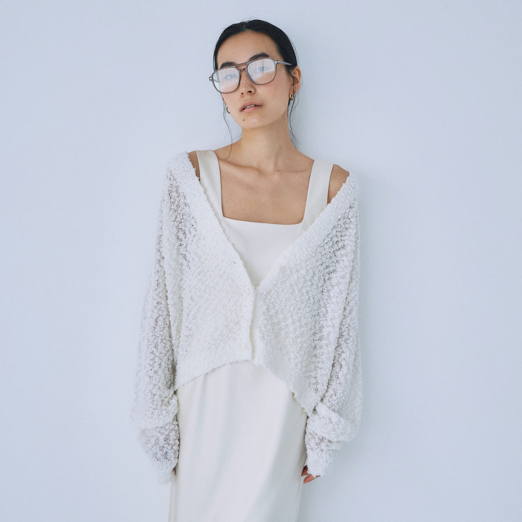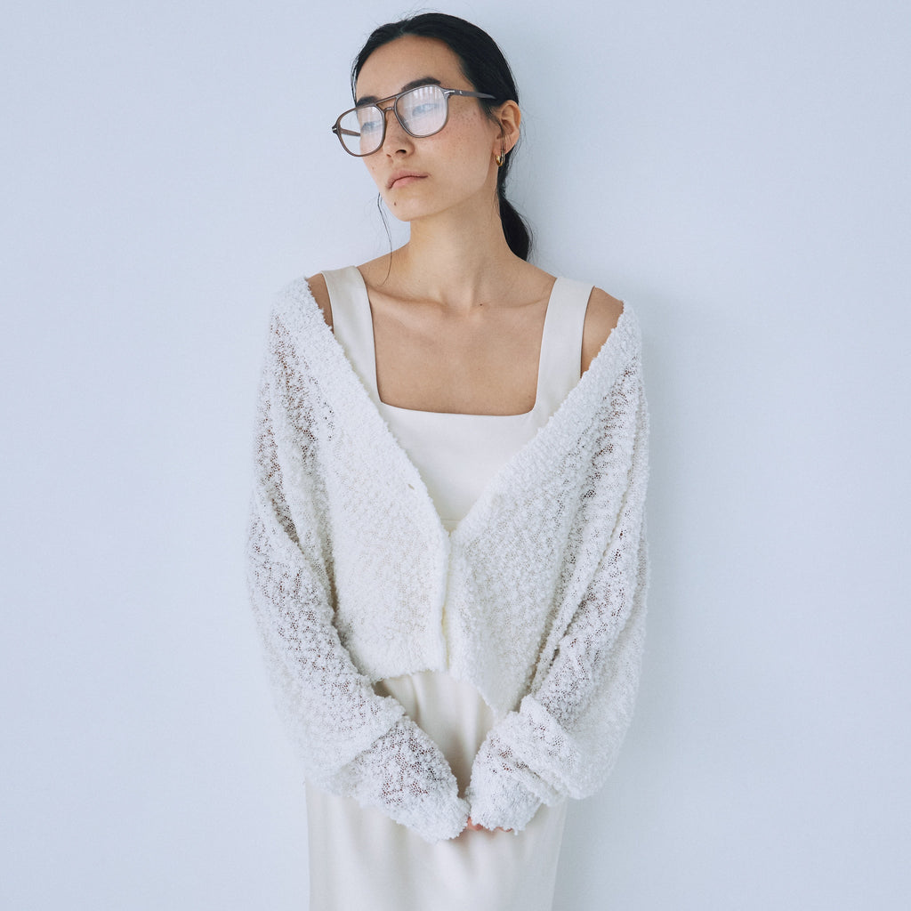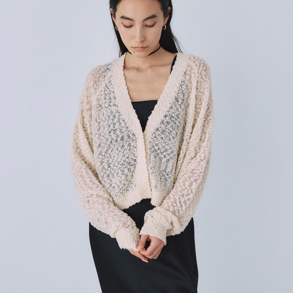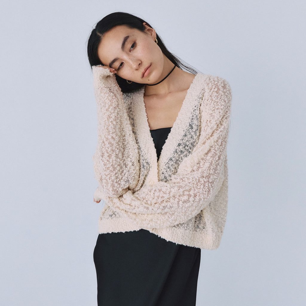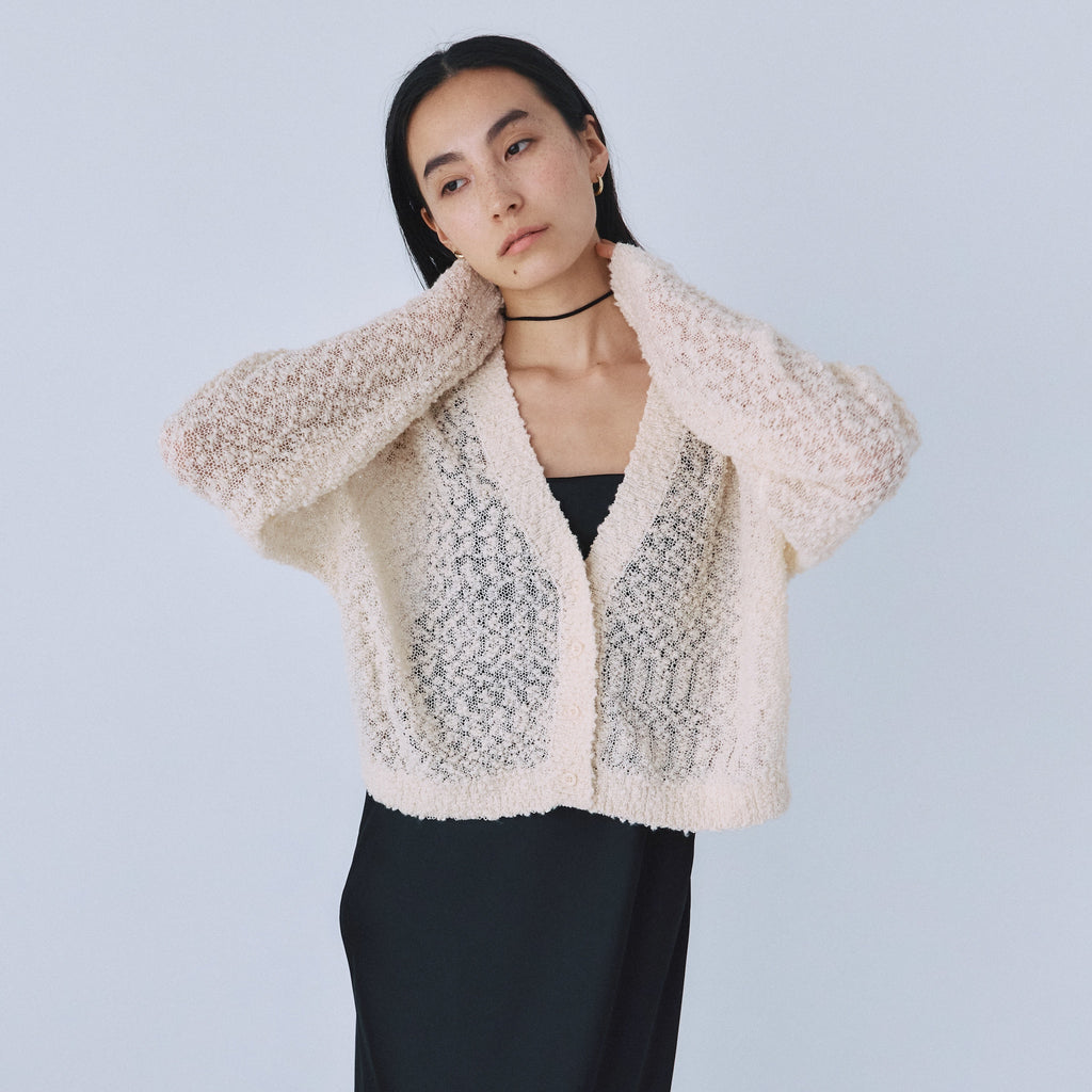 粒々としたスラブの凹凸感が魅力なシアーカーディガンが登場。