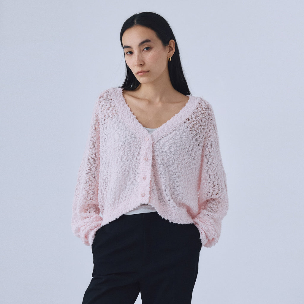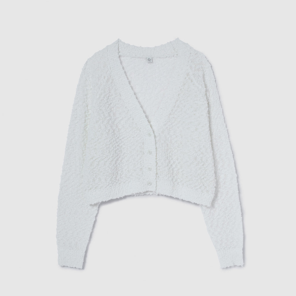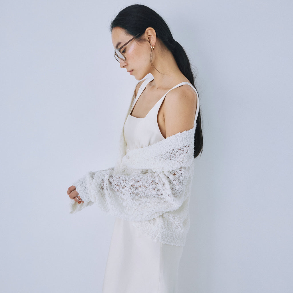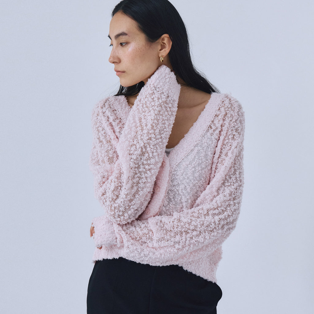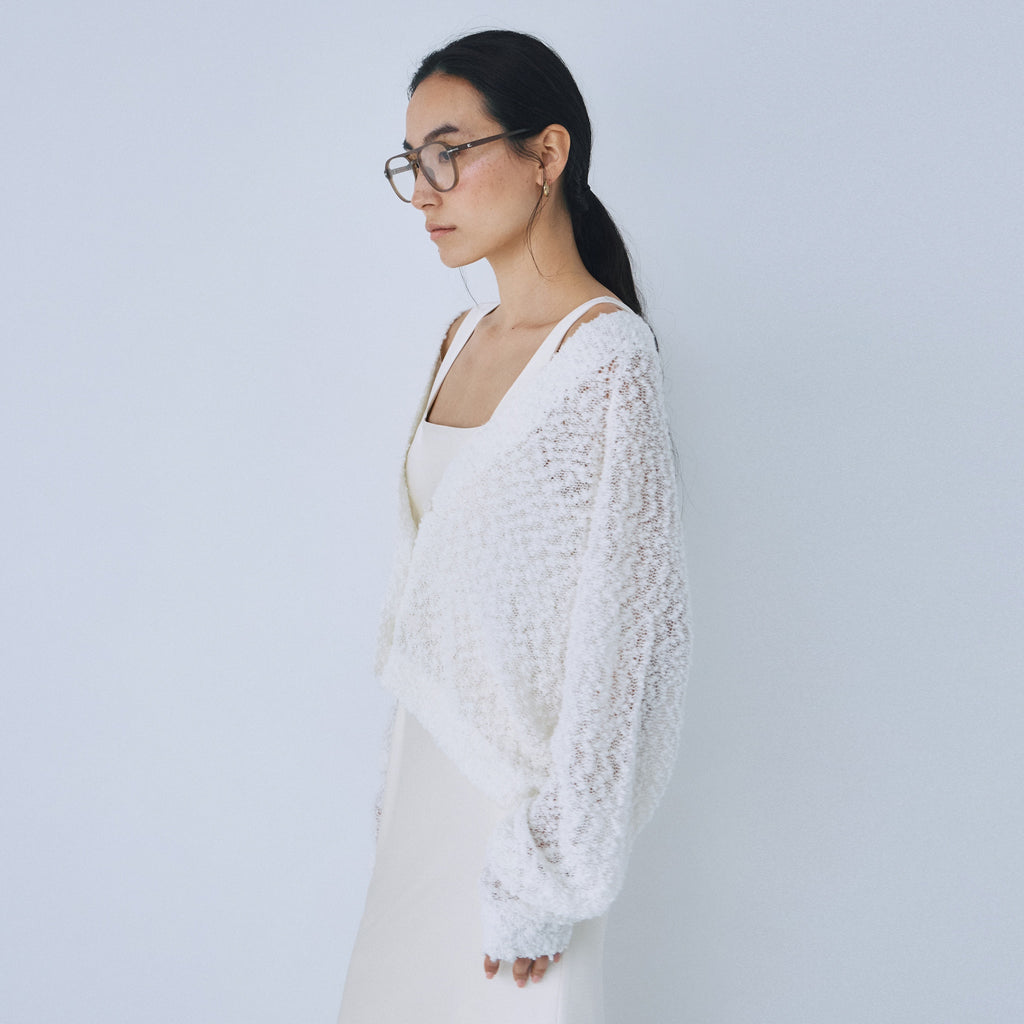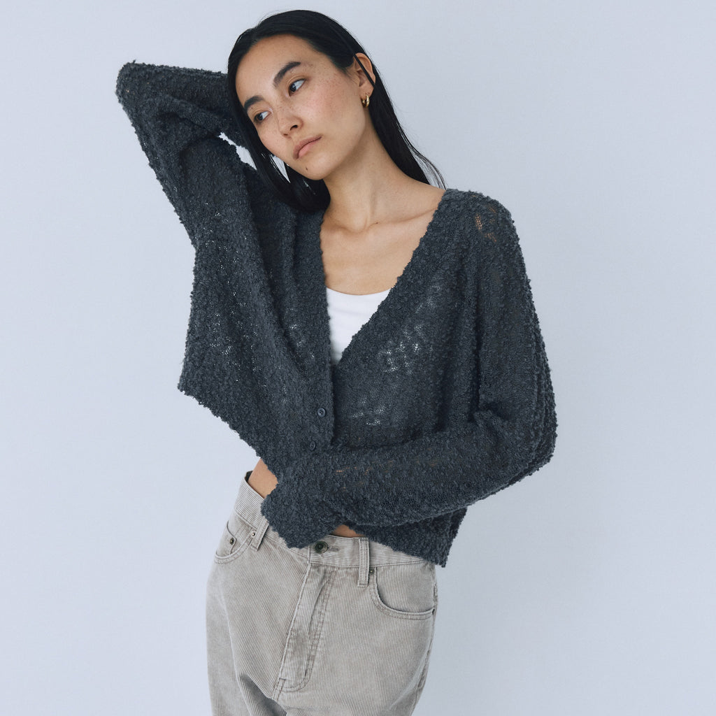粒々としたスラブの凹凸感が魅力なシアーカーディガンが登場。