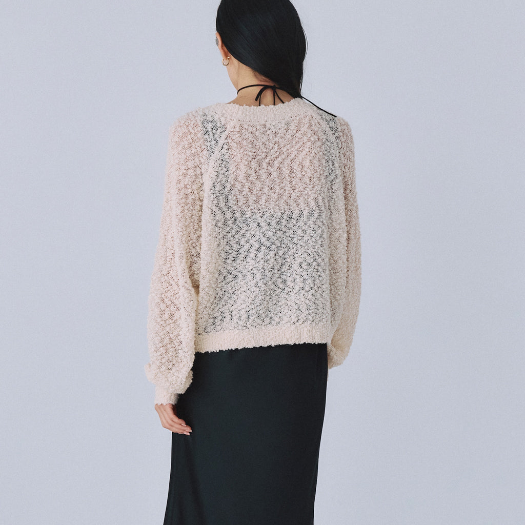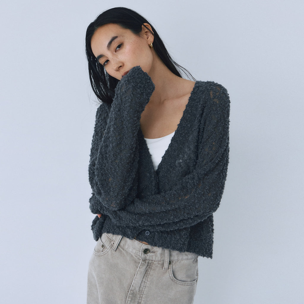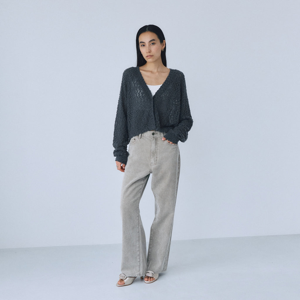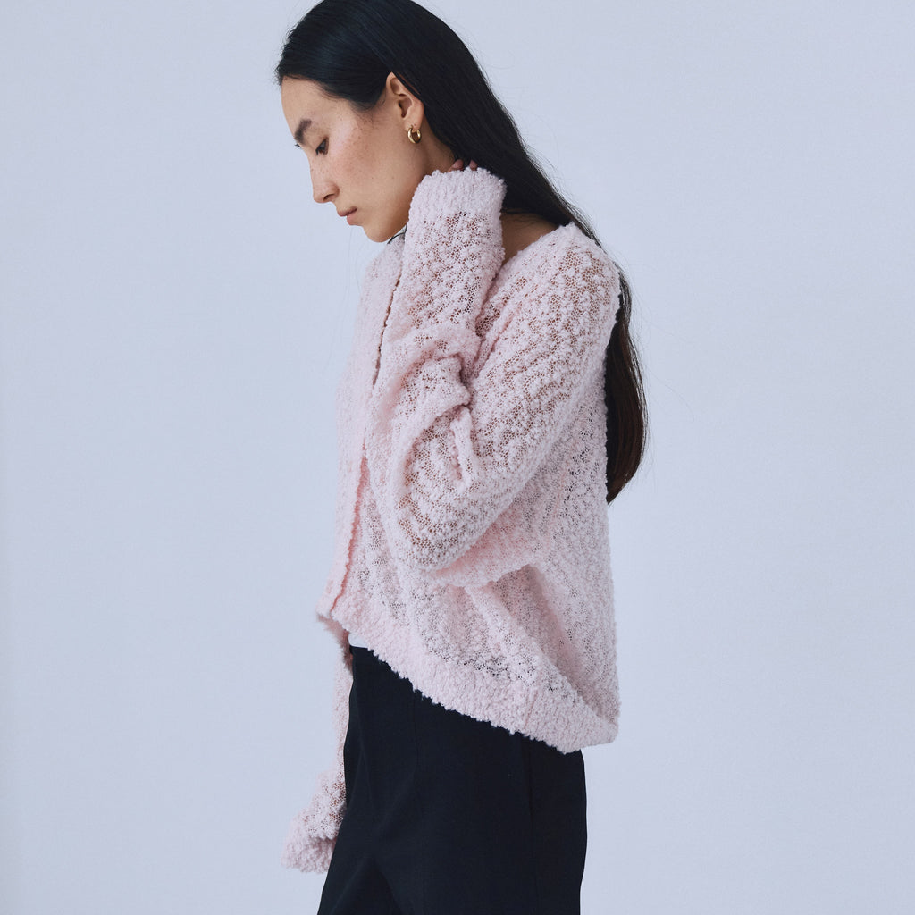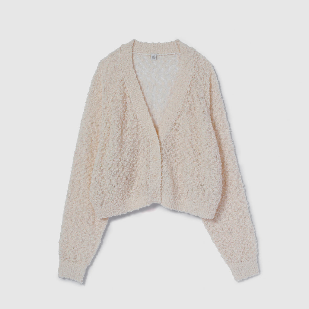 粒々としたスラブの凹凸感が魅力なシアーカーディガンが登場。