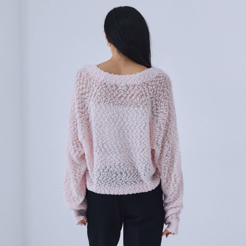 肌がほんのりと透けるシアー感と、ふっくらとした軽やかな風合いが特徴。