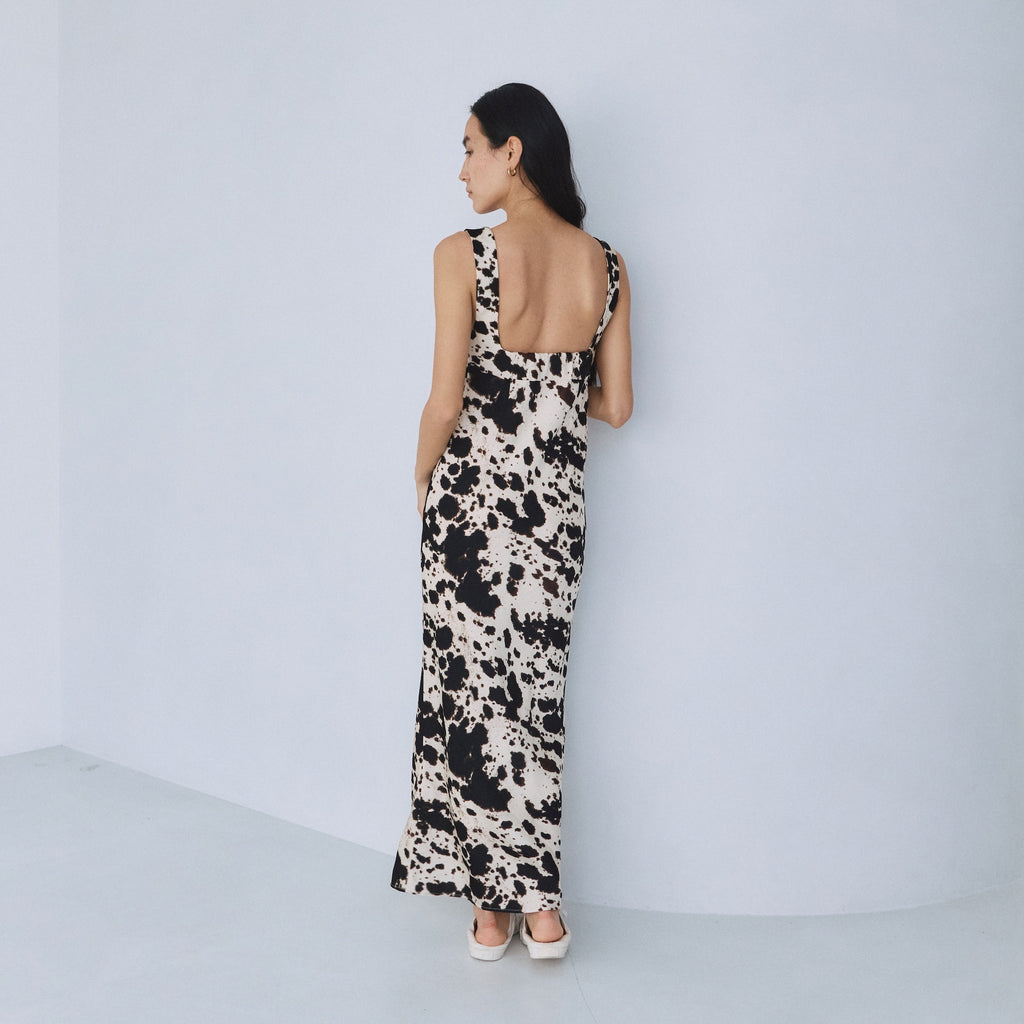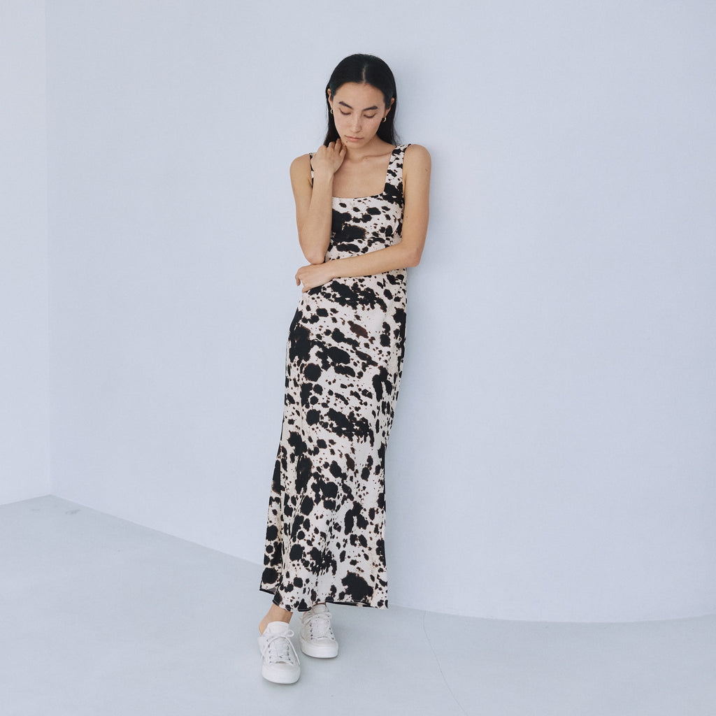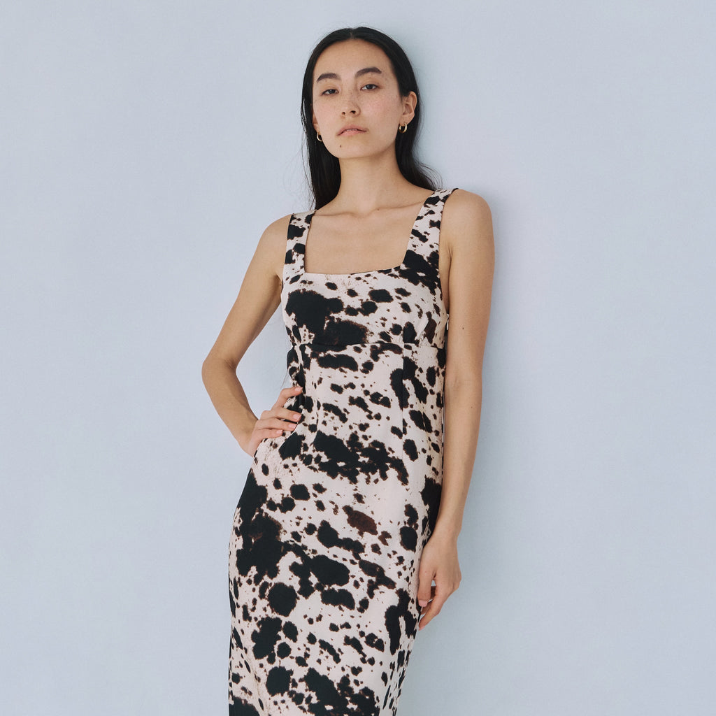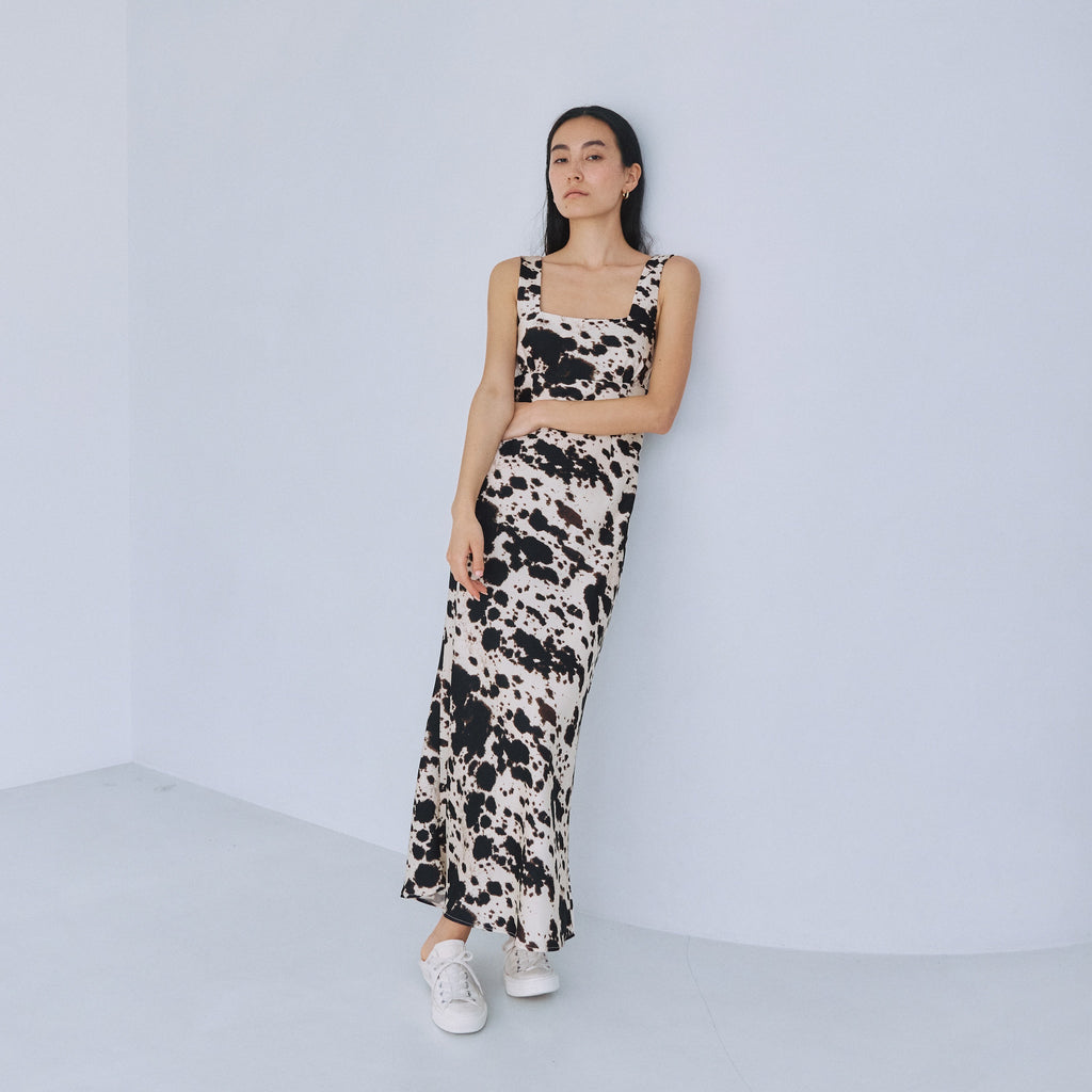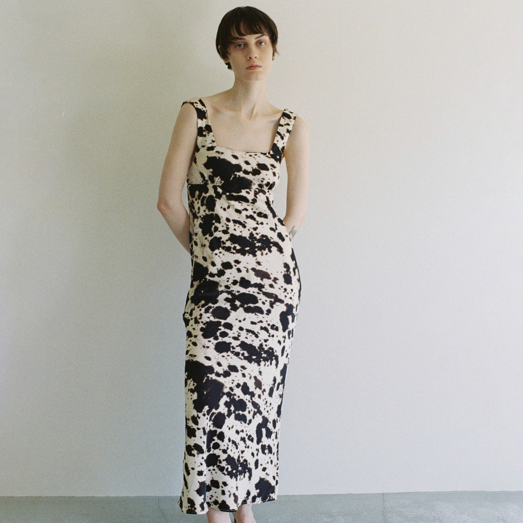 バイアス裁ちによる美しい落ち感が、女性らしいしなやかな曲線美を際立たせます。