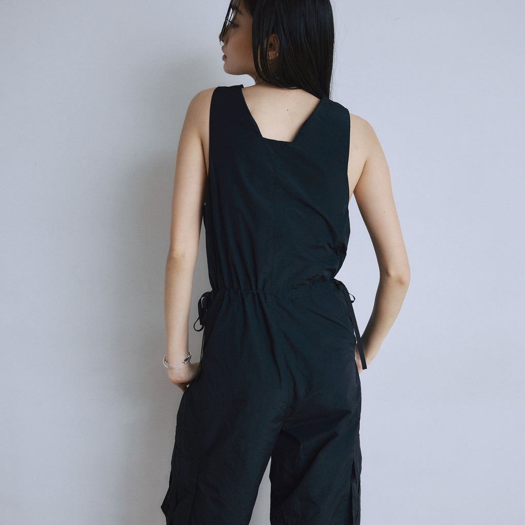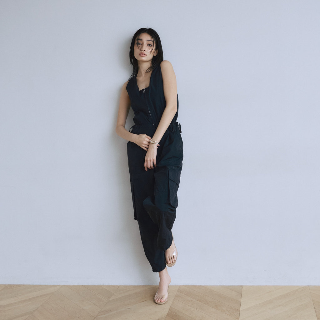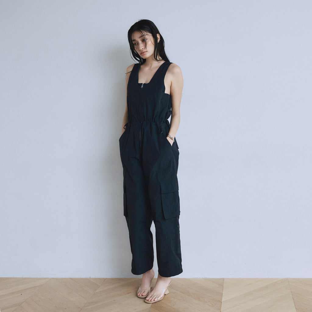 フロントZipナイロンサロペット