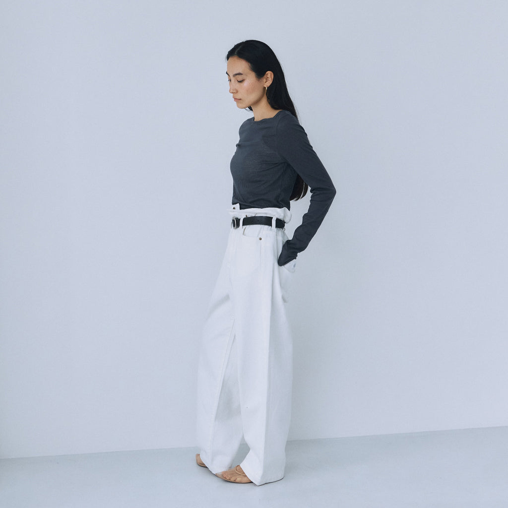 「ホワイト」は12ozのデニム。真っ白なカラーで、見た目にも実際にも軽さがあります。