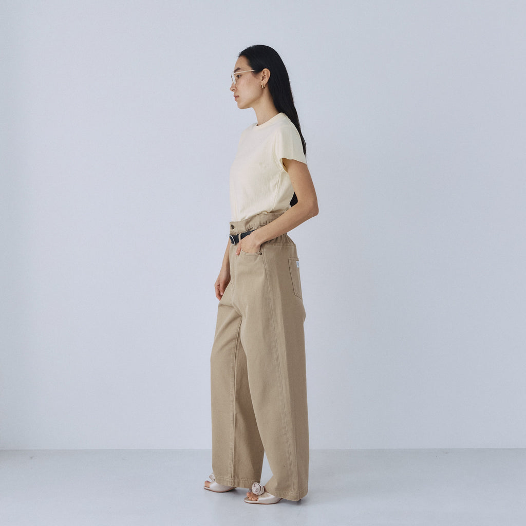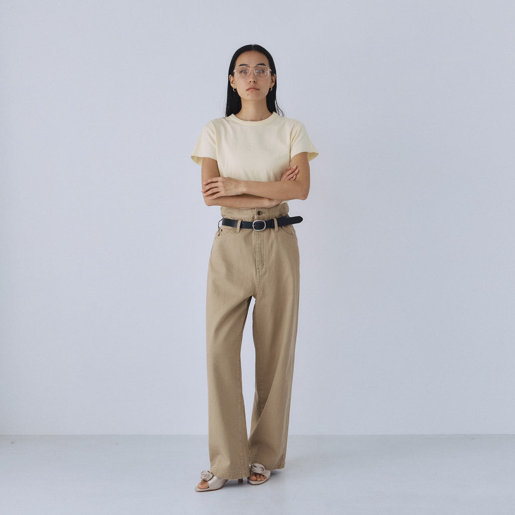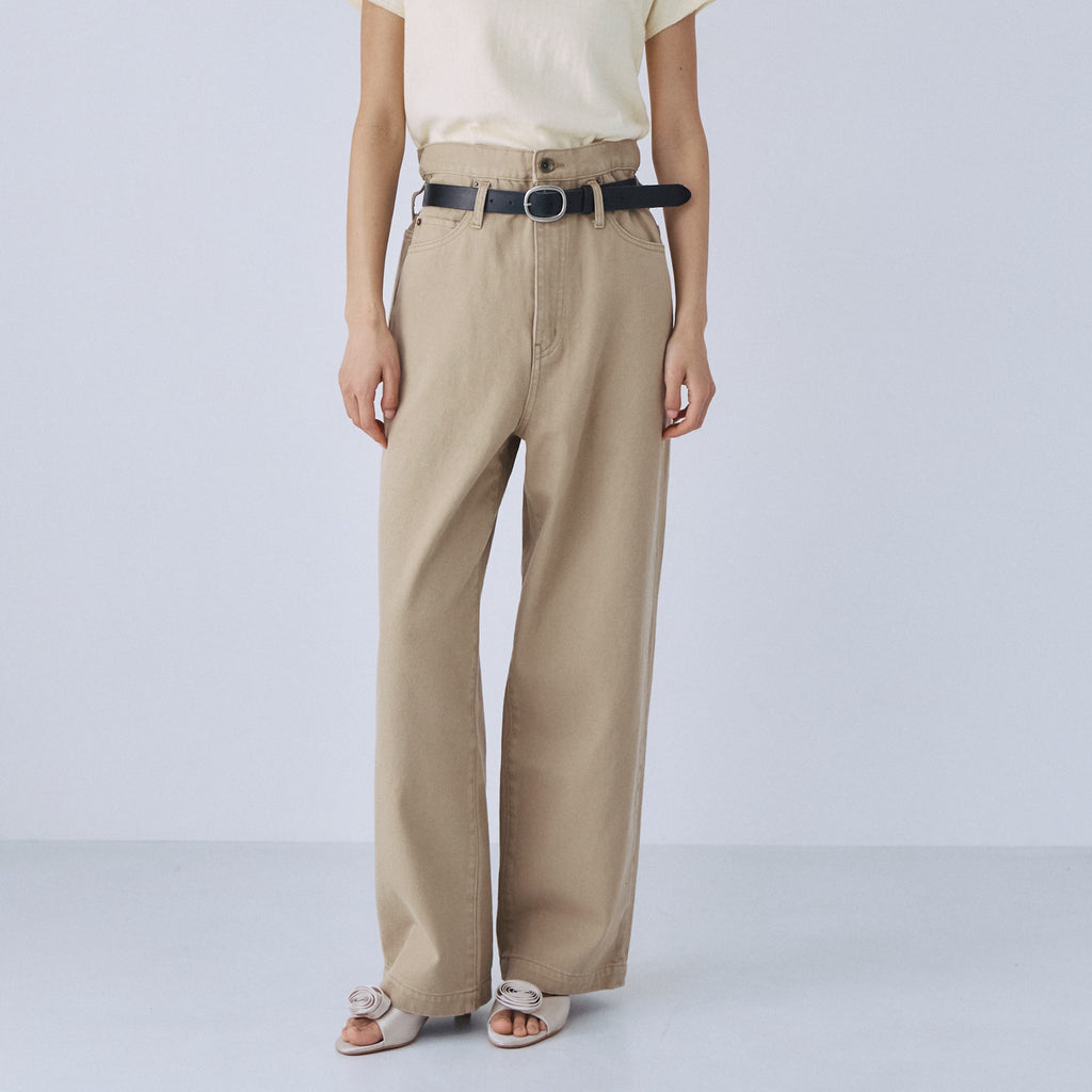 ウエストとヒップ周りにゆとりのある、古着のような大人ワイドデニム。ギャザーが可愛いウエストデザインにも注目。新色「ベージュ」を追加し再登場です。