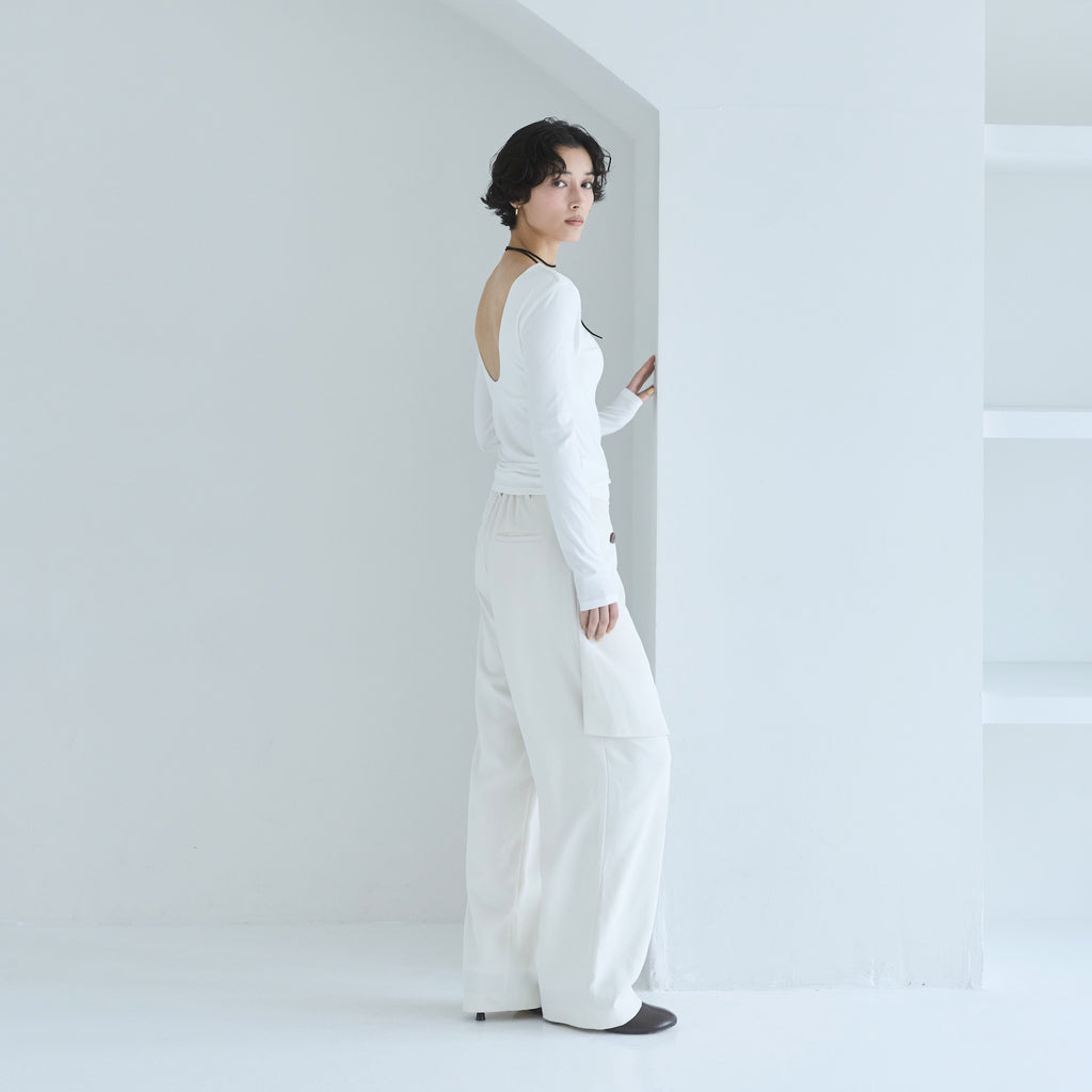 とろみと落ち感があり、肌触りも滑らかな生地を採用。綺麗な目面が特徴です。見た目よりも軽く、通年着用できる素材感。全色裏地付きのため、透けを気にせずご着用いただけます。