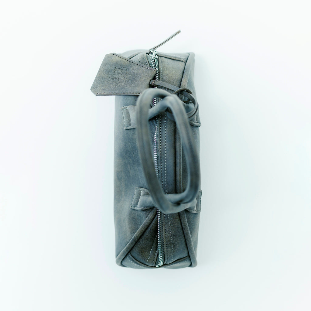 表面はマットな質感でヴィンテージのような風合い。ムラがある、色落ちしたようなエイジング加工が施されたエコレザー素材です。