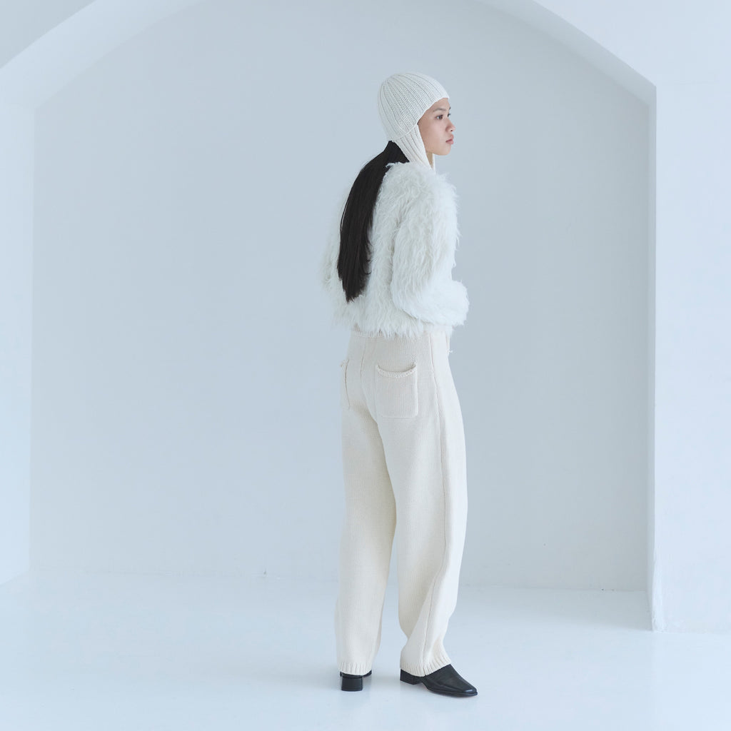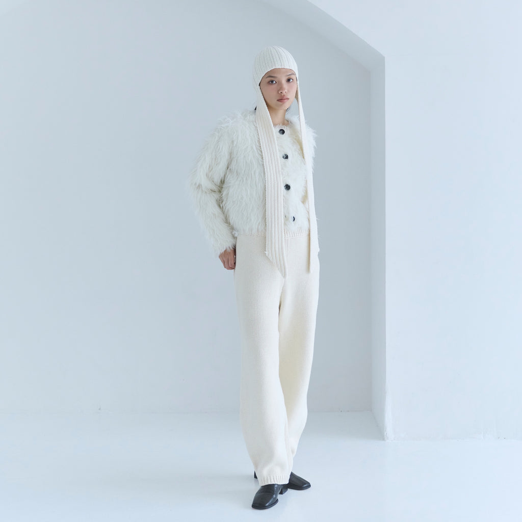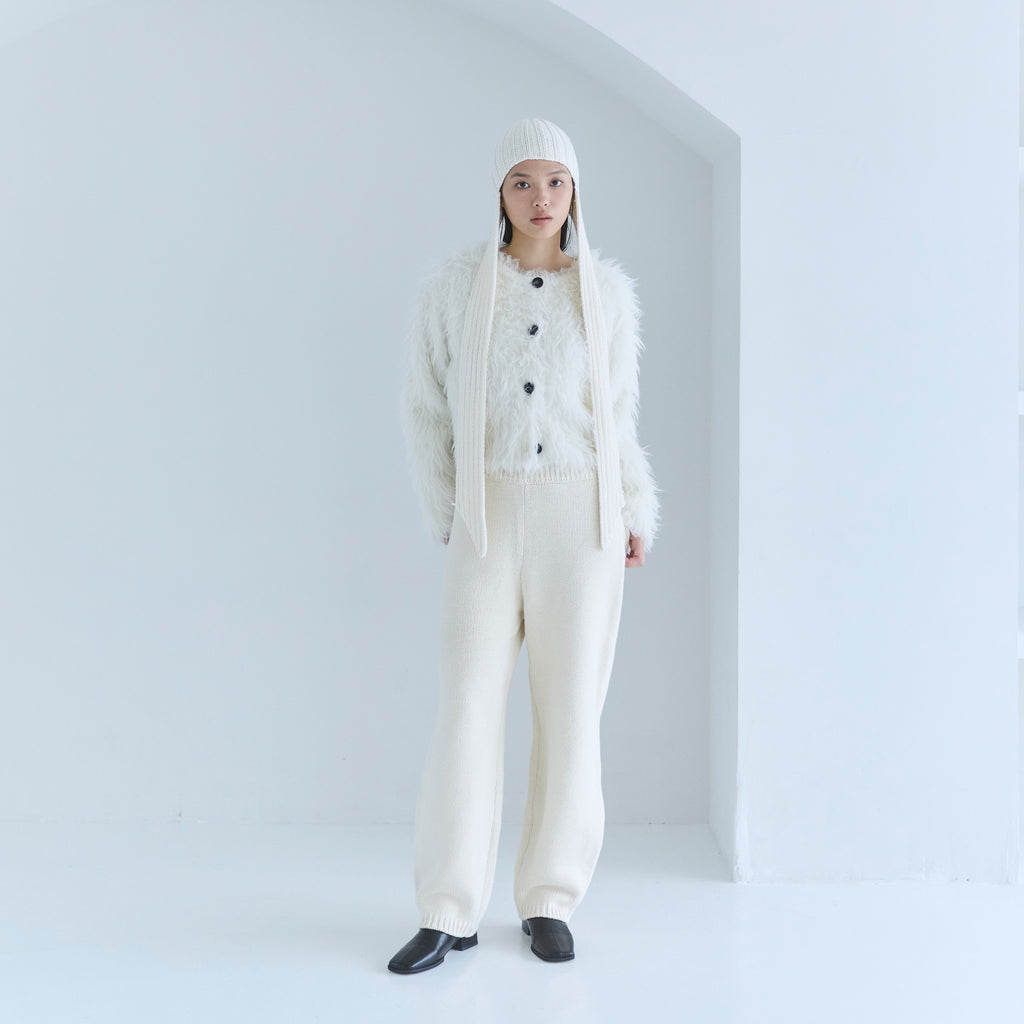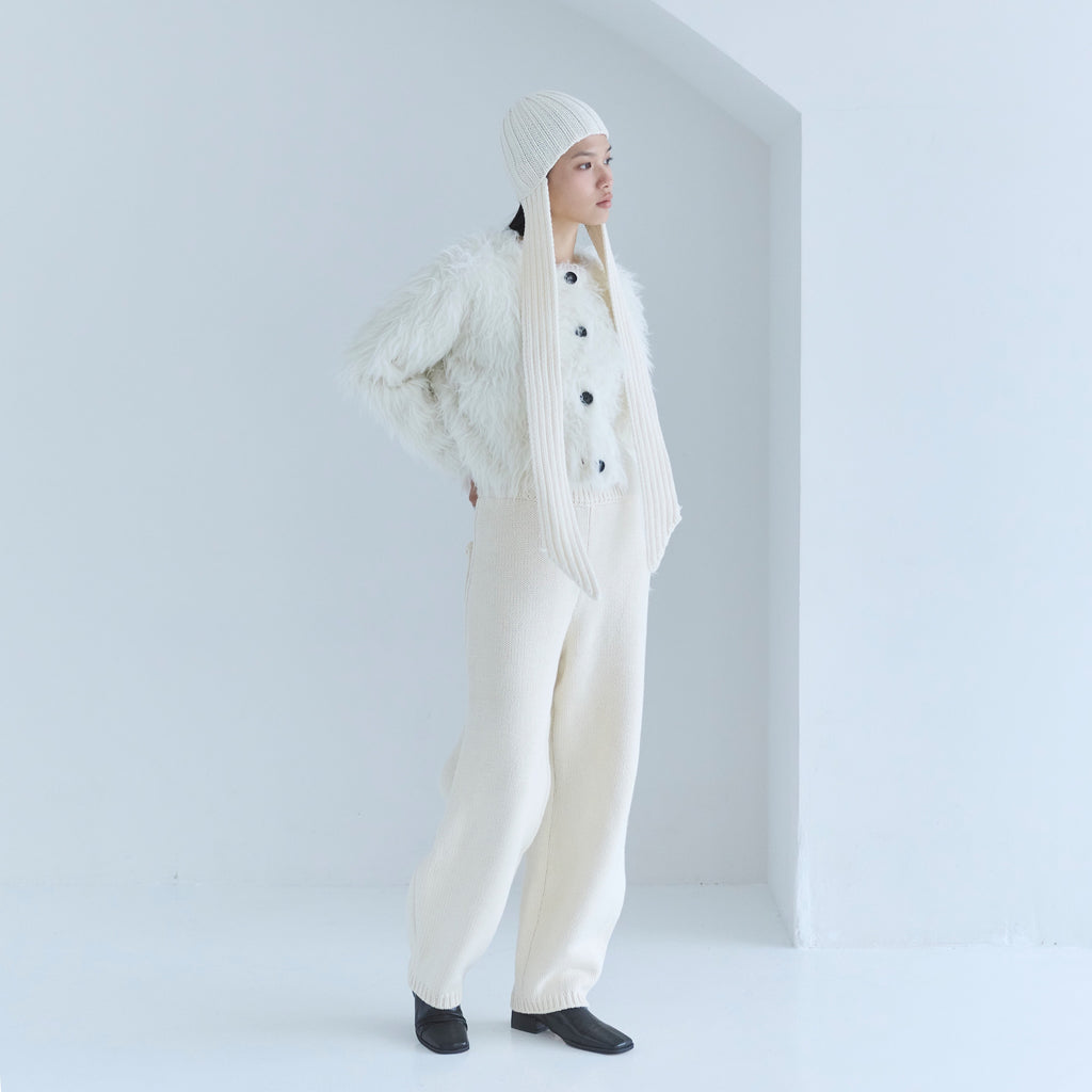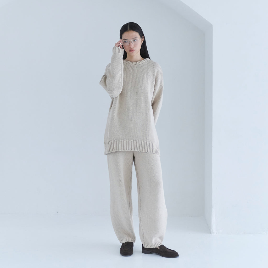 〈Heavyコットンボリュームニットパンツ〉と同色展開ですので、セットアップでルーズなスタイリングがお楽しみいただけます。