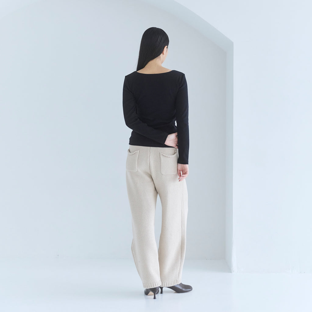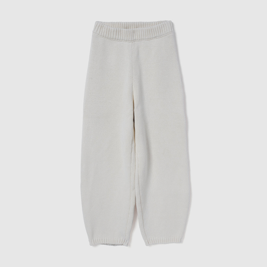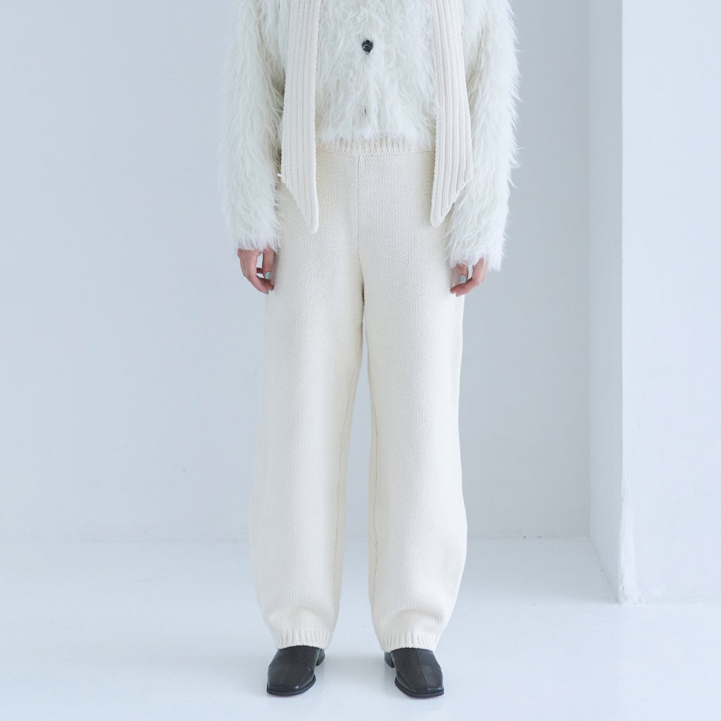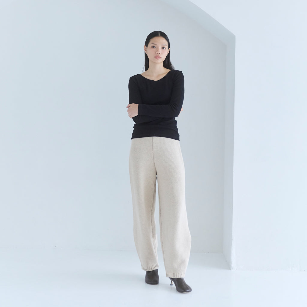 しっかりしたメンズライクなニットの質感を表現して“Heavyコットン”と名付けたパンツ。これまでにない、下部にボリュームを出したシルエットでフレッシュさをON。