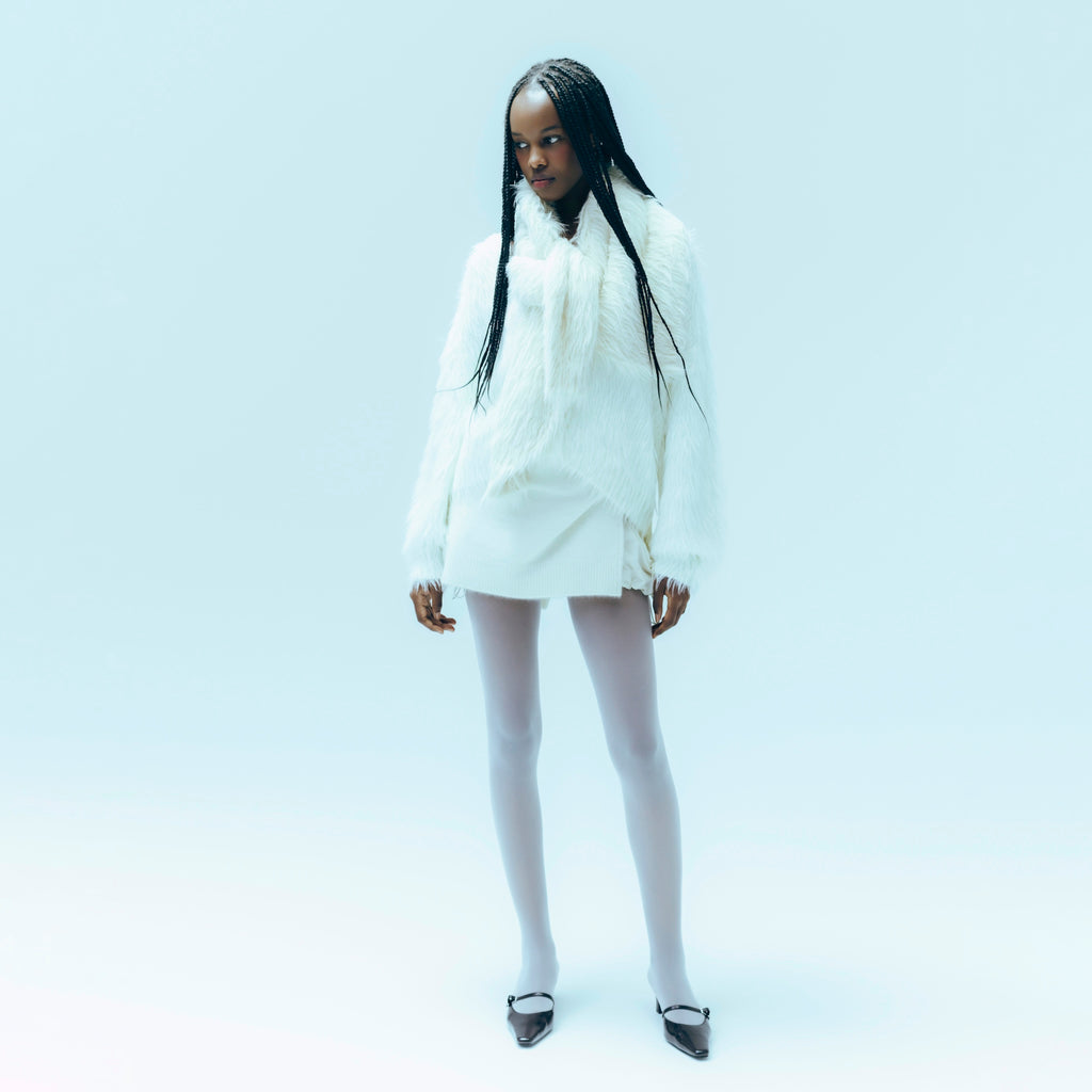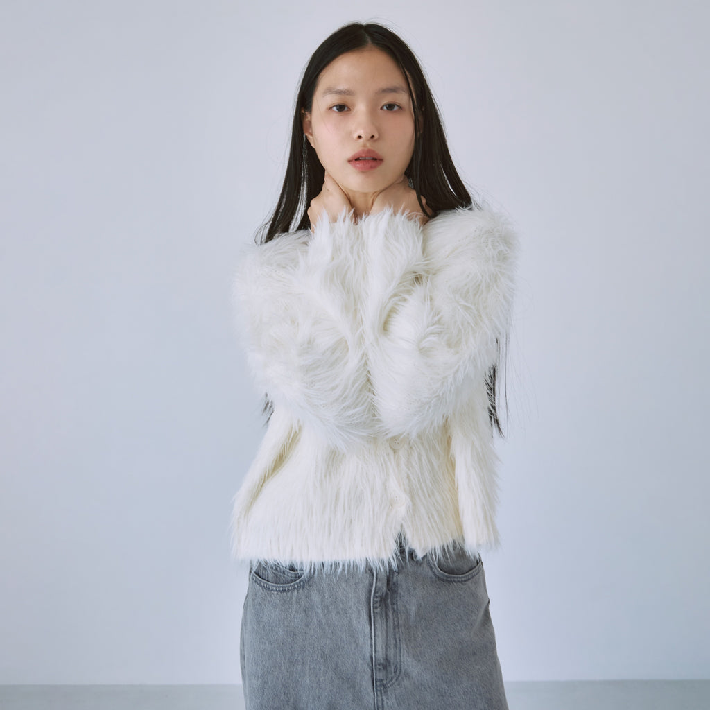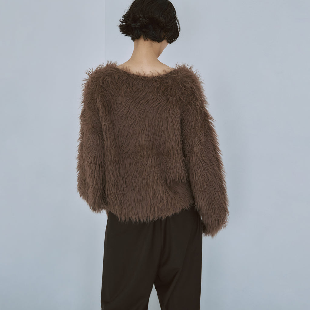 ふわふわと長い毛足が特徴的なシャギーニット。柔らかで肌触りも良く、素肌に着ても気持ち良い素材です。ファーのような華やかさもあり、1枚で存在感アップ。