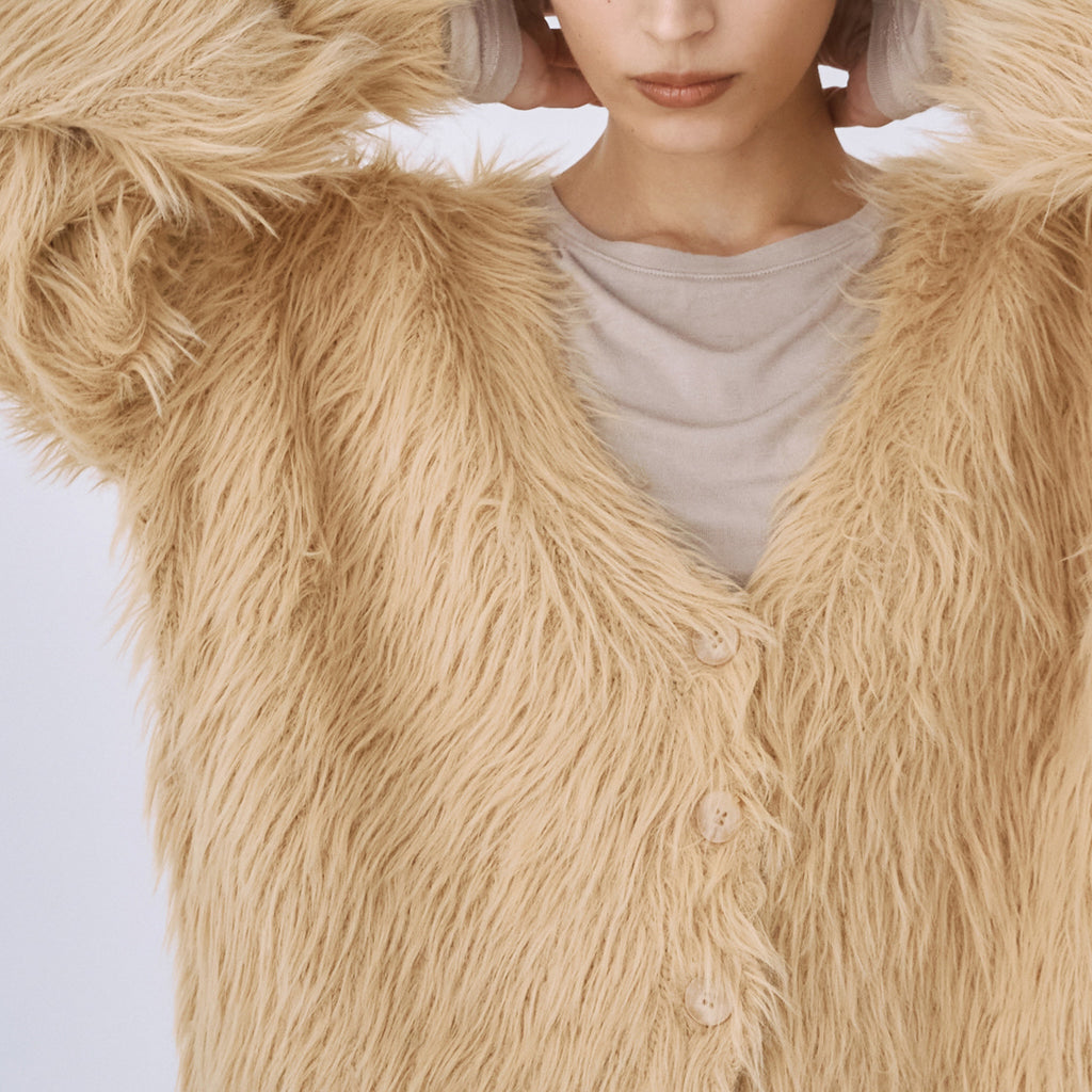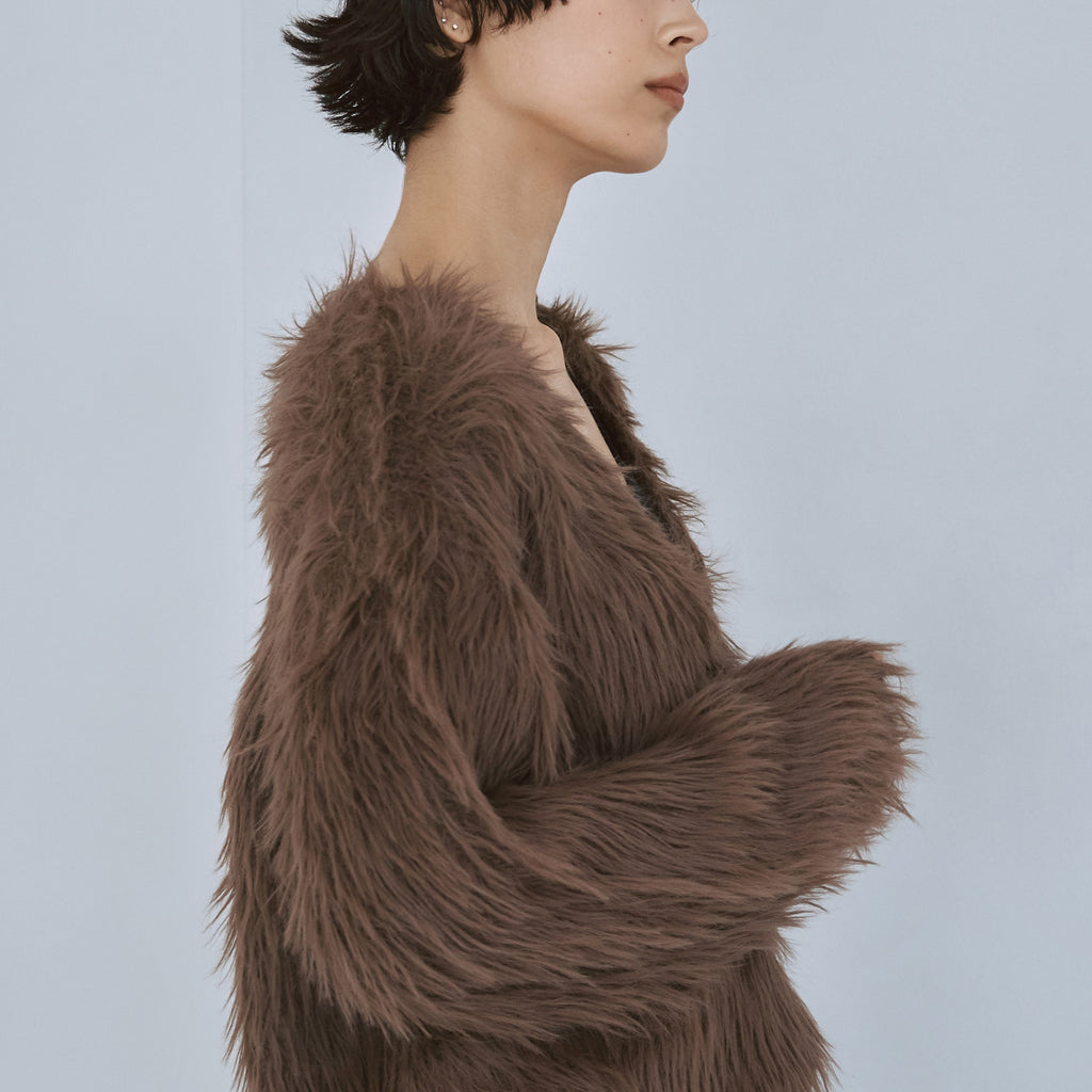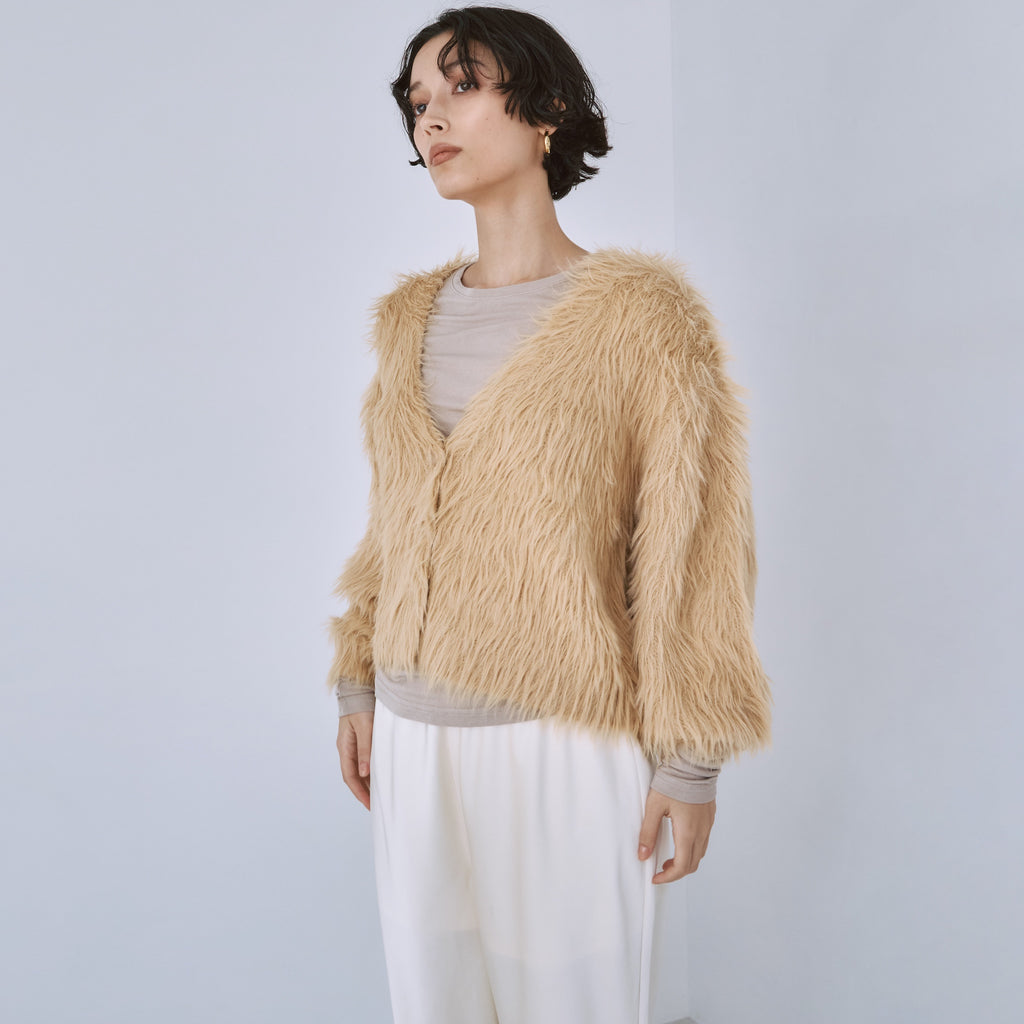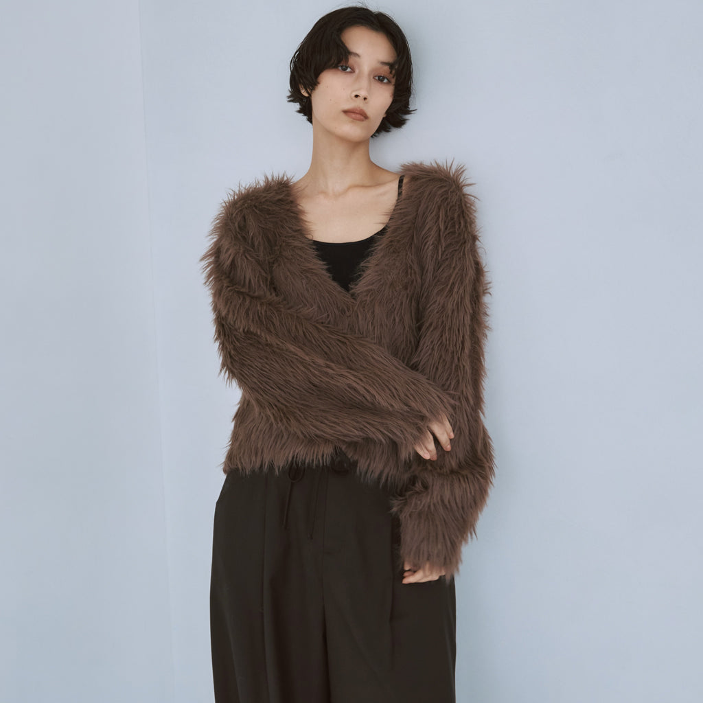 毎年大人気、ふわふわの毛足が可愛い〈ヘアリーシャギー〉シリーズのニット。クロップド丈のコンパクトなVネックカーディガンは初登場となります。重ね着が多様なスタイルを生む、今シーズンマストな1枚。