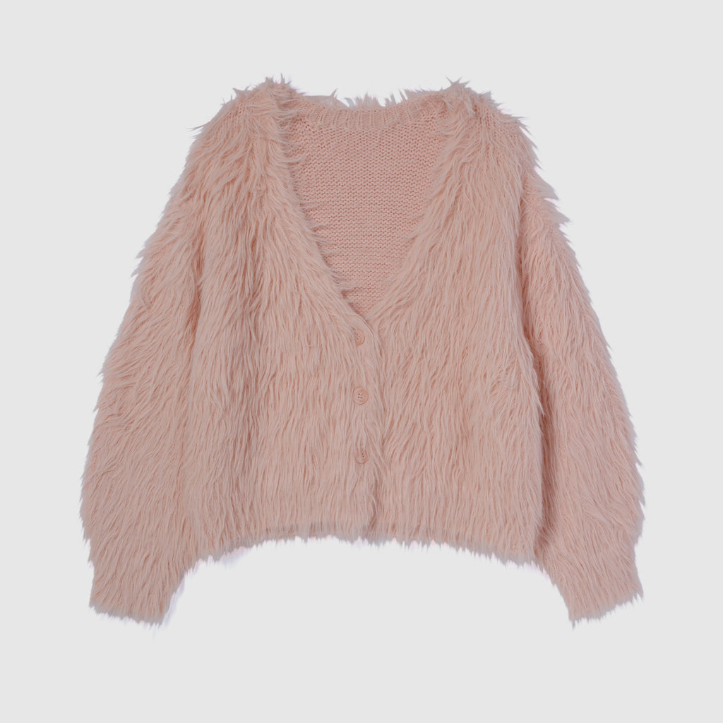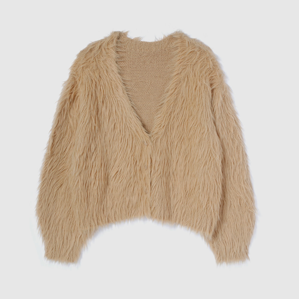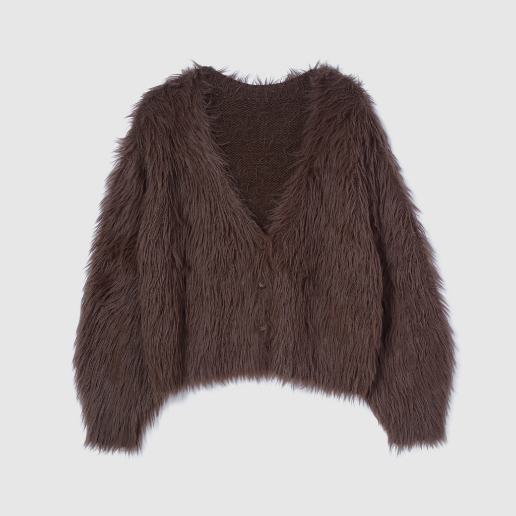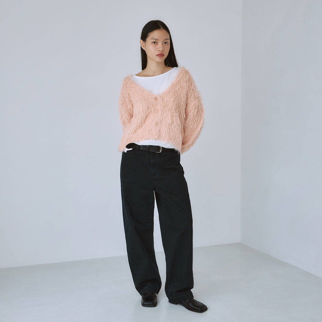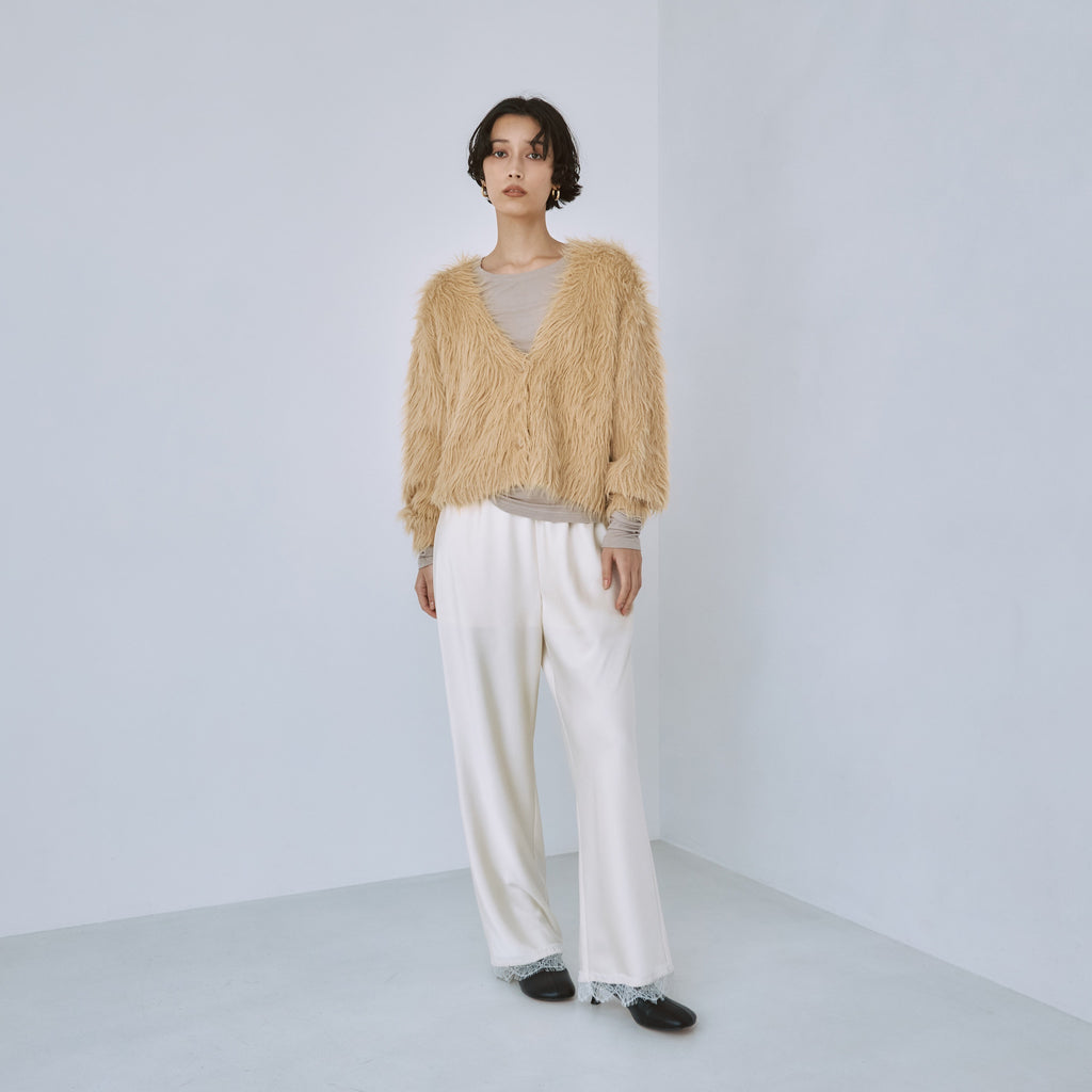 毎年大人気、ふわふわの毛足が可愛い〈ヘアリーシャギー〉シリーズのニット。クロップド丈のコンパクトなVネックカーディガンは初登場となります。重ね着が多様なスタイルを生む、今シーズンマストな1枚。