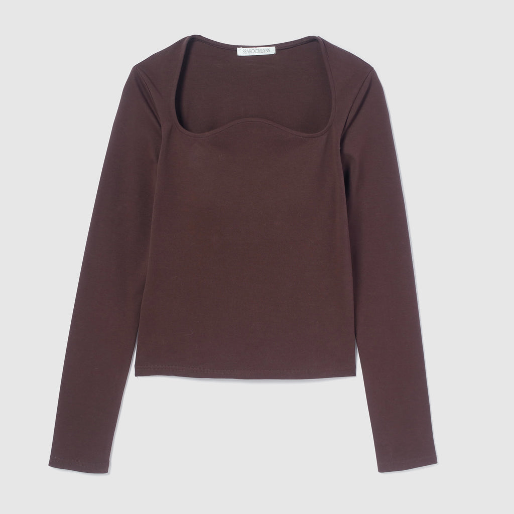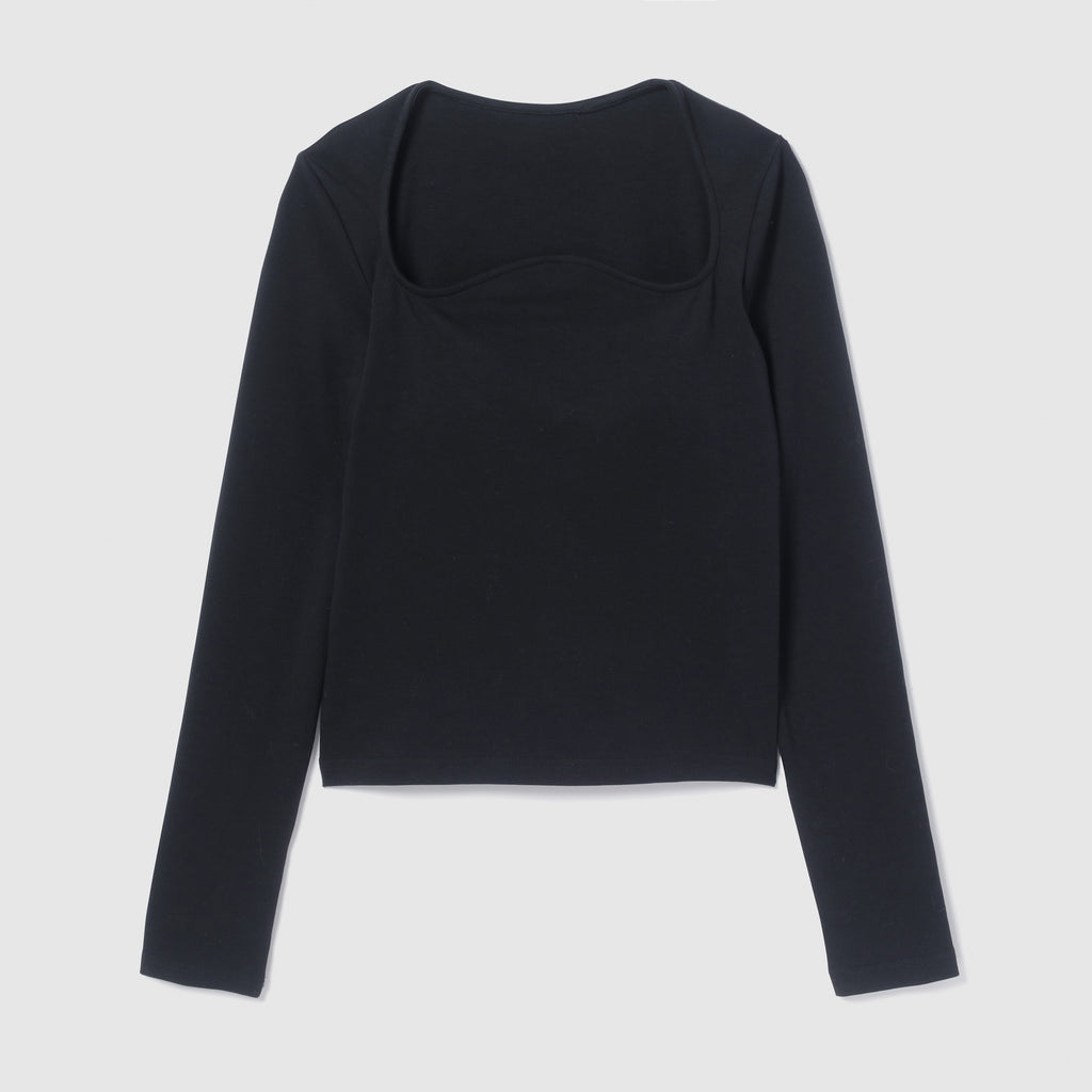 Moftyとは、Mochi(もちもちした素材)+ Softy(ソフトなタッチ感)の造語。もっちり気持ち良い素材です。アシンメトリーなカーブデザインがデコルテを美しく見せ、個性を与える1枚。