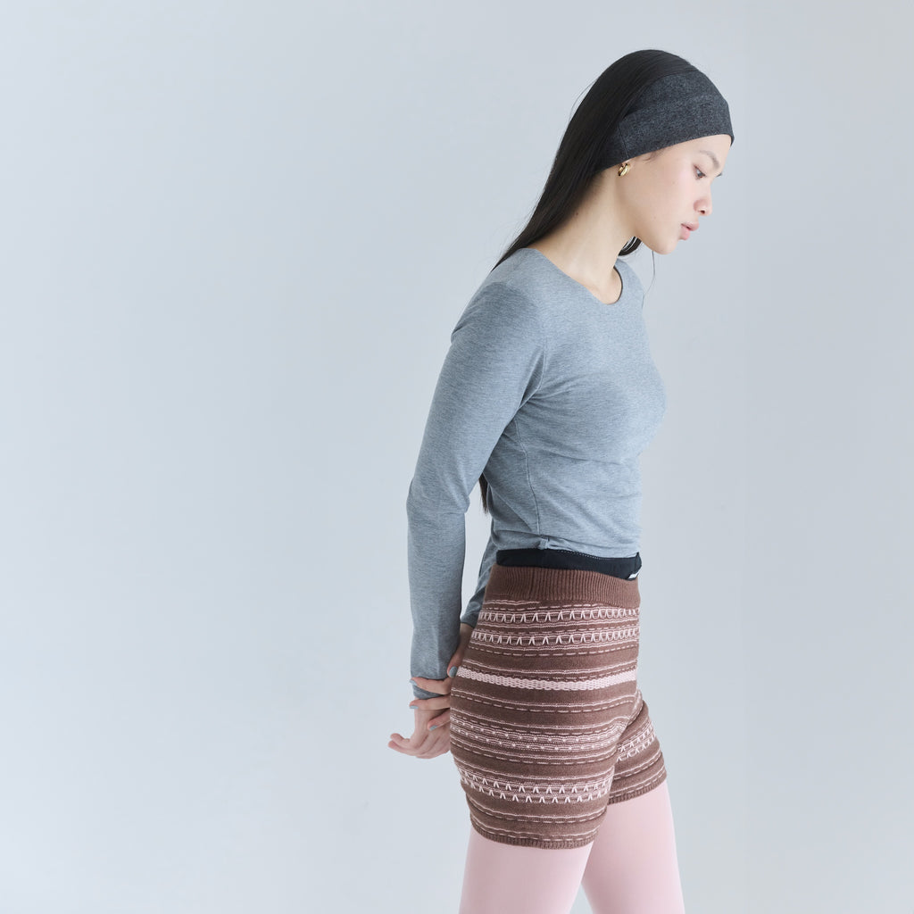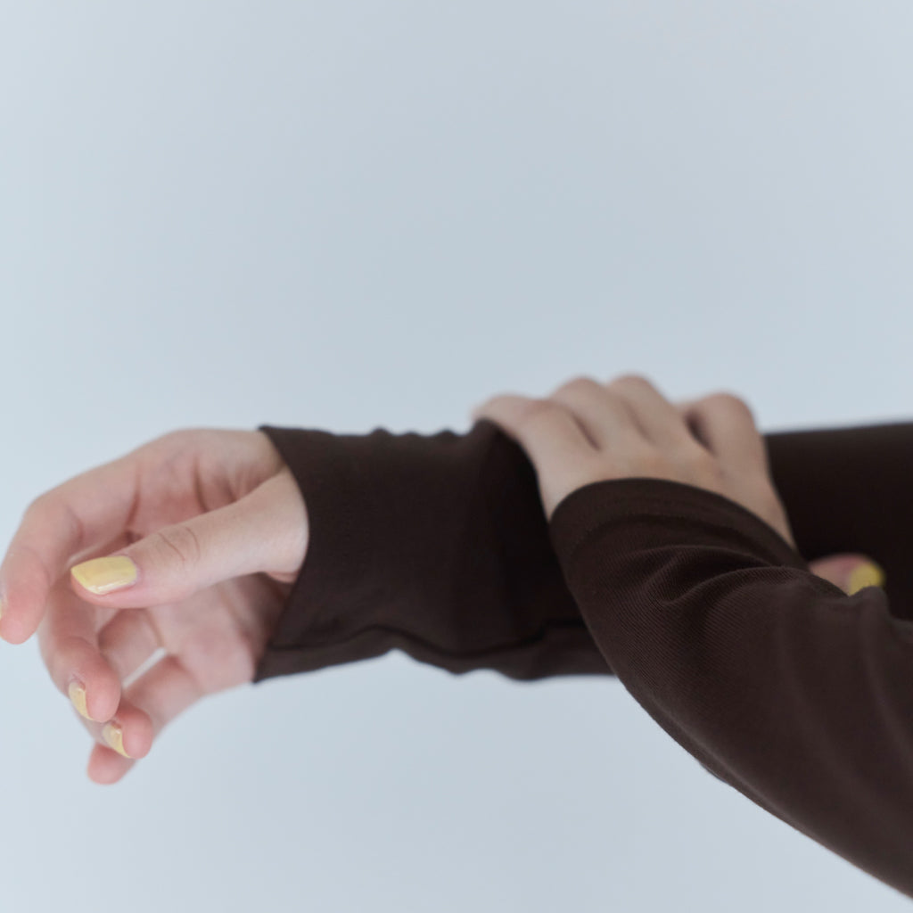※既存の〈Fit パッドマシュマロロングスリーブ〉は、ピッチの細かいリブ生地を採用し、着太りしにくいのが特徴。マシュマロパッドの下部分のみにゴムが付いており、ふんわりとした軽い着用感です。バストトップにカップが自然に乗るような、リラックス感のある仕様のため、よりリラックス感を求めるナチュラル派の方におすすめ。