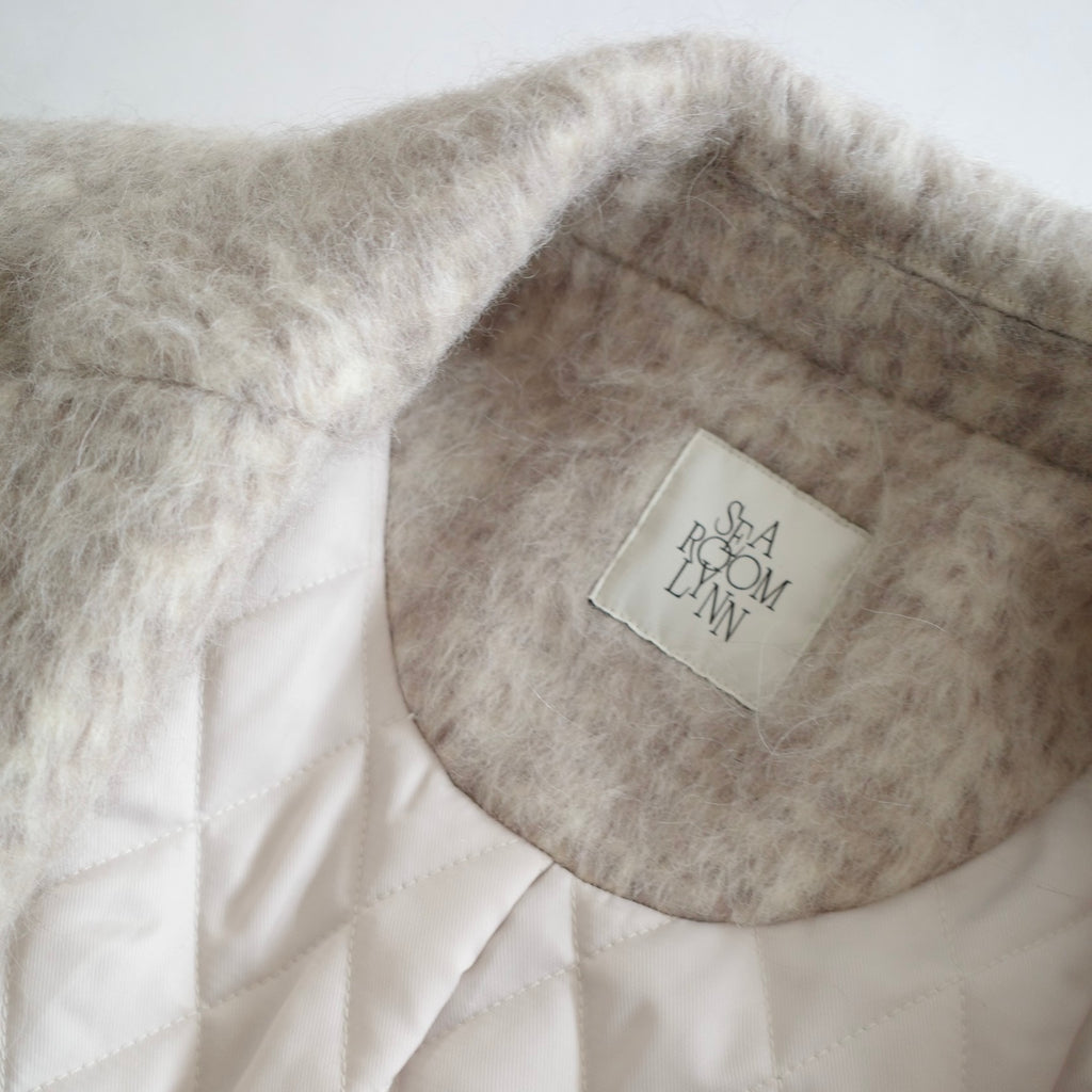 長めの毛足が特徴のシャギーウール生地を採用。暖かく、ふんわりとした起毛感が魅力です。裏地はキルティング仕様で保温性も高く、見た目以上に暖かいため、薄手のインナーでも快適に着用できます。