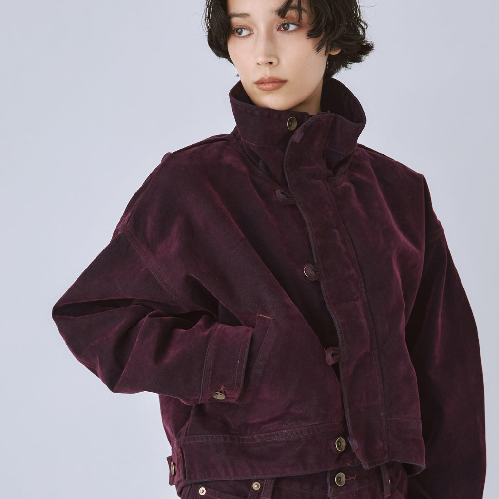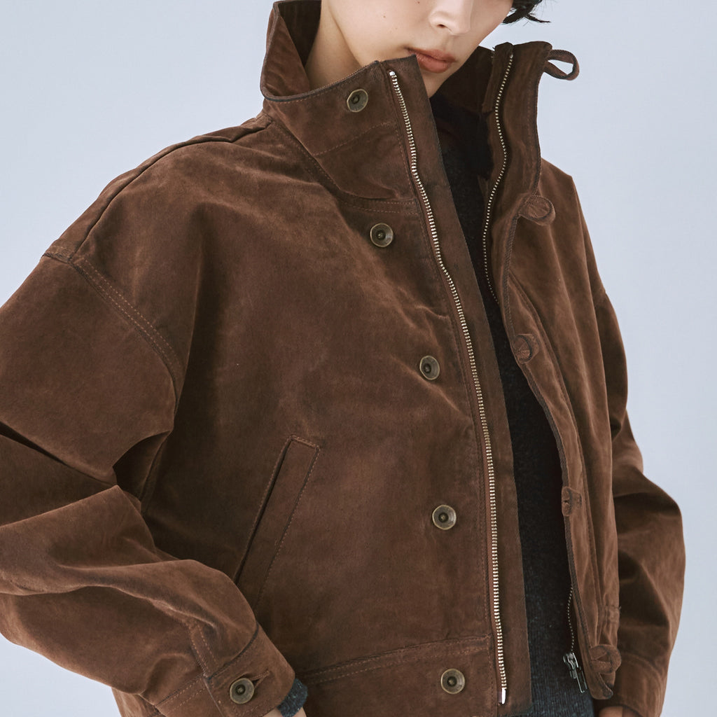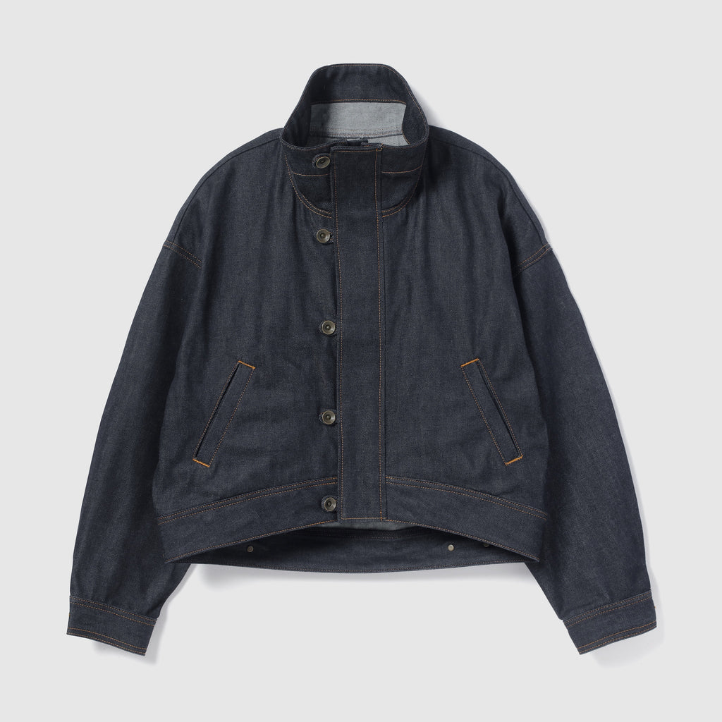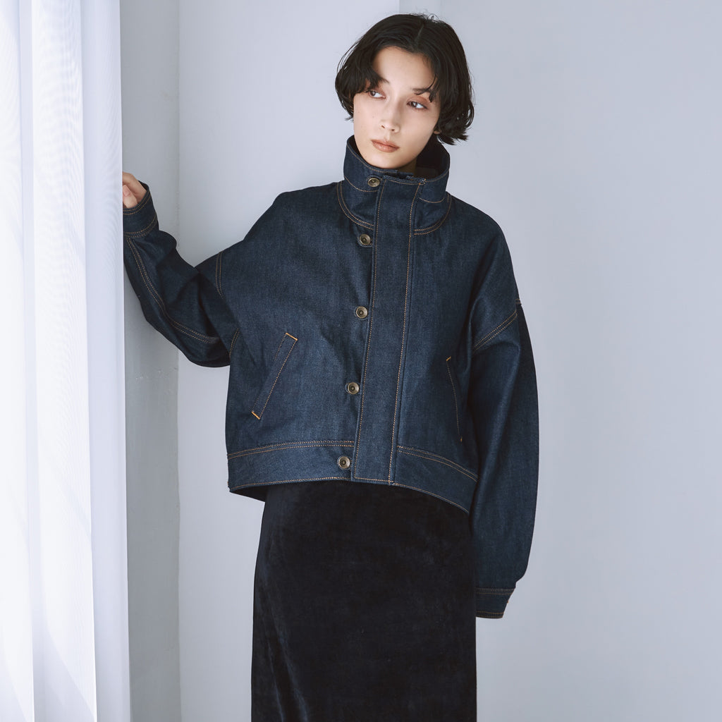 深みのある秋冬らしいカラーと上質な素材感にこだわったスタンドカラーデニムジャケット。丸みのあるフォルムやトレンド感ある首元のスタンドカラーで、存在感を与えながらも着回しやすい1枚。