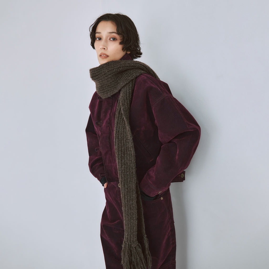 今年らしいスタンドカラーが一番の魅力。首に沿いながらも締め付け感を抑え、顔周りにゆとりを持たせることで小顔効果を演出。