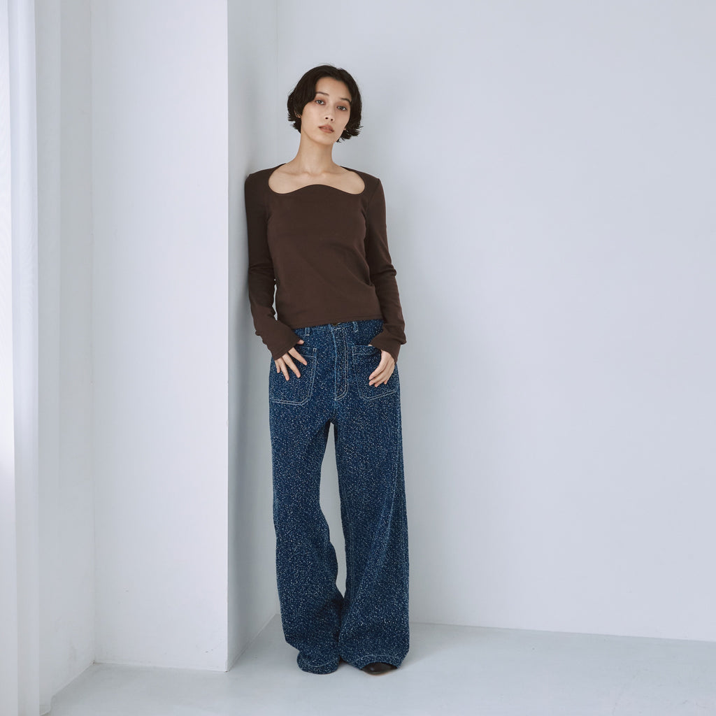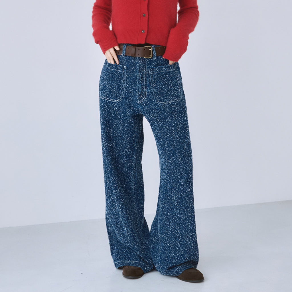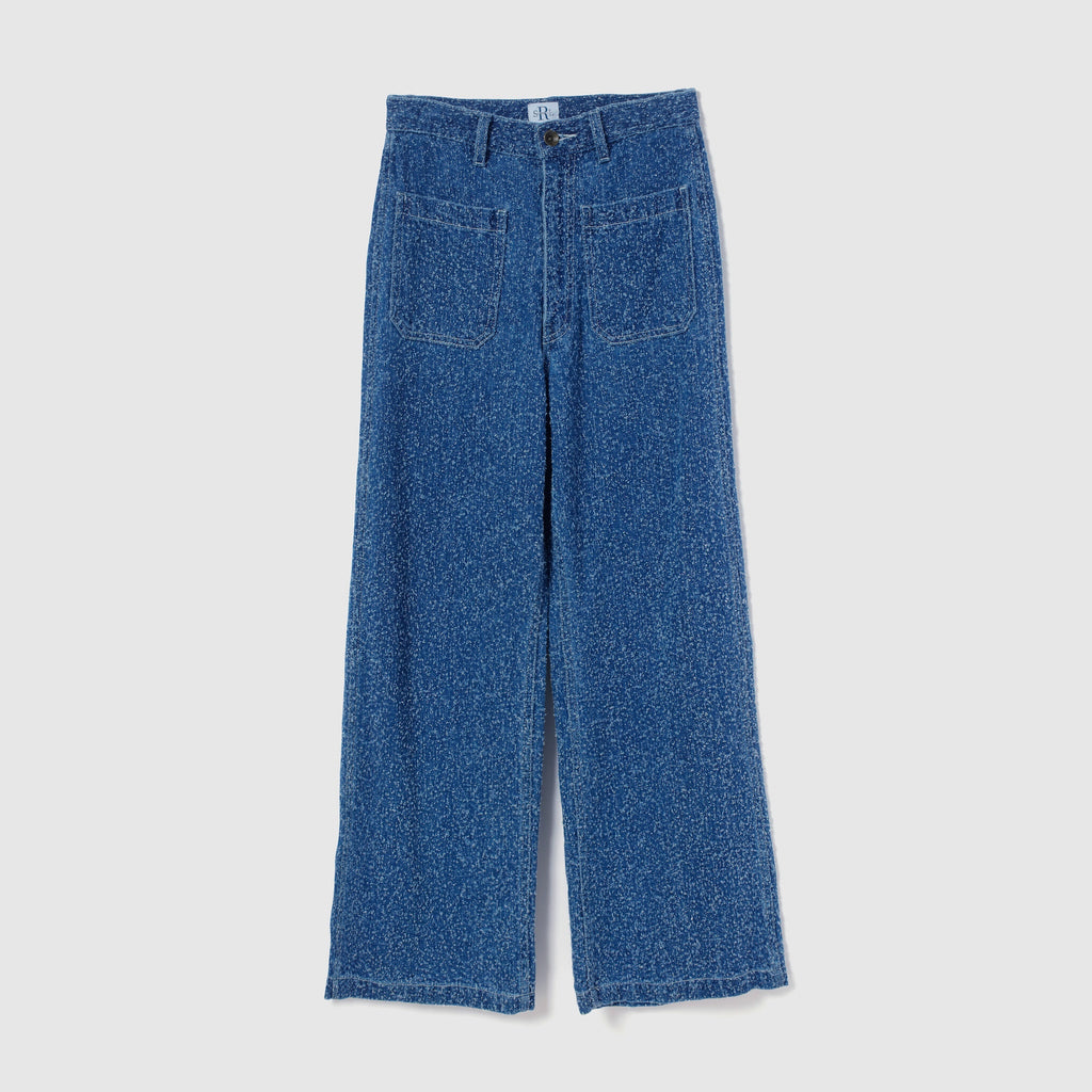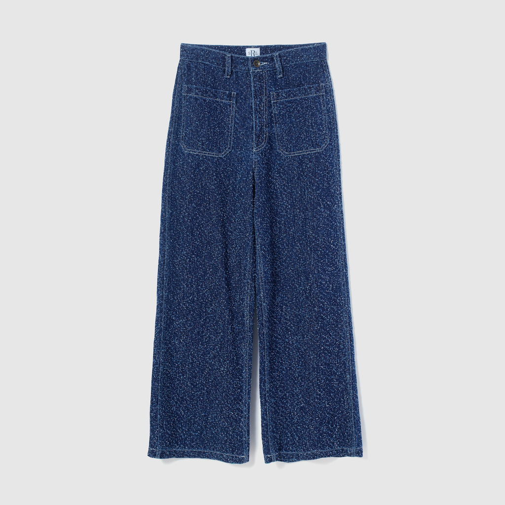 表情豊かで丈夫なニードルパンチデニムを採用した、新作のバギーパンツ。生地を活かしたシンプルなデザインに、90年代ベルボトムからインスパイアされたゆとりのあるフレアシルエット。脚長効果も抜群な1本です。
