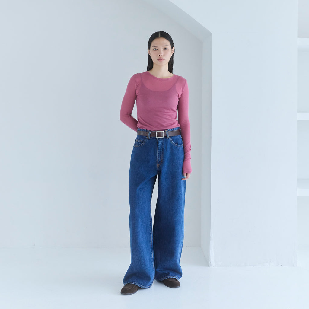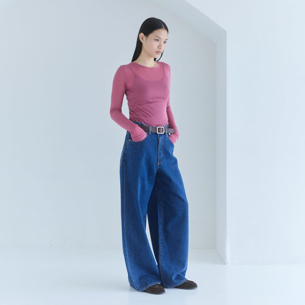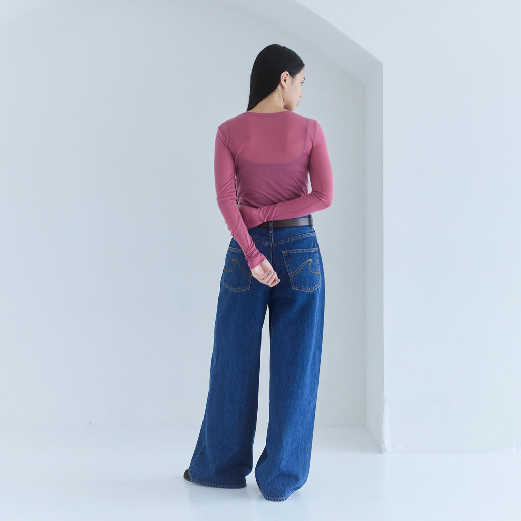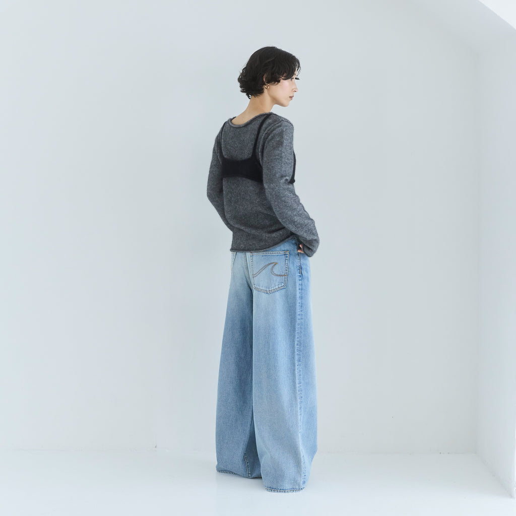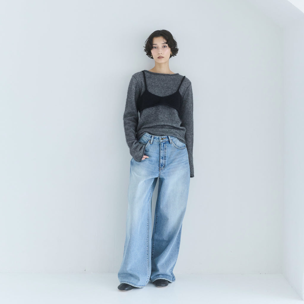人気の〈ワイドウエストバギーSRN05〉をベースに、股上を浅くカットし調整した新デニム。全体のボリューム感は変えずに、よりこなれたルーズシルエットにアップデートしています。